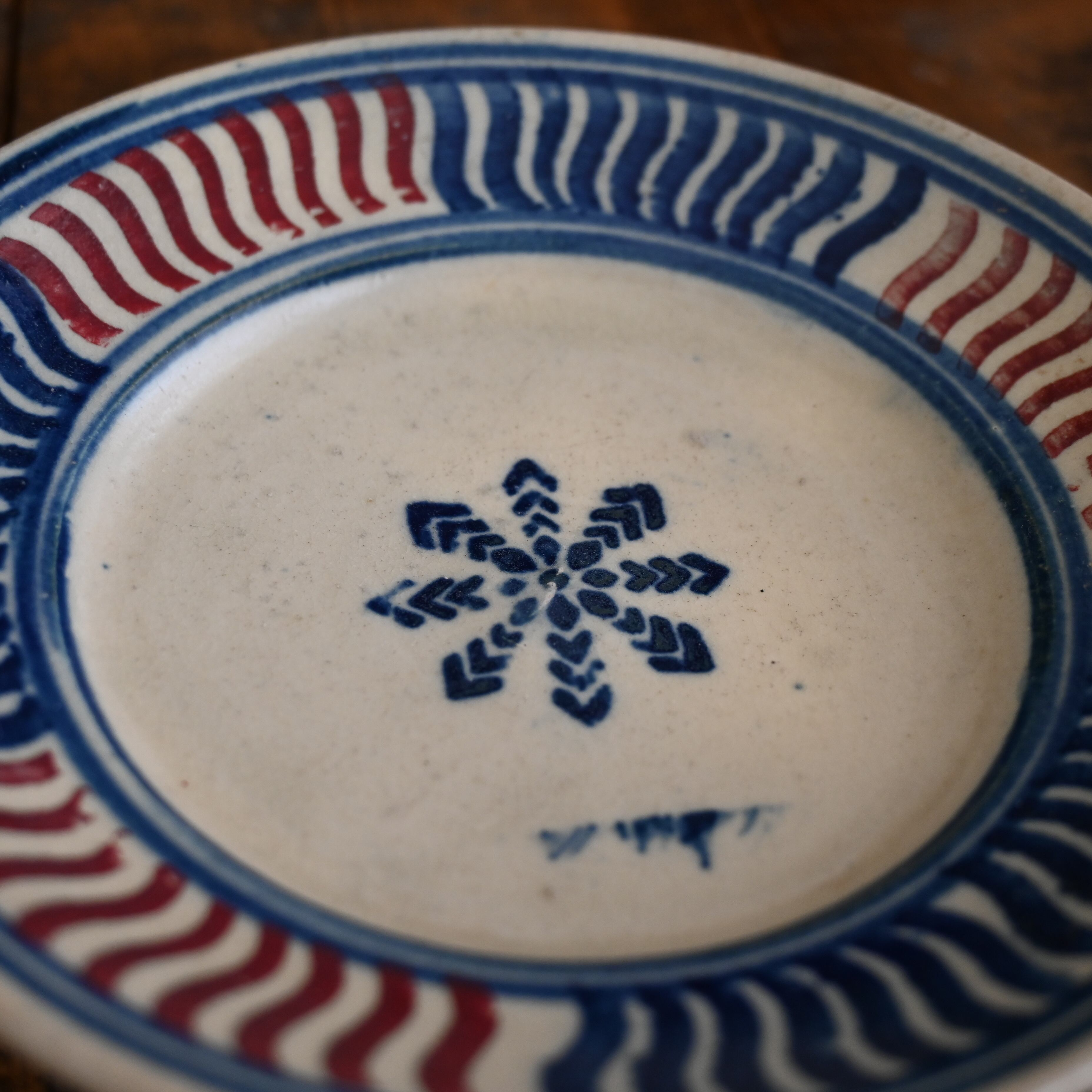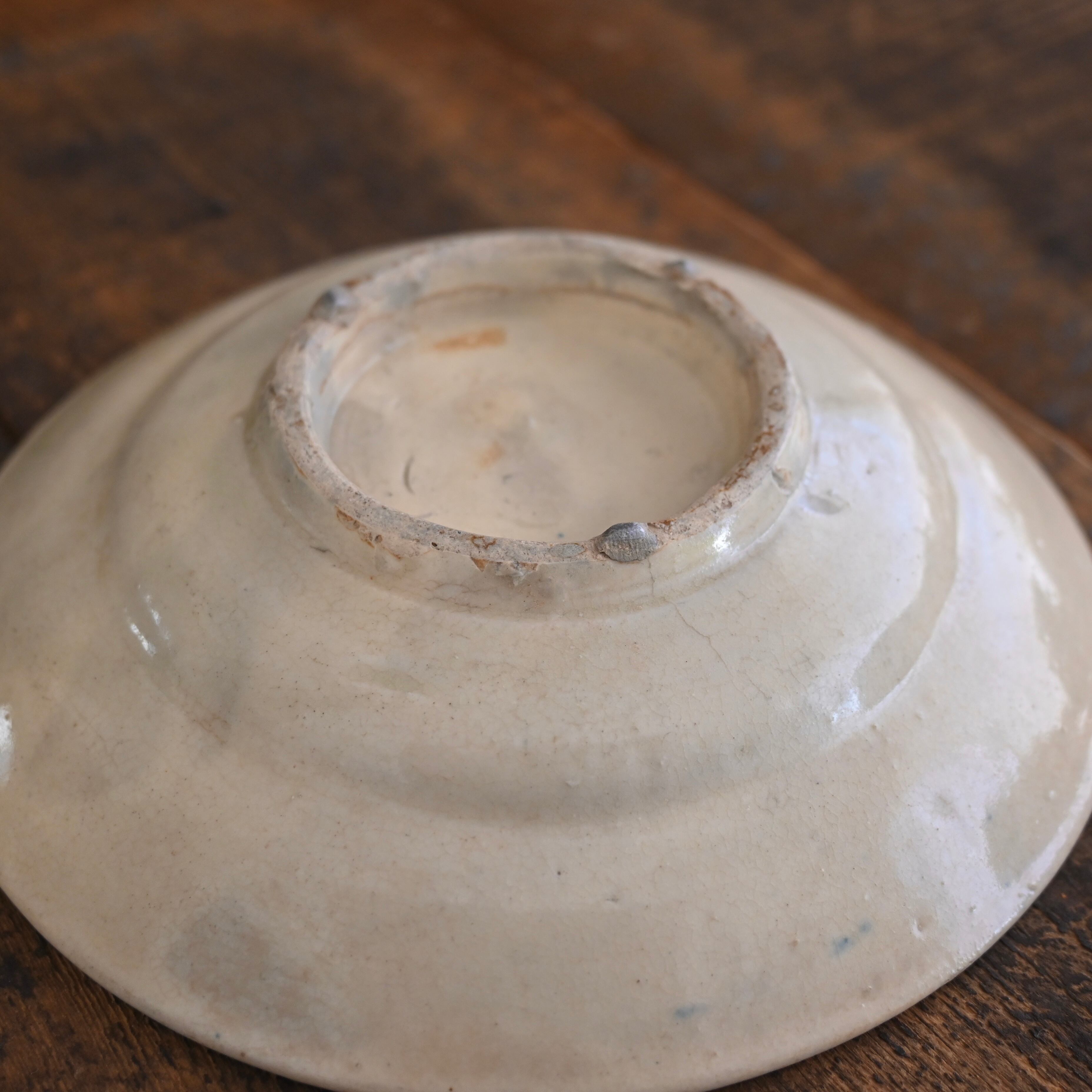 焼成時に器を重ねて焼くため、高台(底の部分)や縁に、小さな突起や釉薬の剥がれた跡が残ることがあります。これは当時の製法ならではの特徴であり、ひとつひとつ異なる個性を持つ証ともいえます。