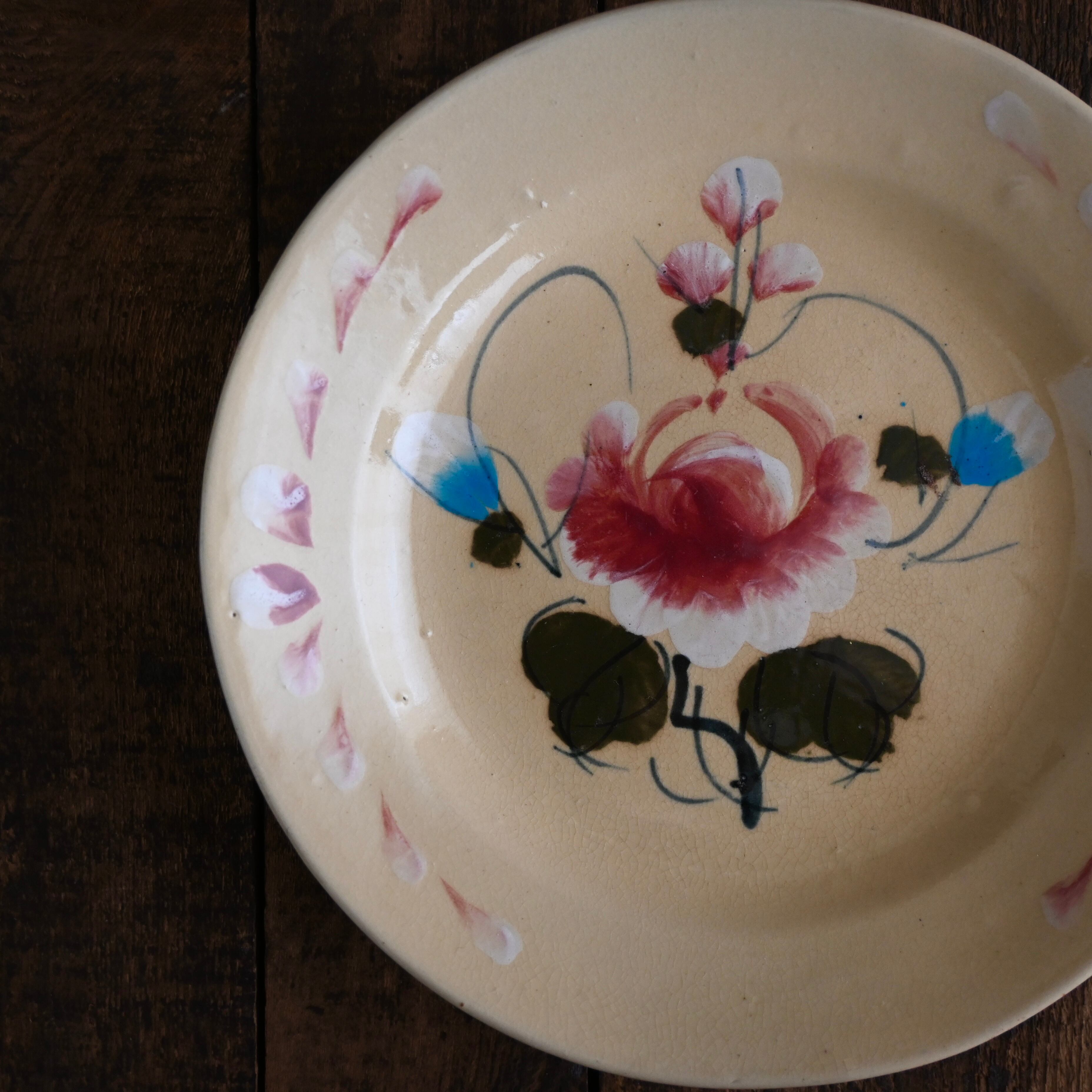 ぽってりとした素朴な質感とクリーム色の釉薬・手描きの絵付けが特徴で、長い間、家庭や食堂の食器として親しまれてきました。その背景には、ベトナムの独自の陶磁文化とともに、中国やフランスの影響を受けた歴史があります。