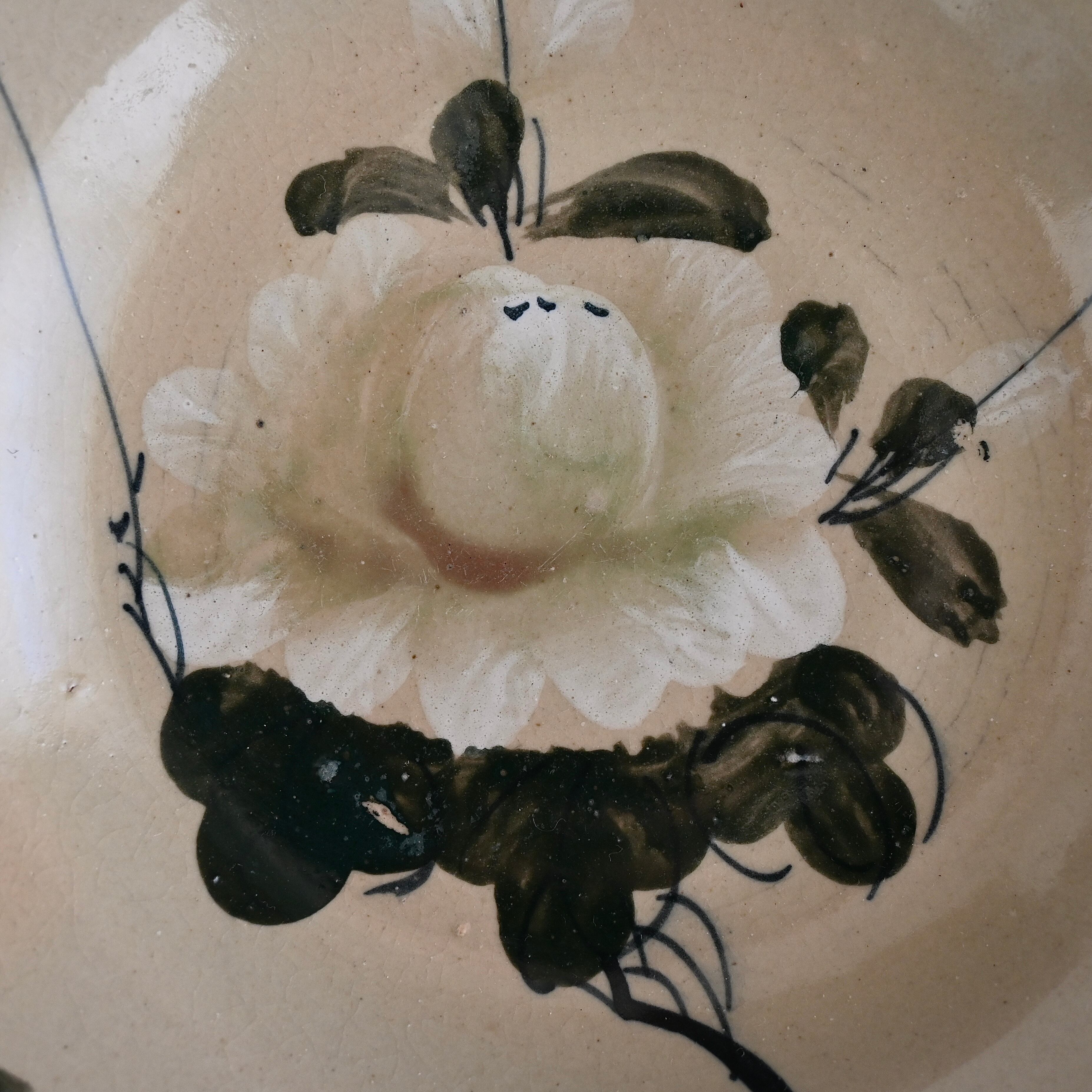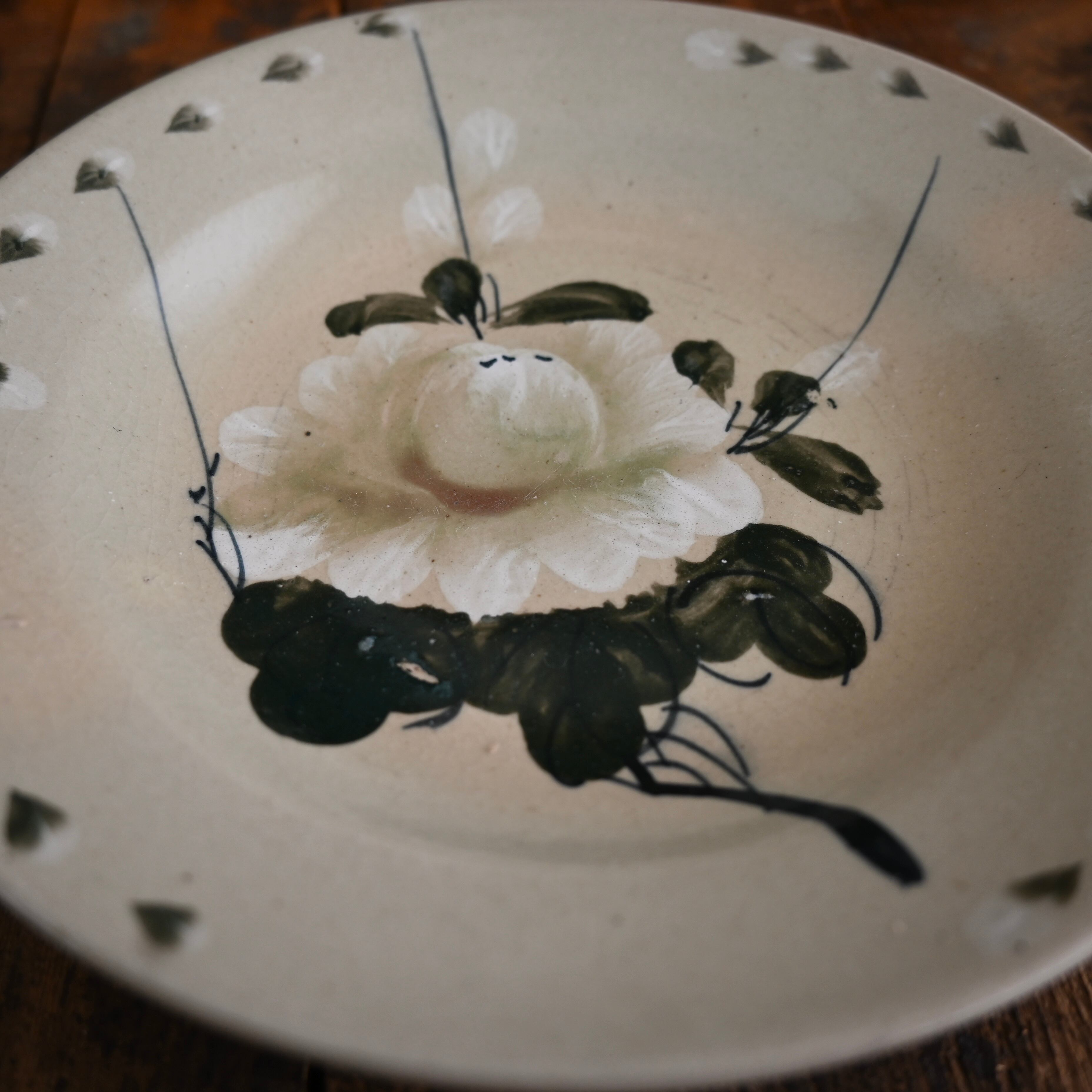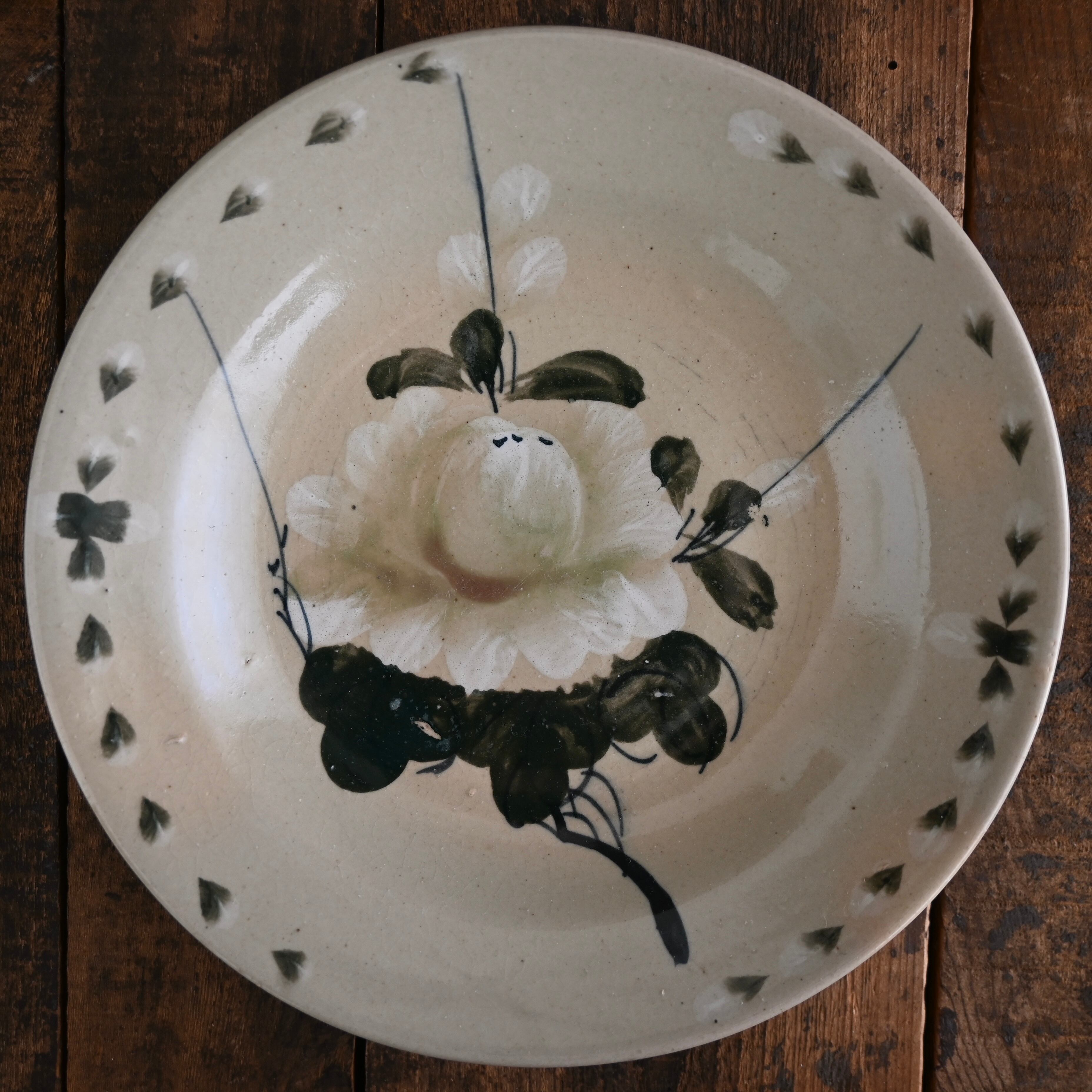 ぽってりとした素朴な質感とクリーム色の釉薬・手描きの絵付けが特徴で、長い間、家庭や食堂の食器として親しまれてきました。その背景には、ベトナムの独自の陶磁文化とともに、中国やフランスの影響を受けた歴史があります。