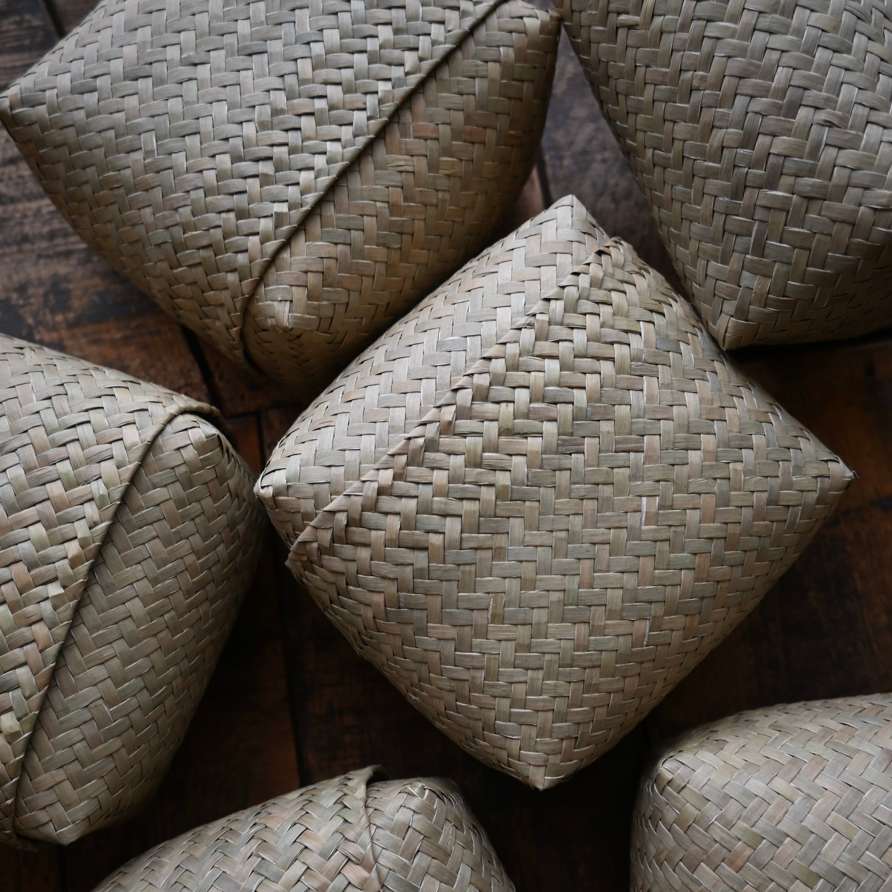水草の茎の部分を乾燥させ、熟年の職人たちによってパーツを作り、時間をかけて丁寧に編まれています。編み目が細かいほど柔らかく しなやかなバスケットに。