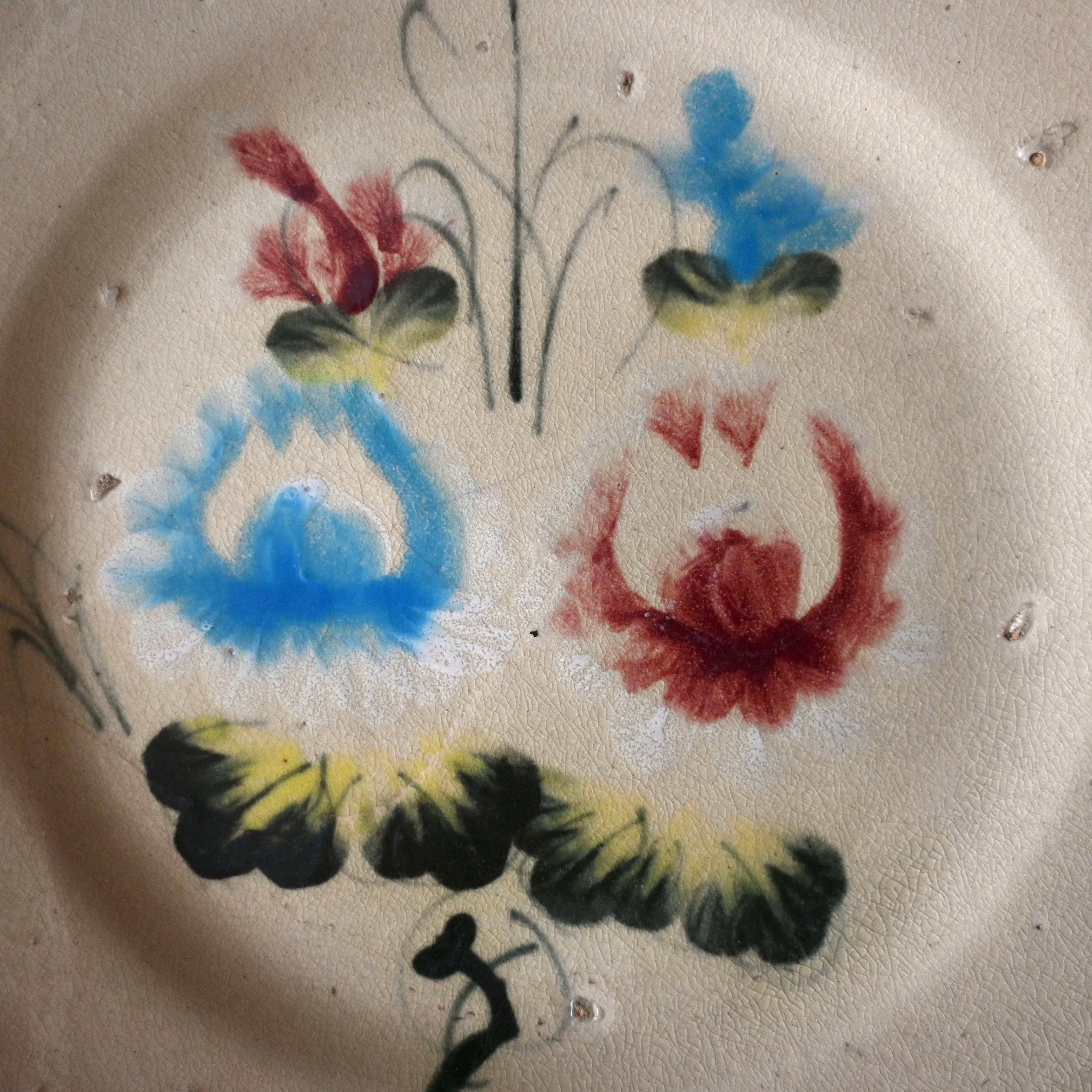ソンべ焼は、クリーム系の白地に青の絵付けが多く見られる一方で、黄色や緑、茶色などを用いたカラフルなデザインもあります。これは、中国の染付の影響を受けながらも、ベトナム独自のスタイルへと発展したことを示しています。