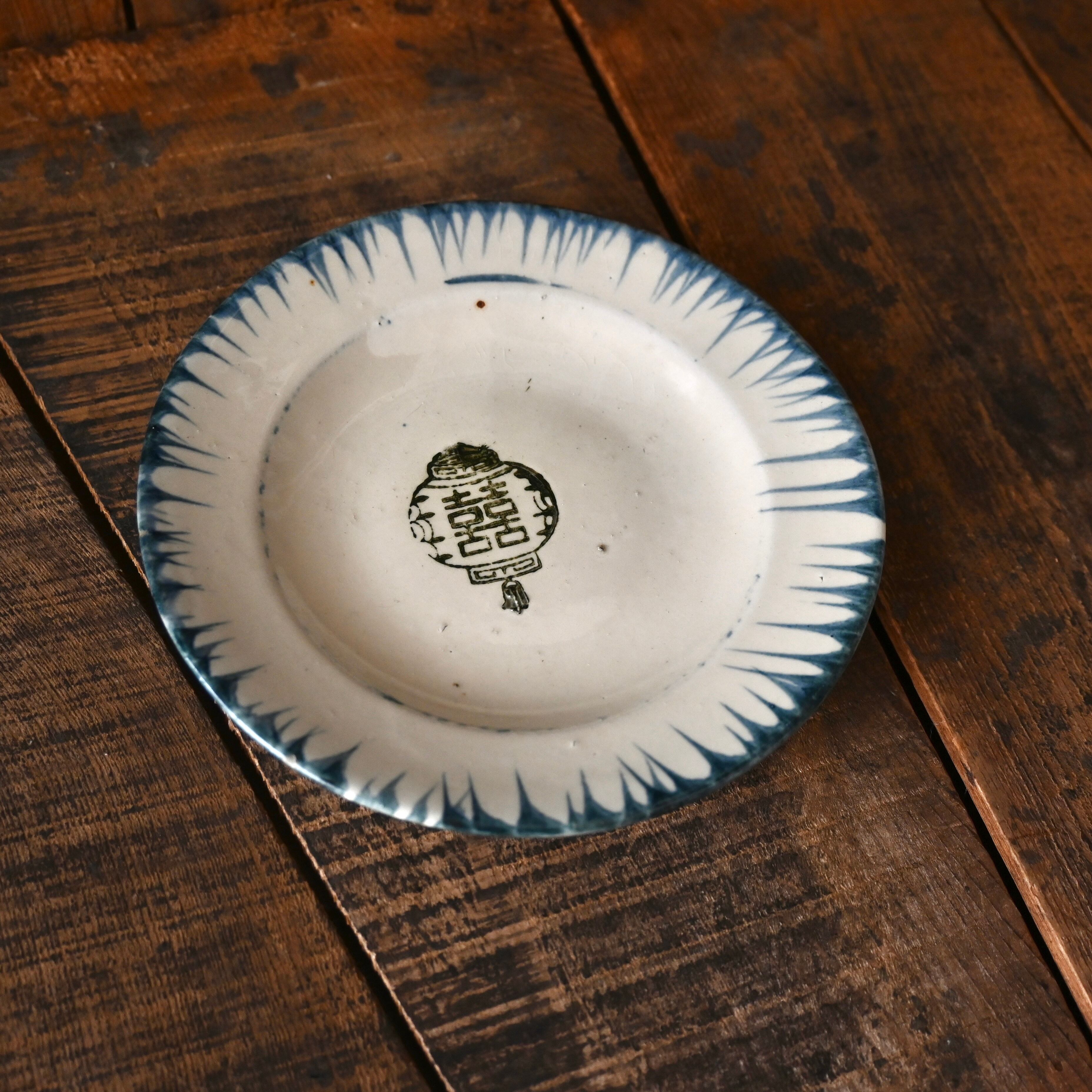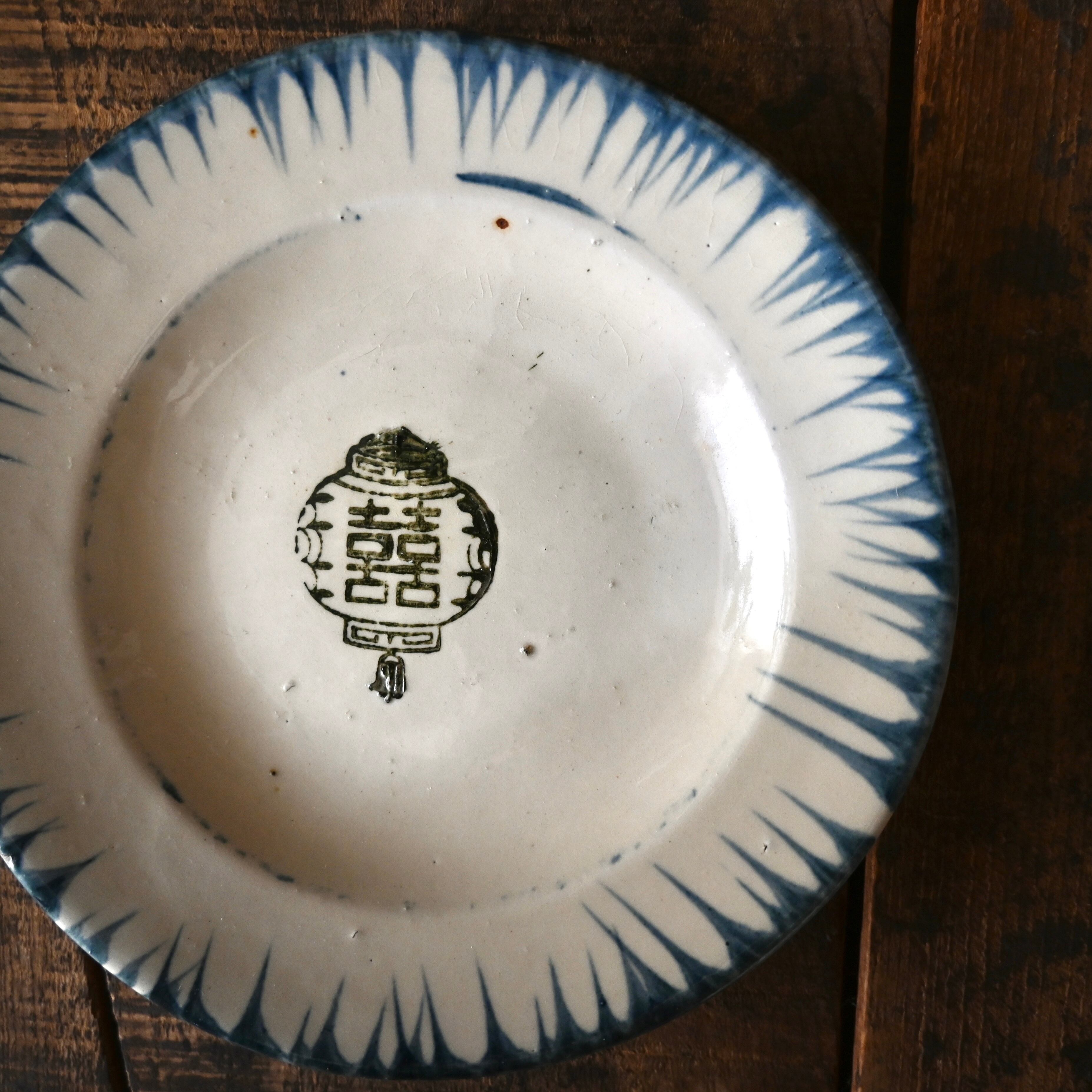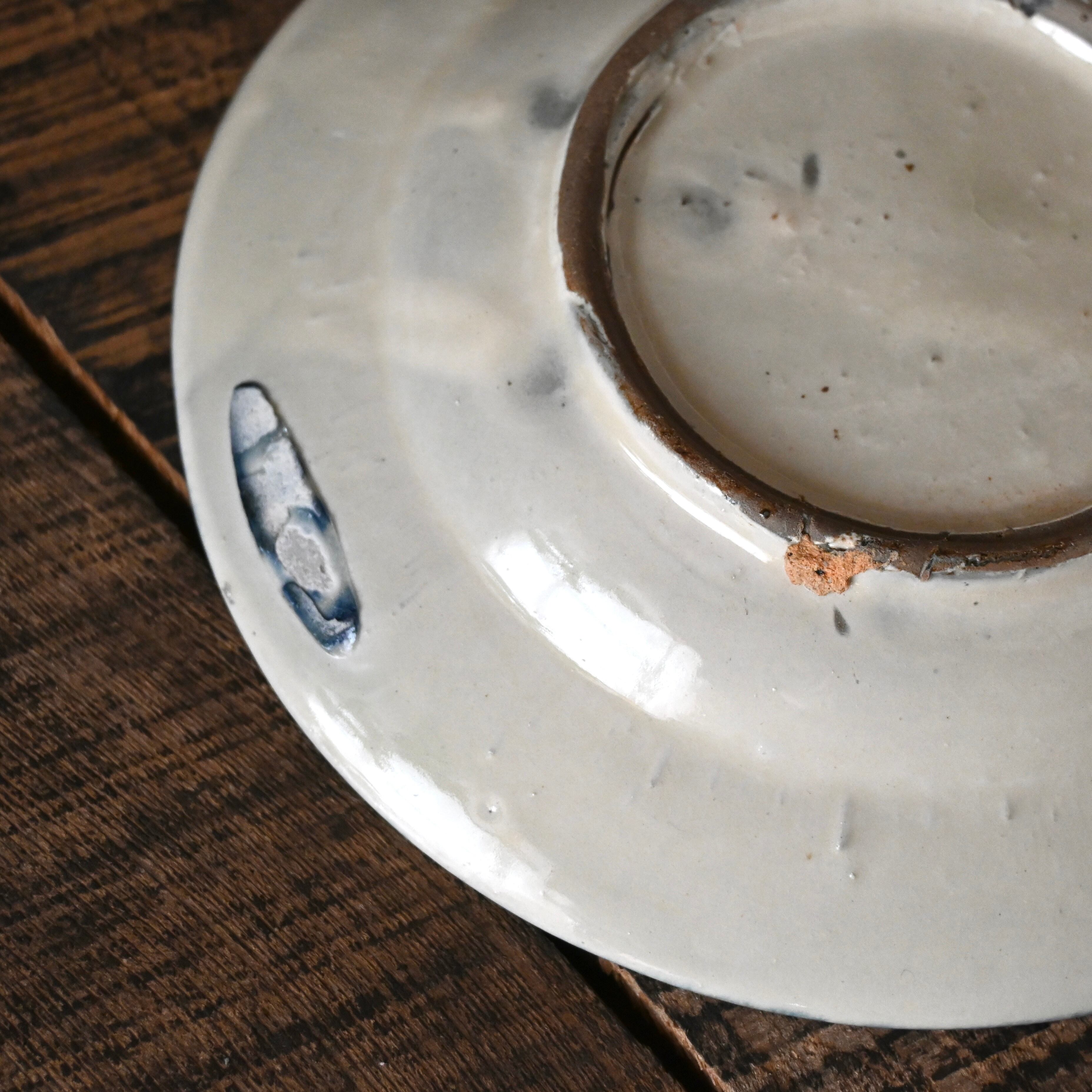 焼成時に器を重ねて焼くため、高台(底の部分)や縁に、小さな突起や釉薬の剥がれた跡が残ることがあります。これは当時の製法ならではの特徴であり、ひとつひとつ異なる個性を持つ証ともいえます。