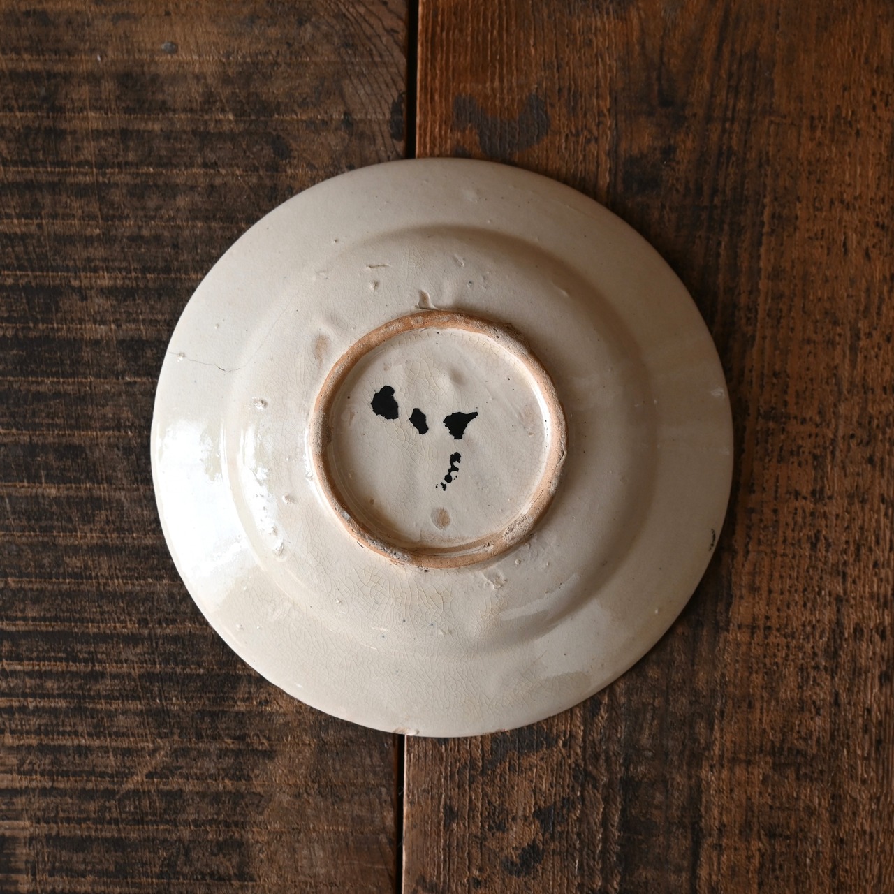 焼成時に器を重ねて焼くため、高台(底の部分)や縁に、小さな突起や釉薬の剥がれた跡が残ることがあります。これは当時の製法ならではの特徴であり、ひとつひとつ異なる個性を持つ証ともいえます。