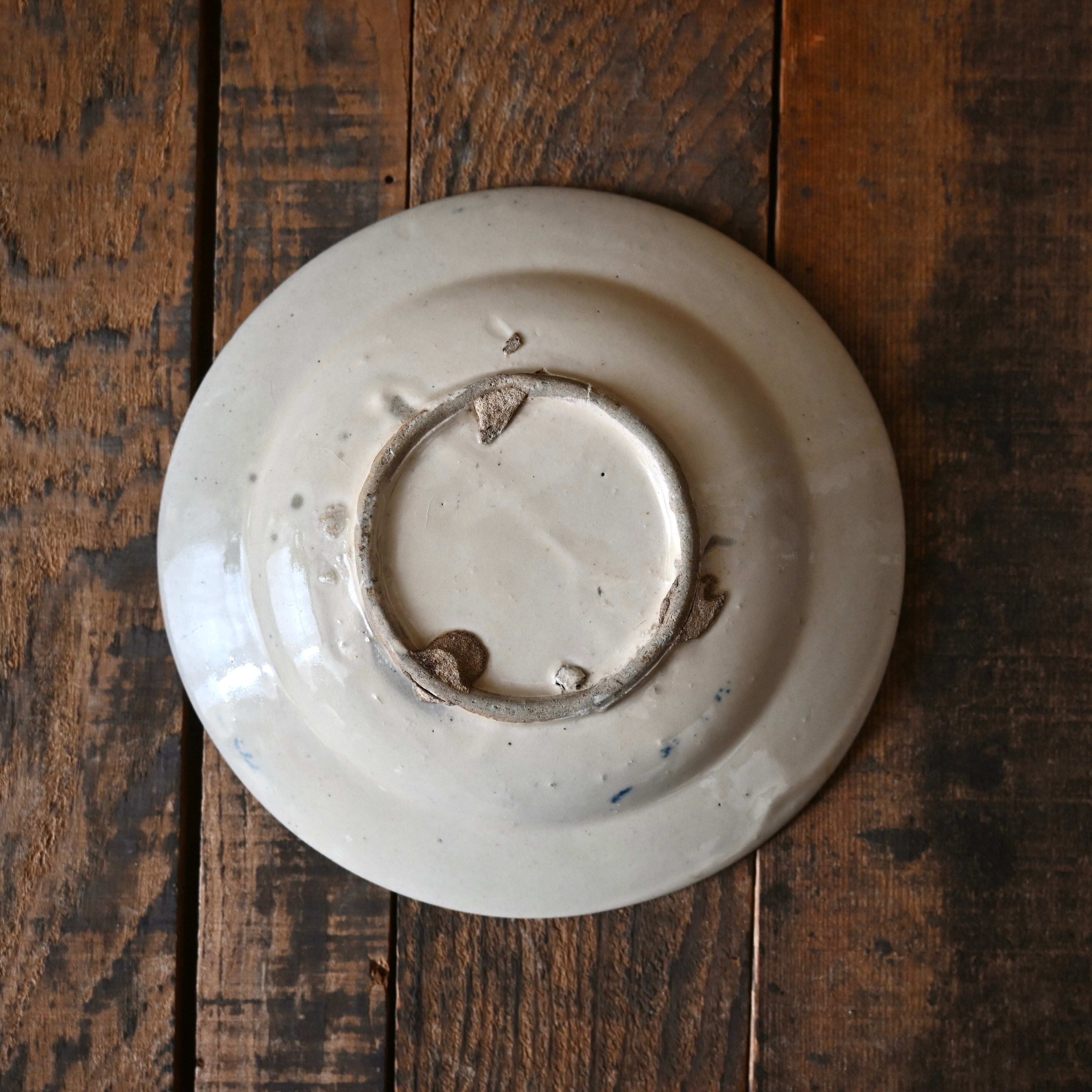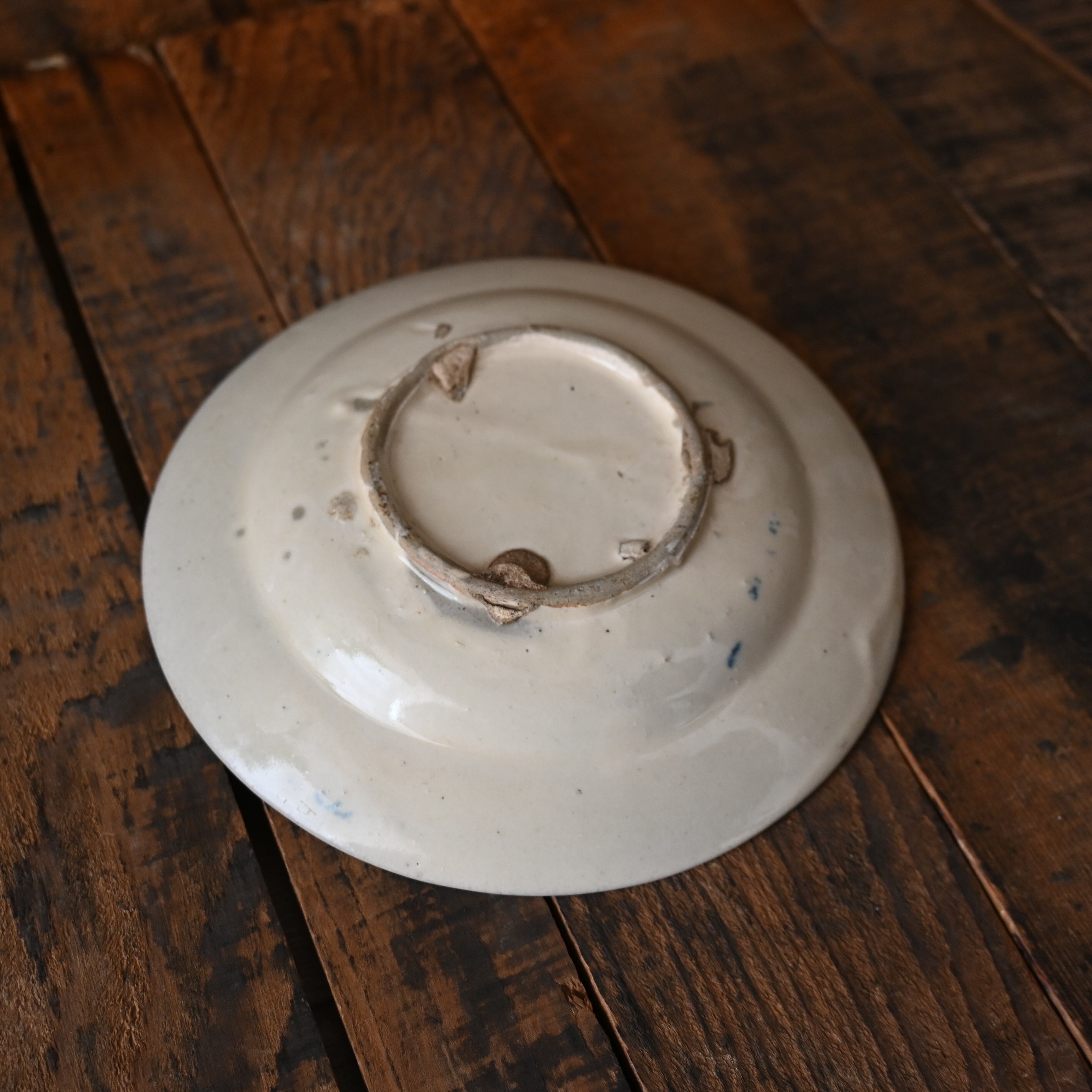 焼成時に器を重ねて焼くため、高台(底の部分)や縁に、小さな突起や釉薬の剥がれた跡が残ることがあります。これは当時の製法ならではの特徴であり、ひとつひとつ異なる個性を持つ証ともいえます。