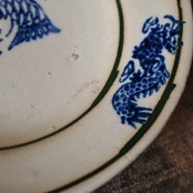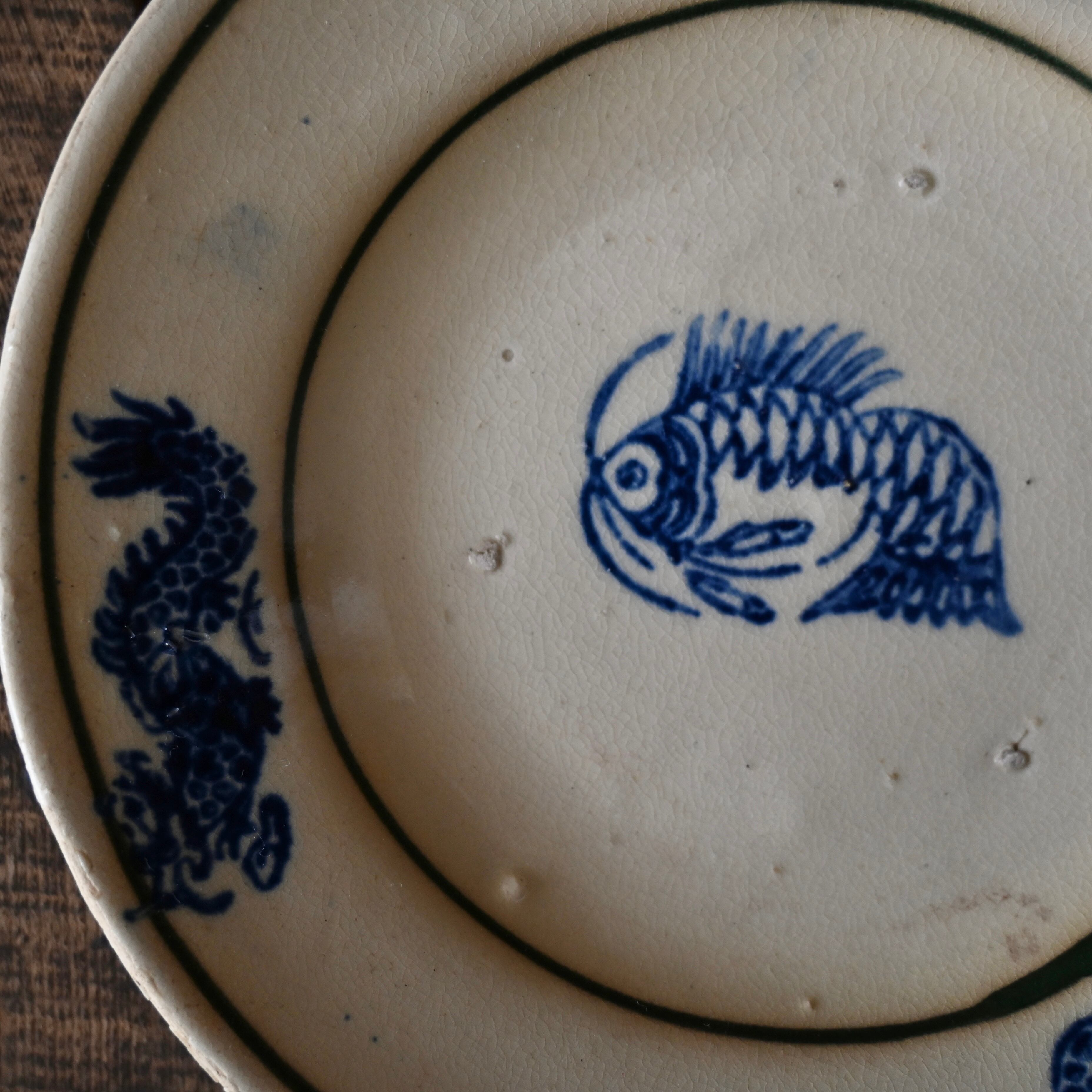 ソンべ焼は、クリーム系の白地に青の絵付けが多く見られる一方で、黄色や緑、茶色などを用いたカラフルなデザインもあります。これは、中国の染付の影響を受けながらも、ベトナム独自のスタイルへと発展したことを示しています。