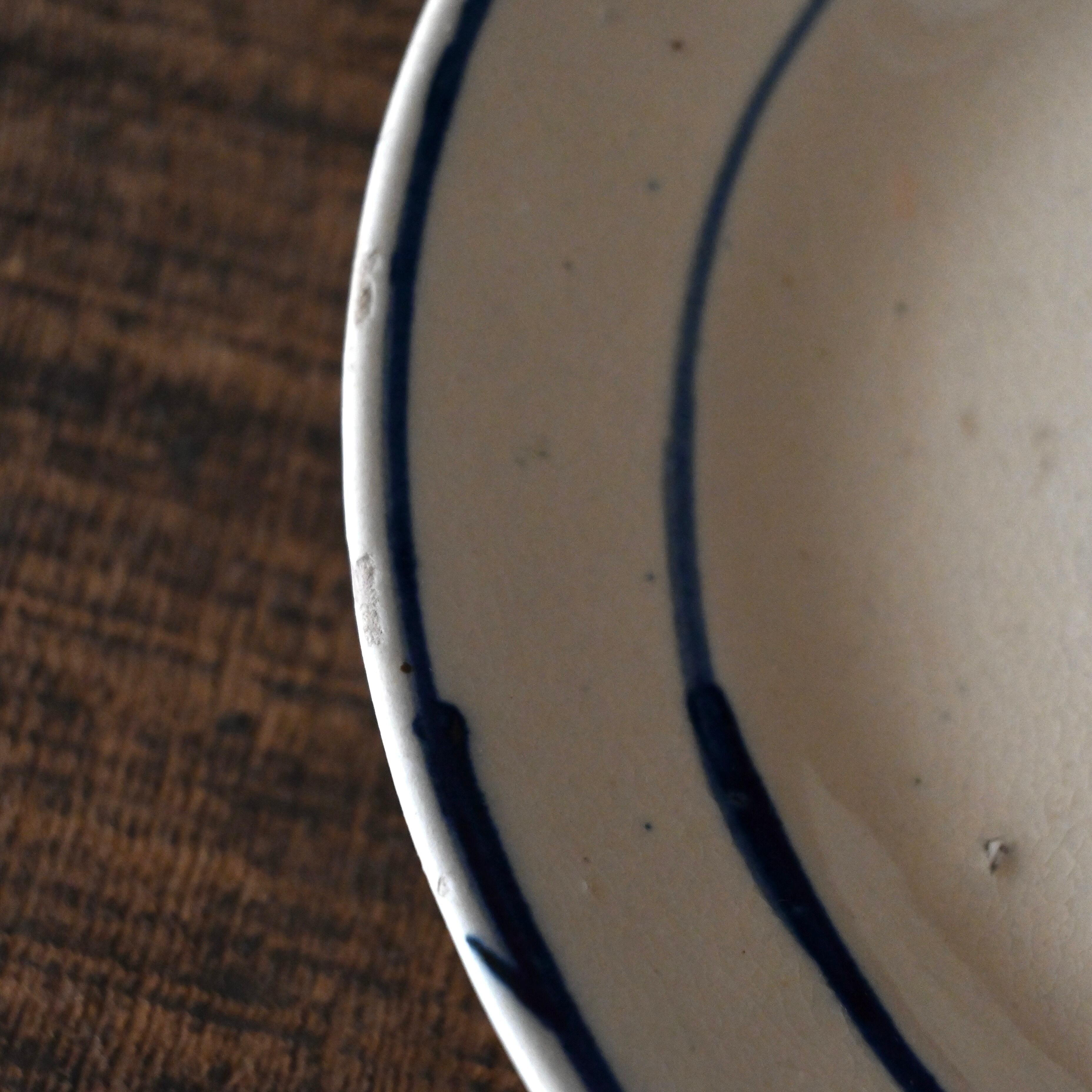 焼成時に器を重ねて焼くため、高台(底の部分)や縁に、小さな突起や釉薬の剥がれた跡が残ることがあります。これは当時の製法ならではの特徴であり、ひとつひとつ異なる個性を持つ証ともいえます。