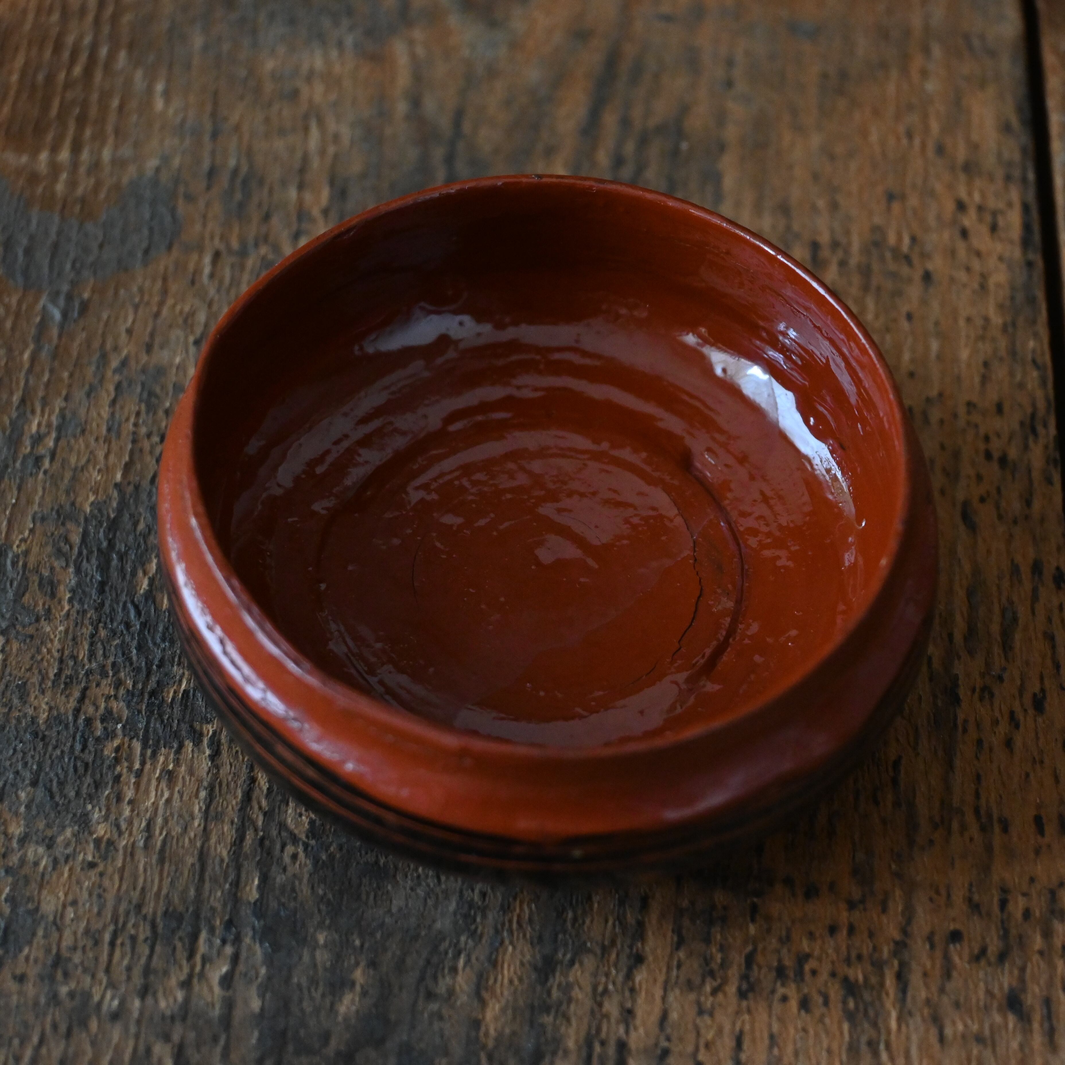 内側は温かみのある赤茶色の塗り仕上げ。艶やかで美しく、アクセサリーやお守り、鍵や細かな道具類を入れておくのにぴったりです。
