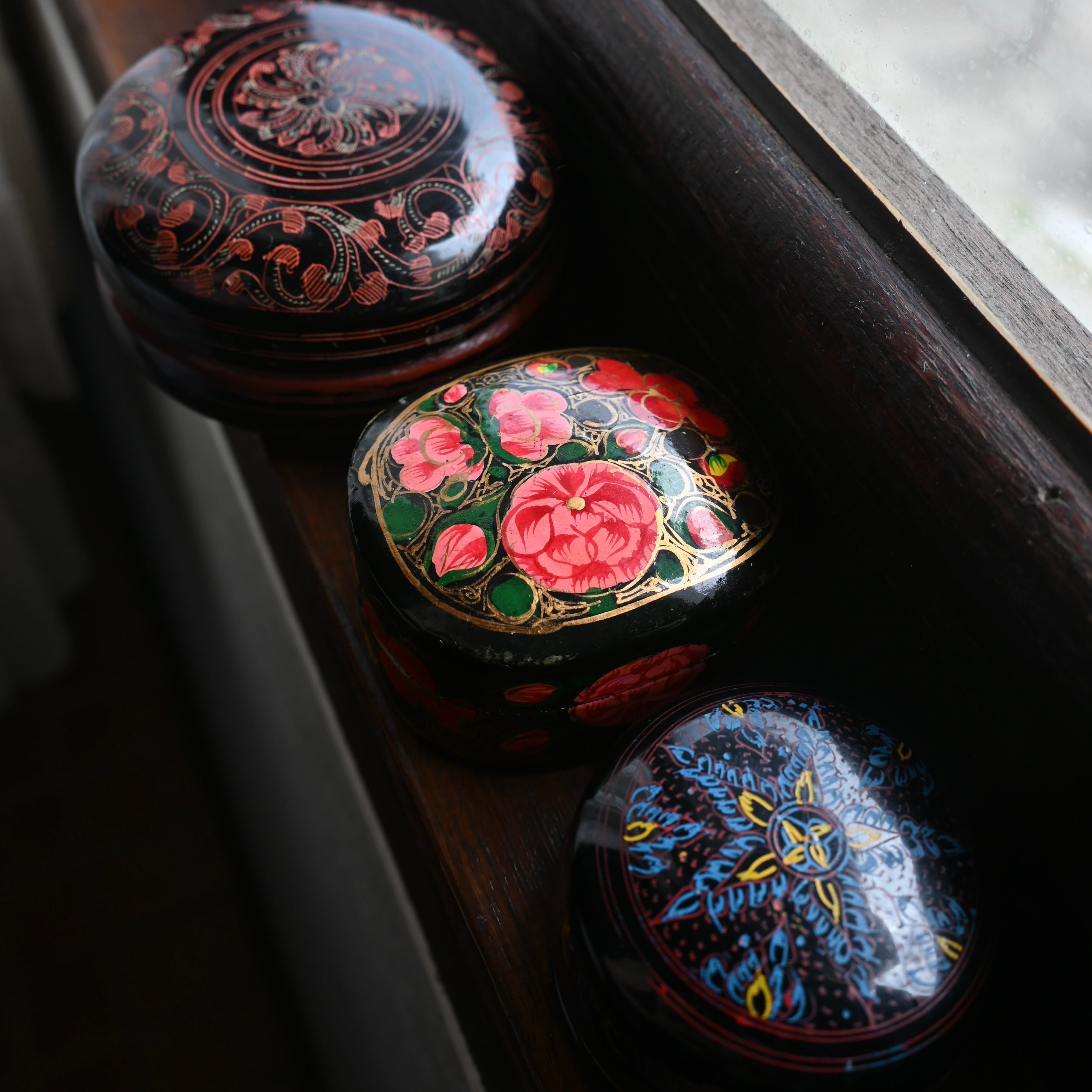 タイ北部・チェンマイで出会った艶やかな黒に赤と金が映える美しい小箱。こちらは古いものになります。
