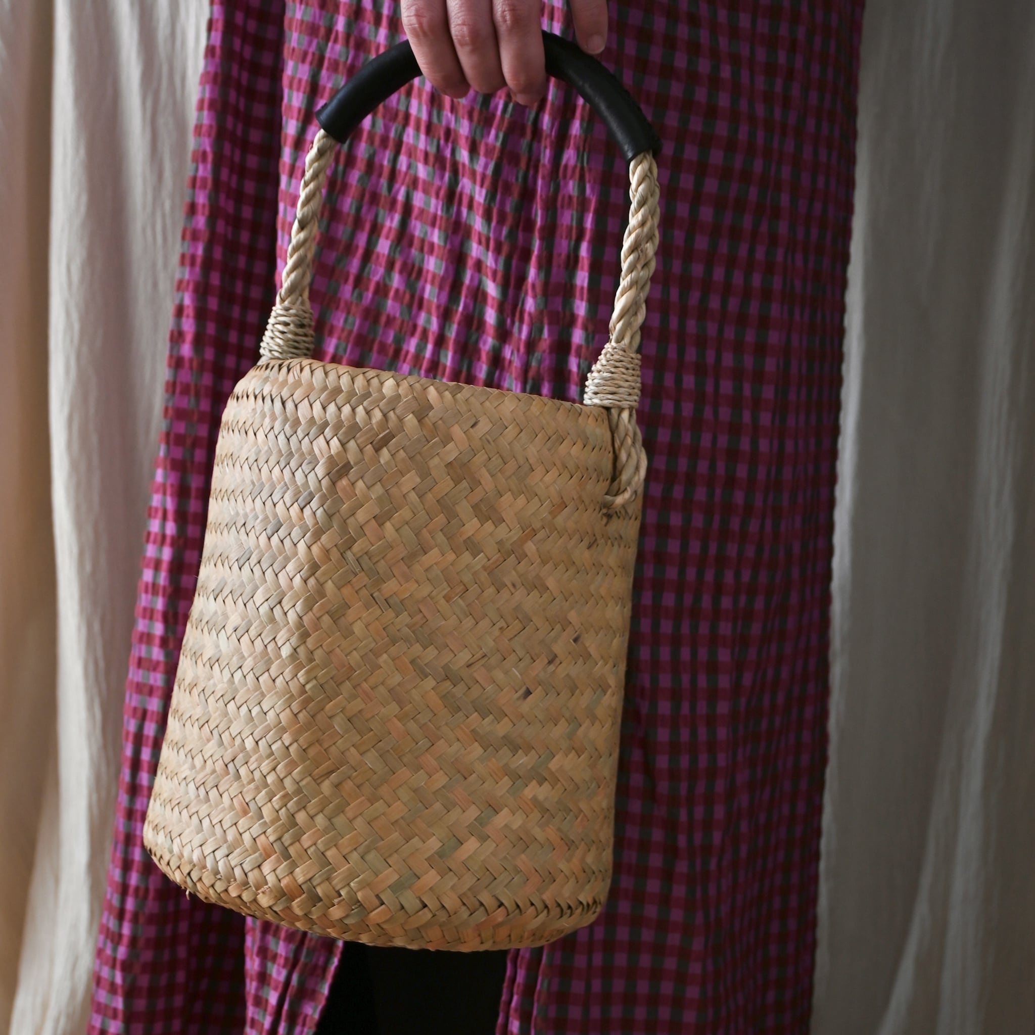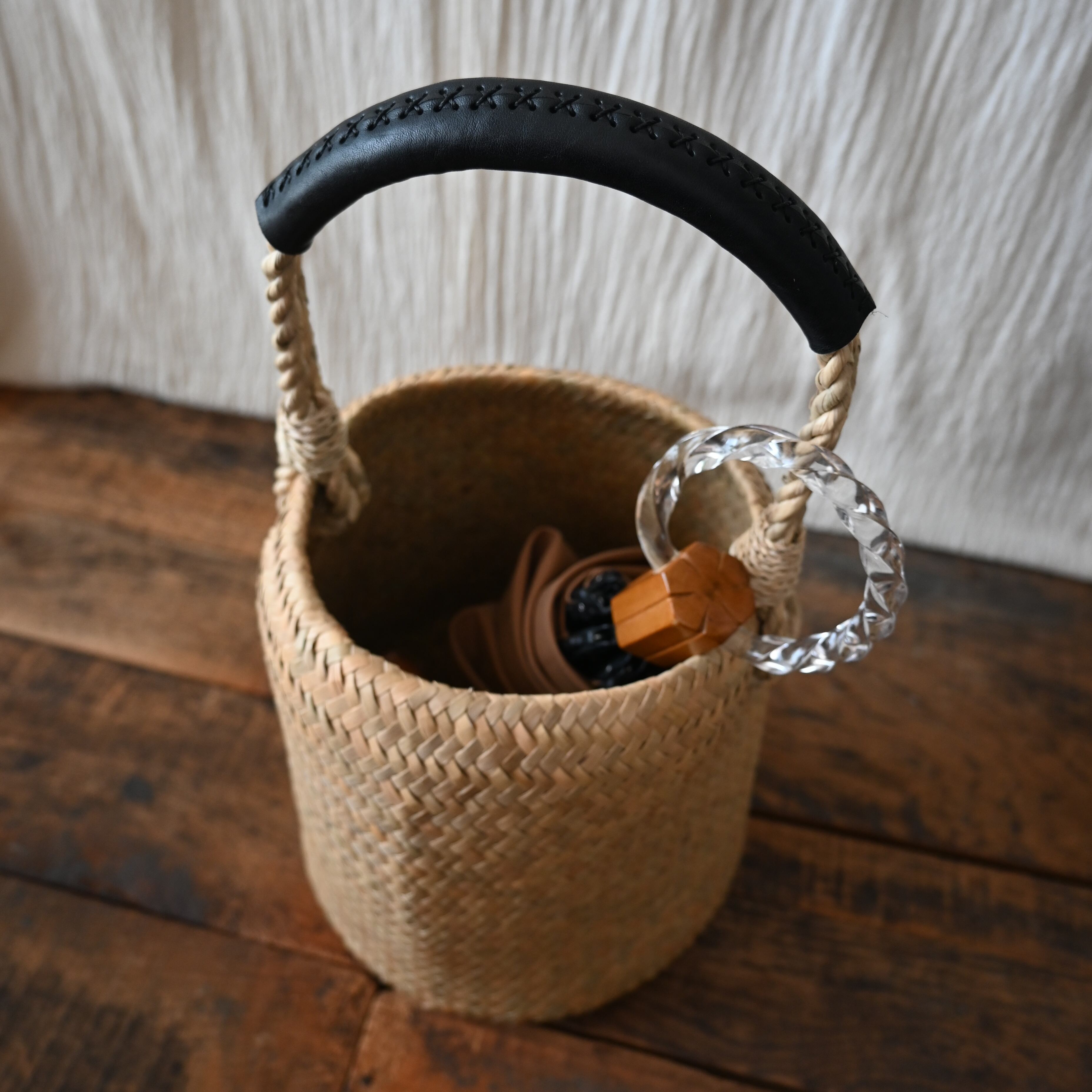 ・素材:水草 持ち手:牛革