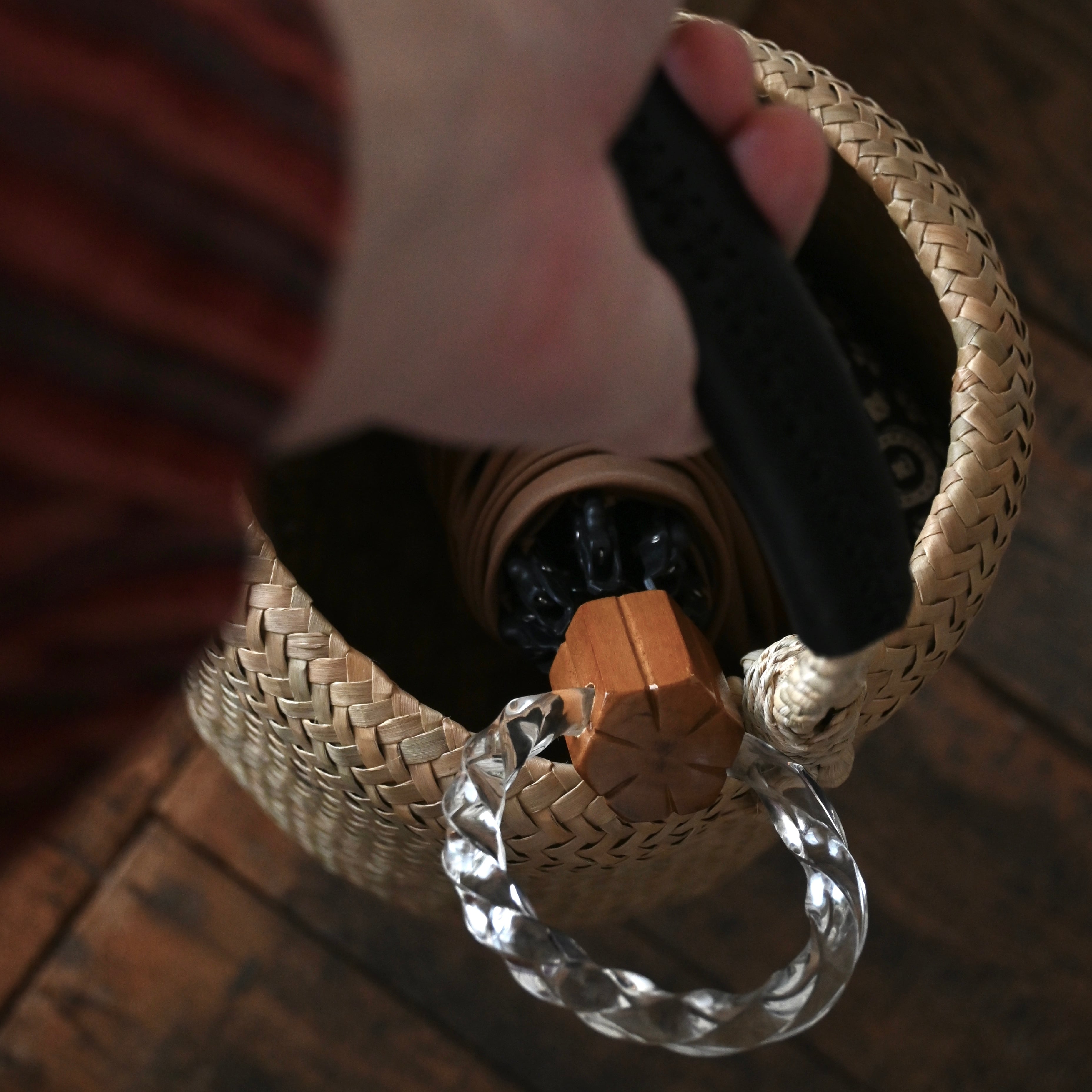 南国タイで一本一本、手で編まれたカチューのバスケット。