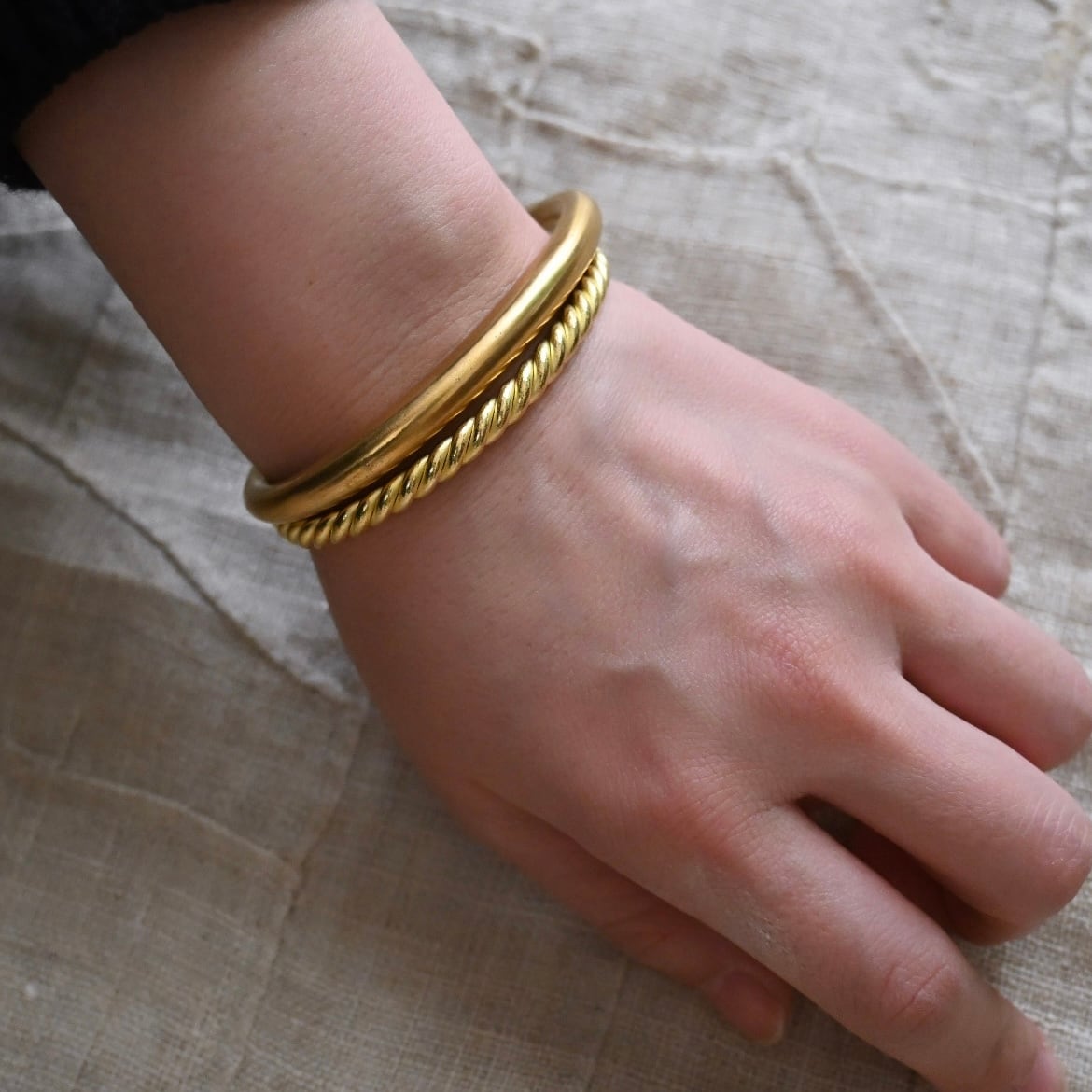 ぽってりと厚みと幅があり、手首にしっかりとした存在感を与えながらも、どこか控えめな佇まい。