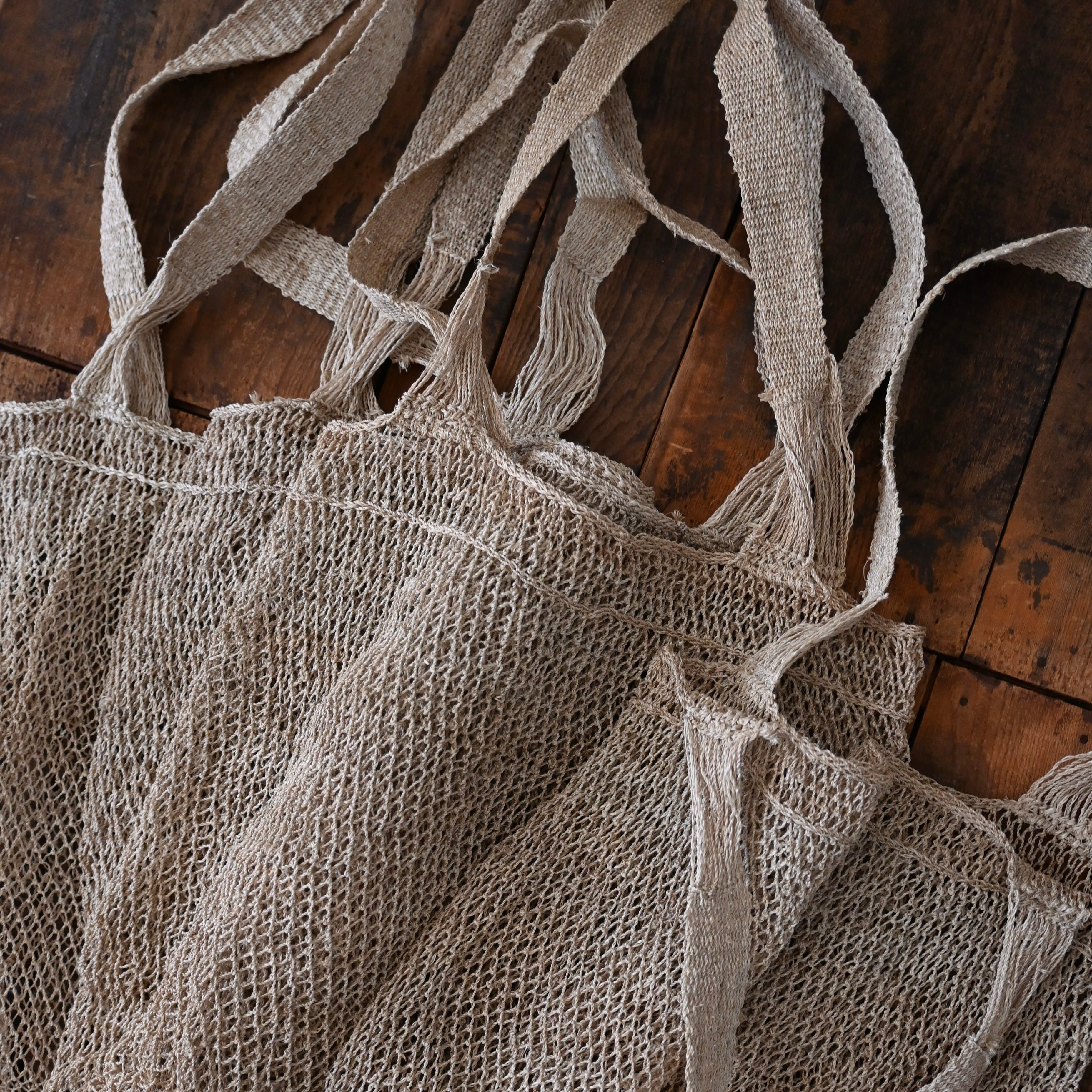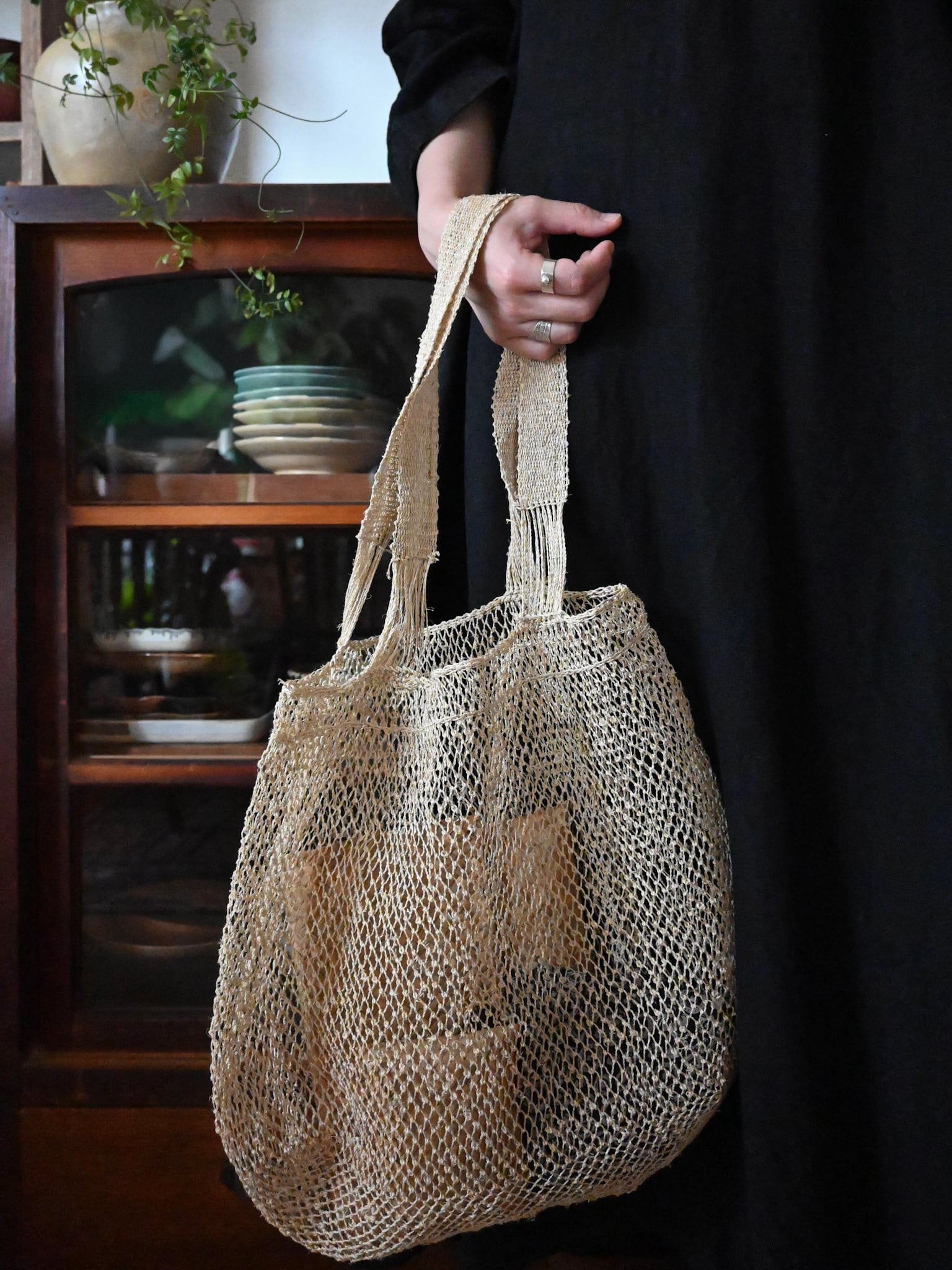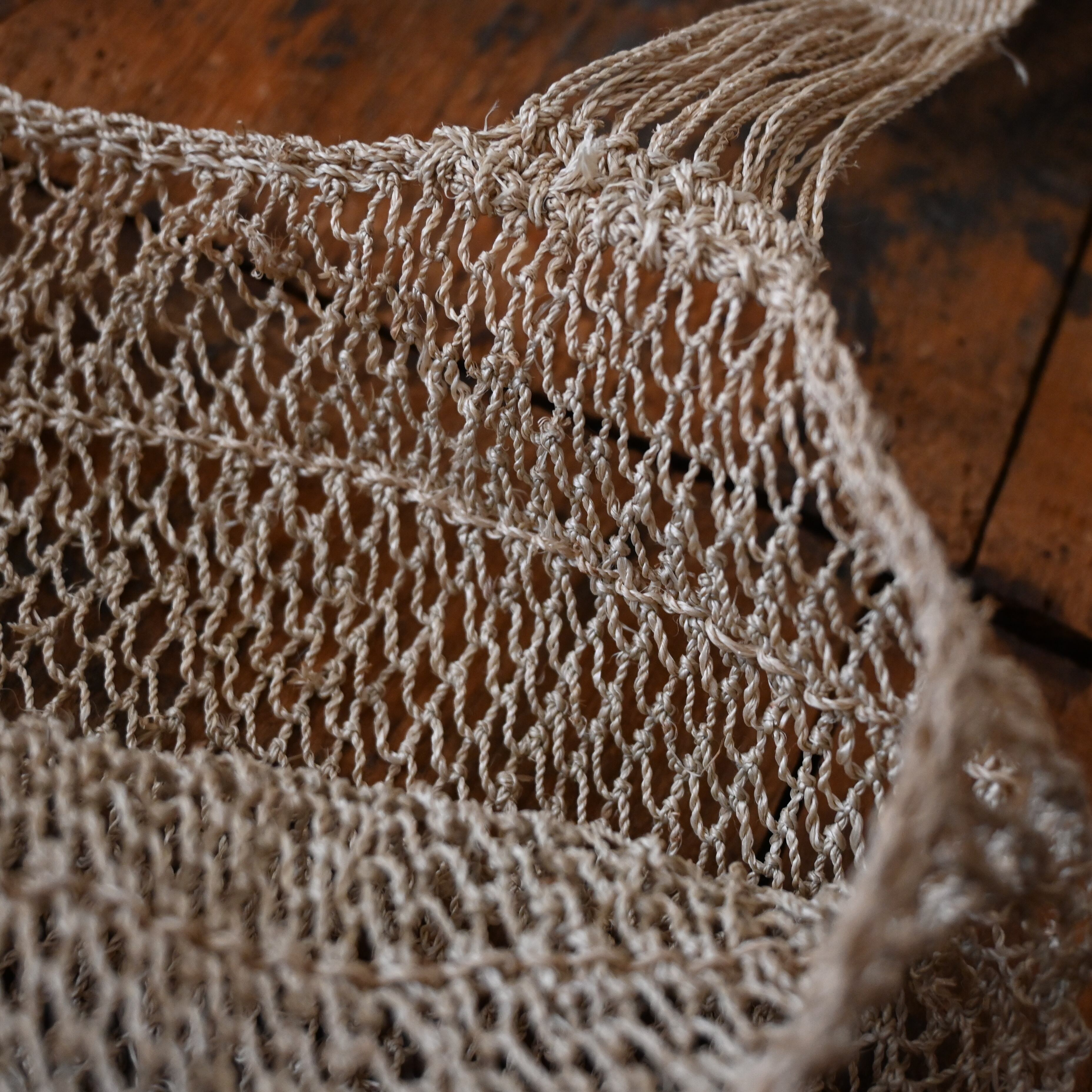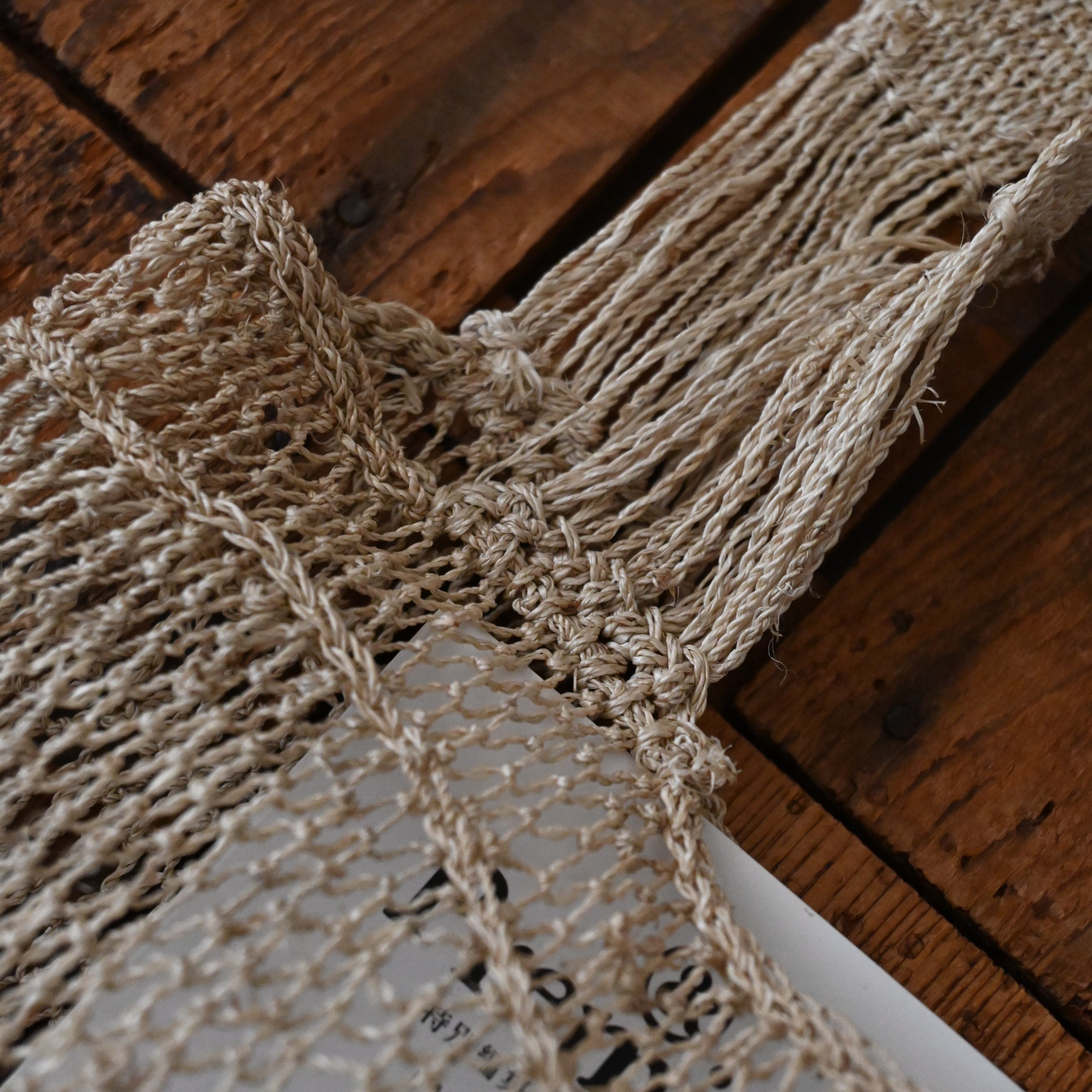 編み目は一目ずつ結ばれていますが、ほつれや切れが気になる場合は、天然繊維の糸で結び直してお使い下さい。