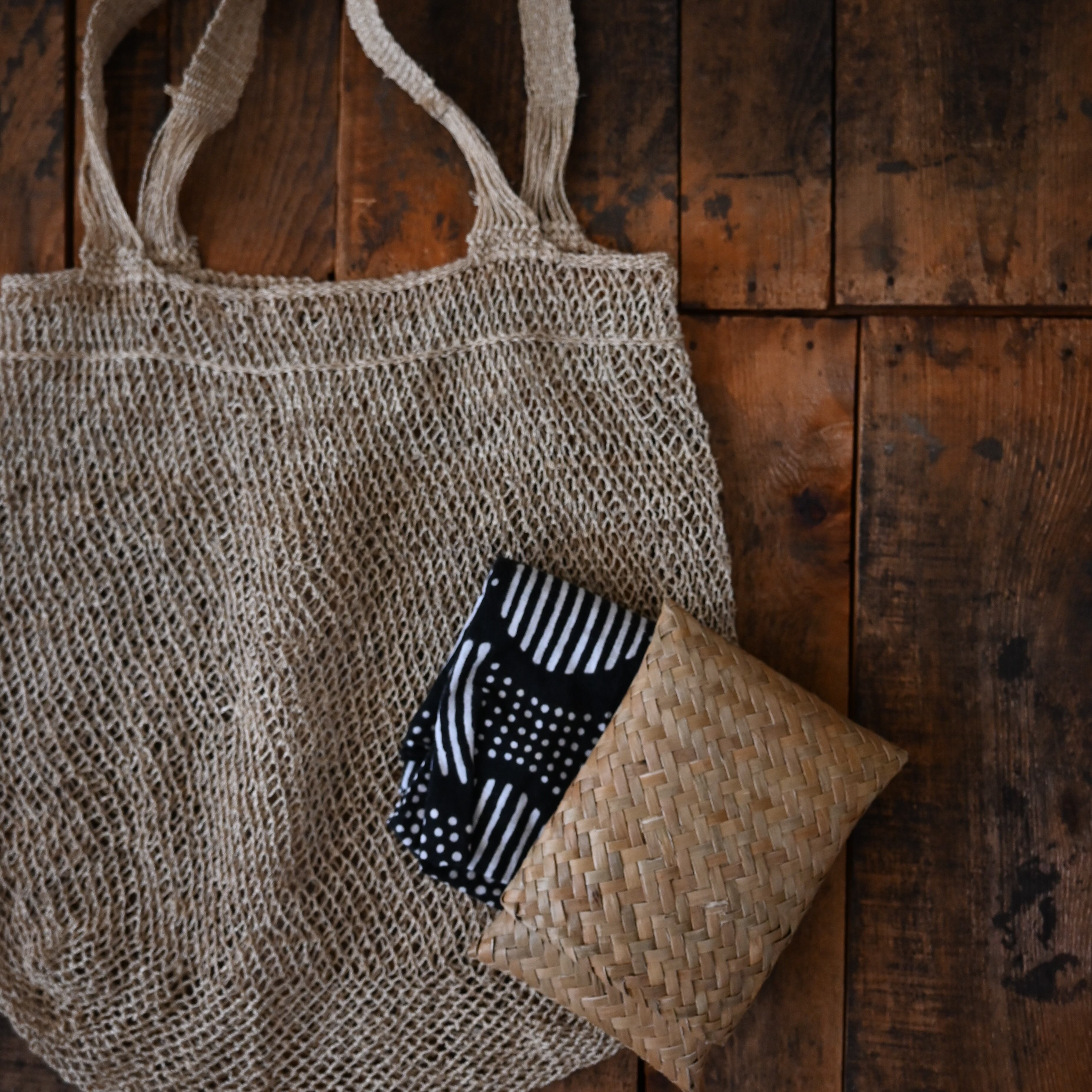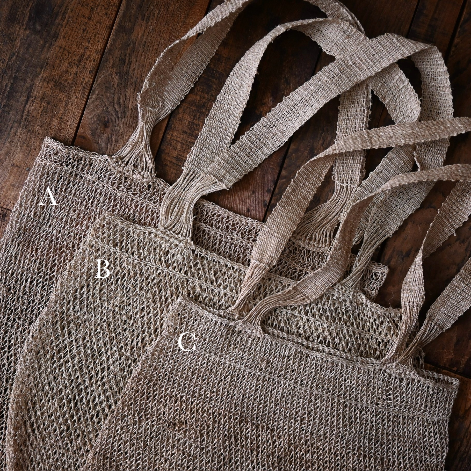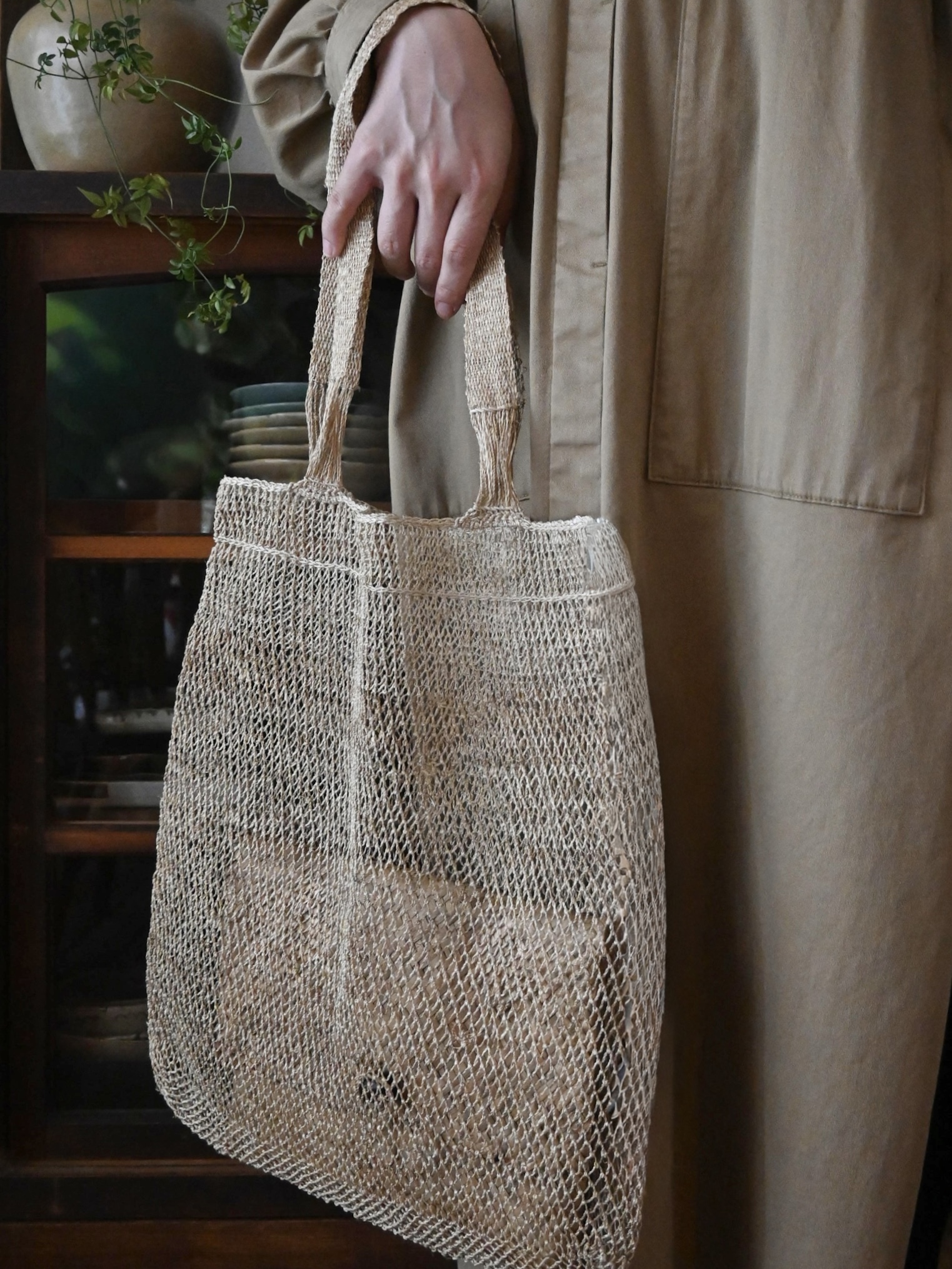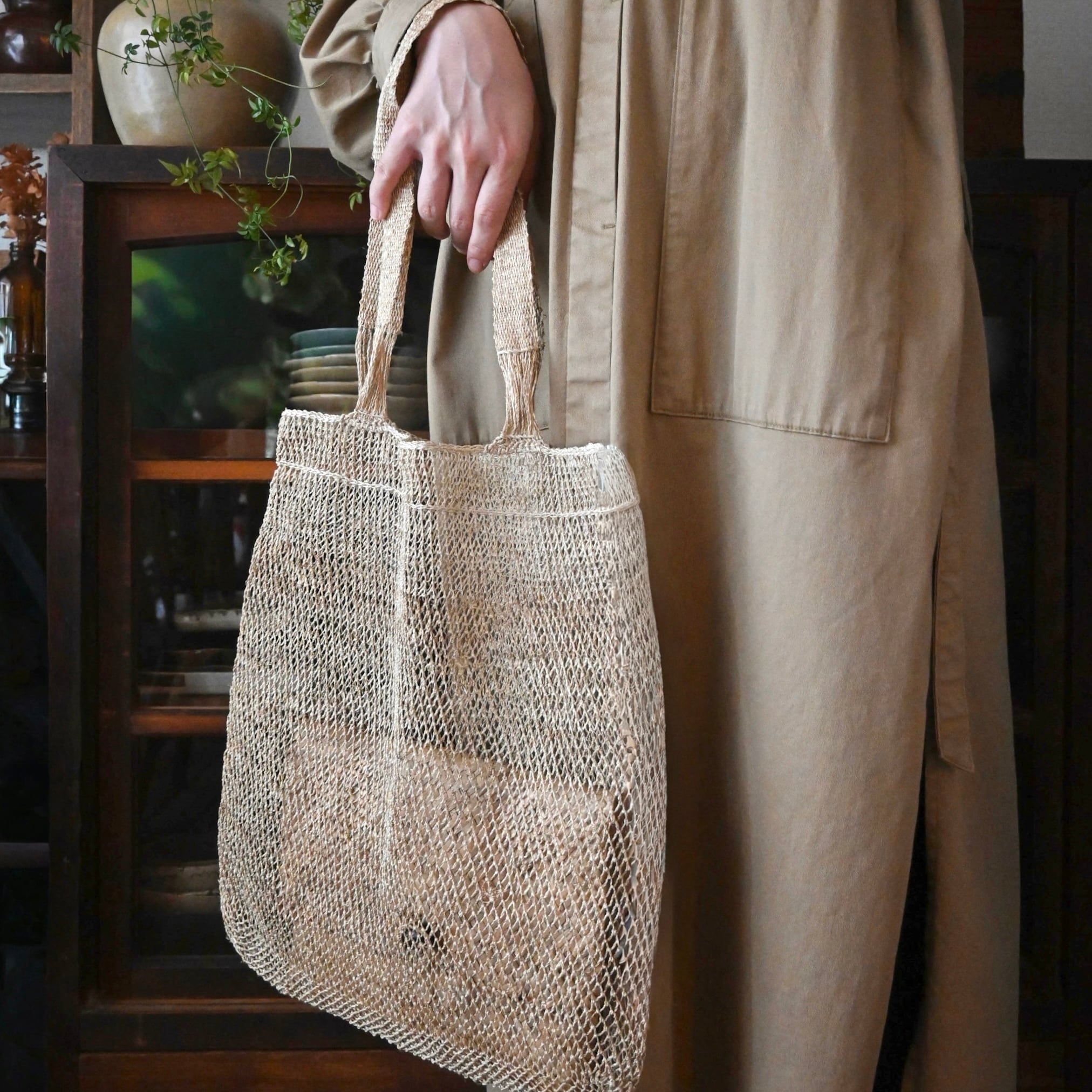 編み目は一目ずつ結ばれていますが、ほつれや切れが気になる場合は、天然繊維の糸で結び直してお使い下さい。