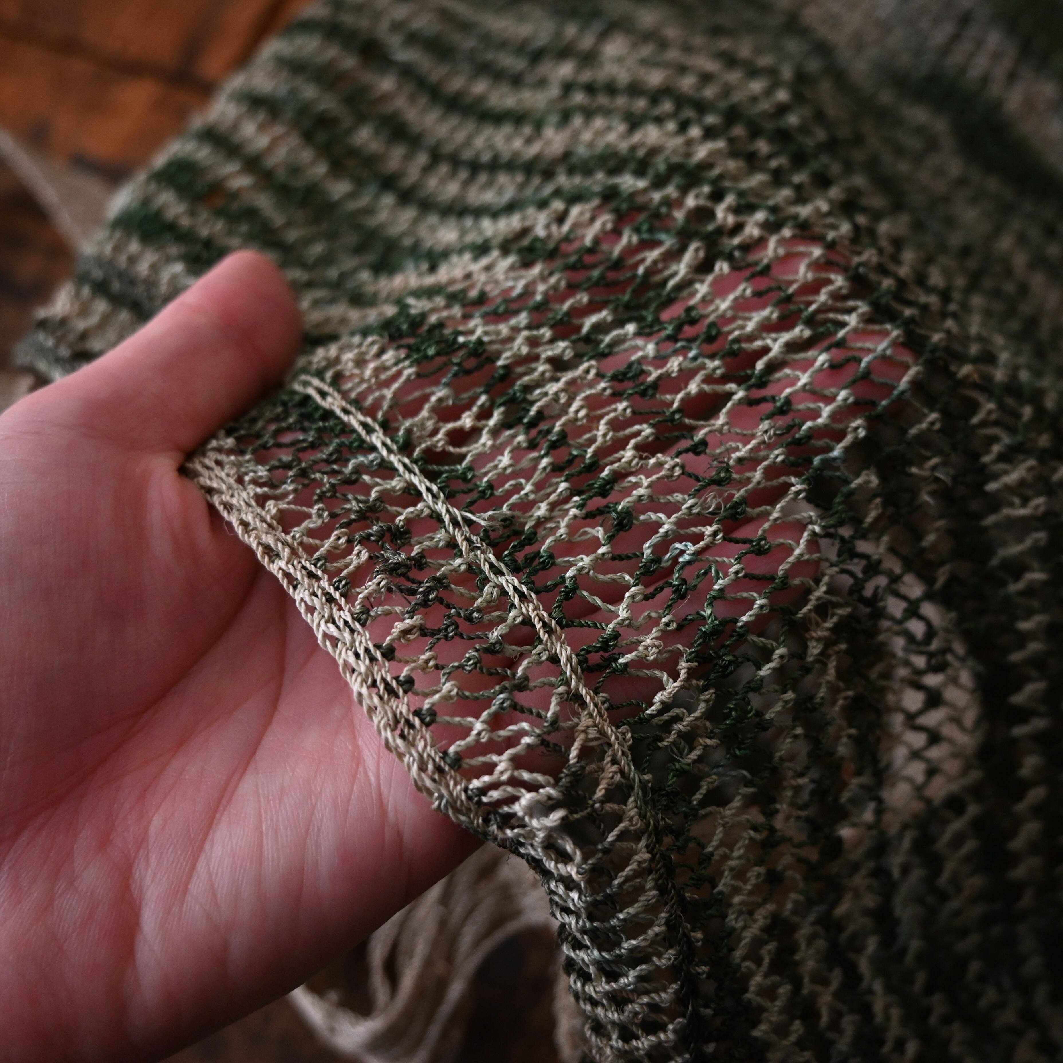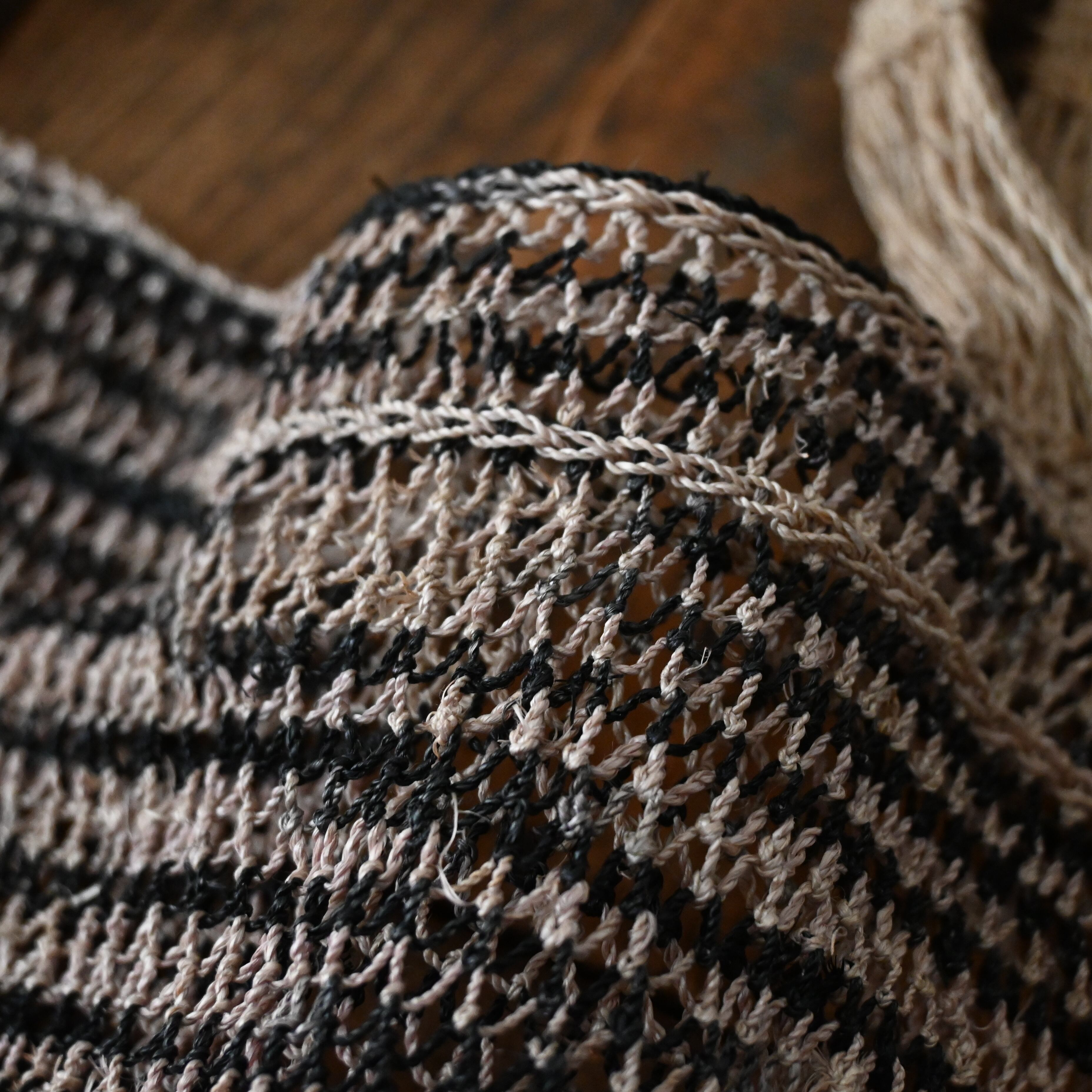 ・天然素材の繊維を糸にしているため、編み目に色に濃淡がございます(画像右下)