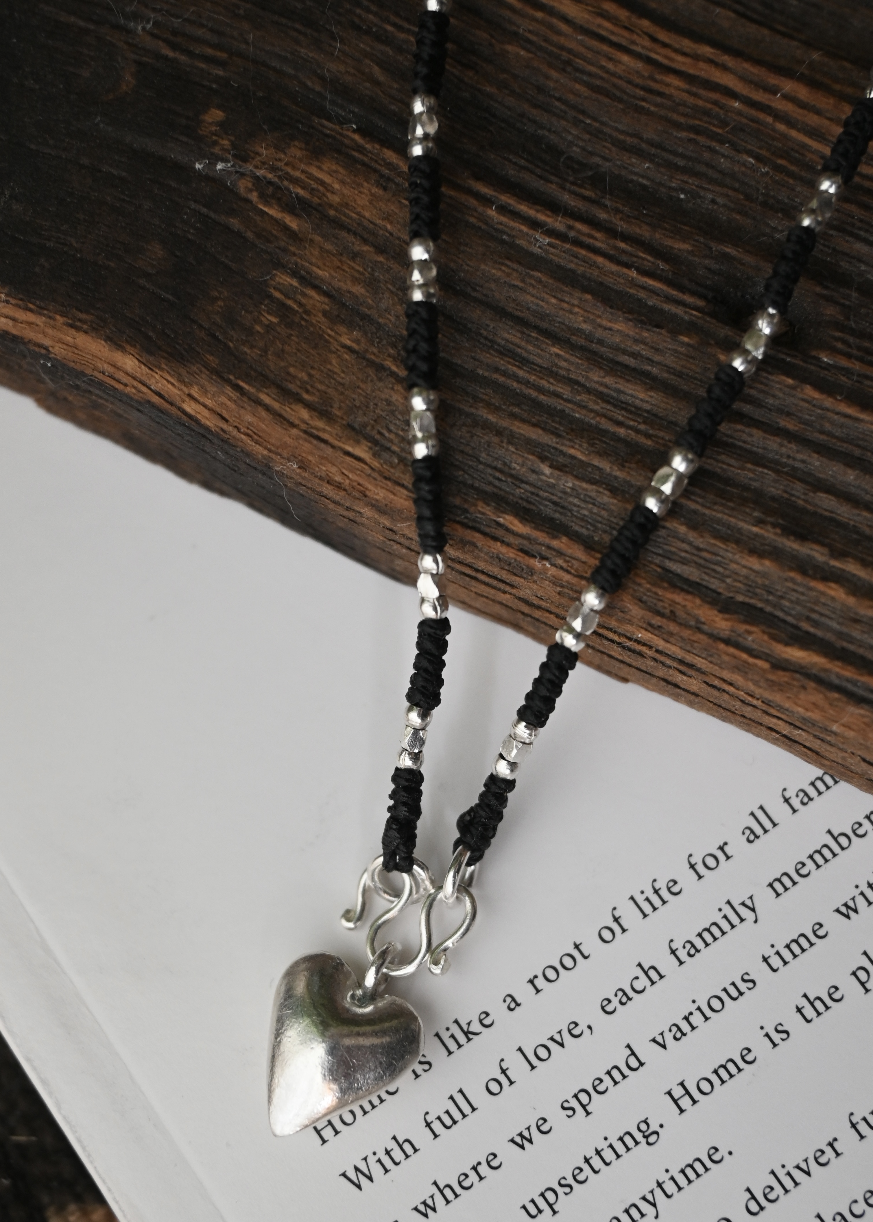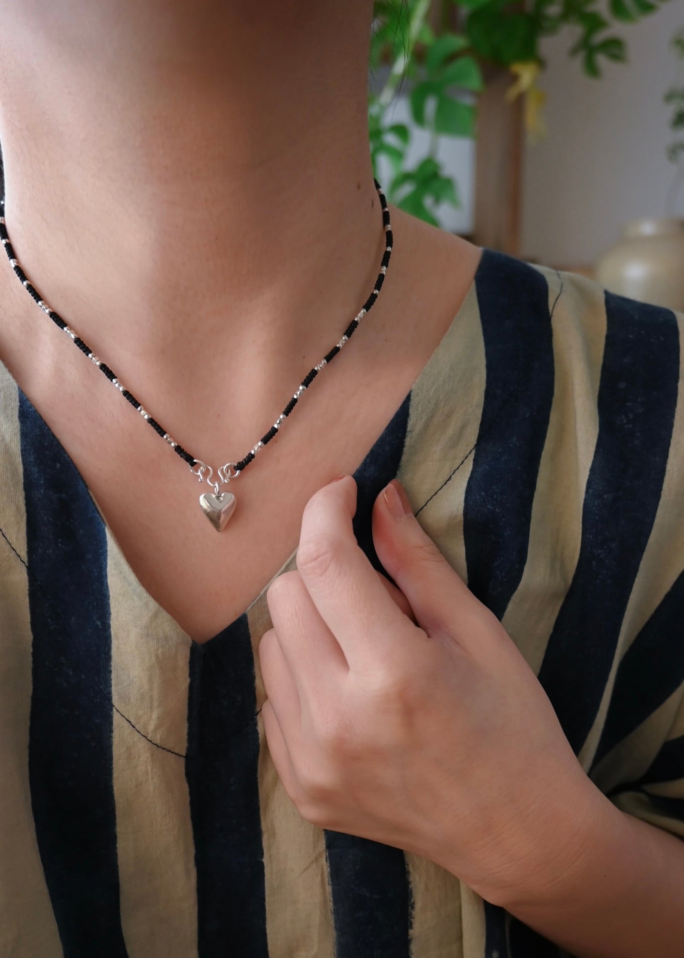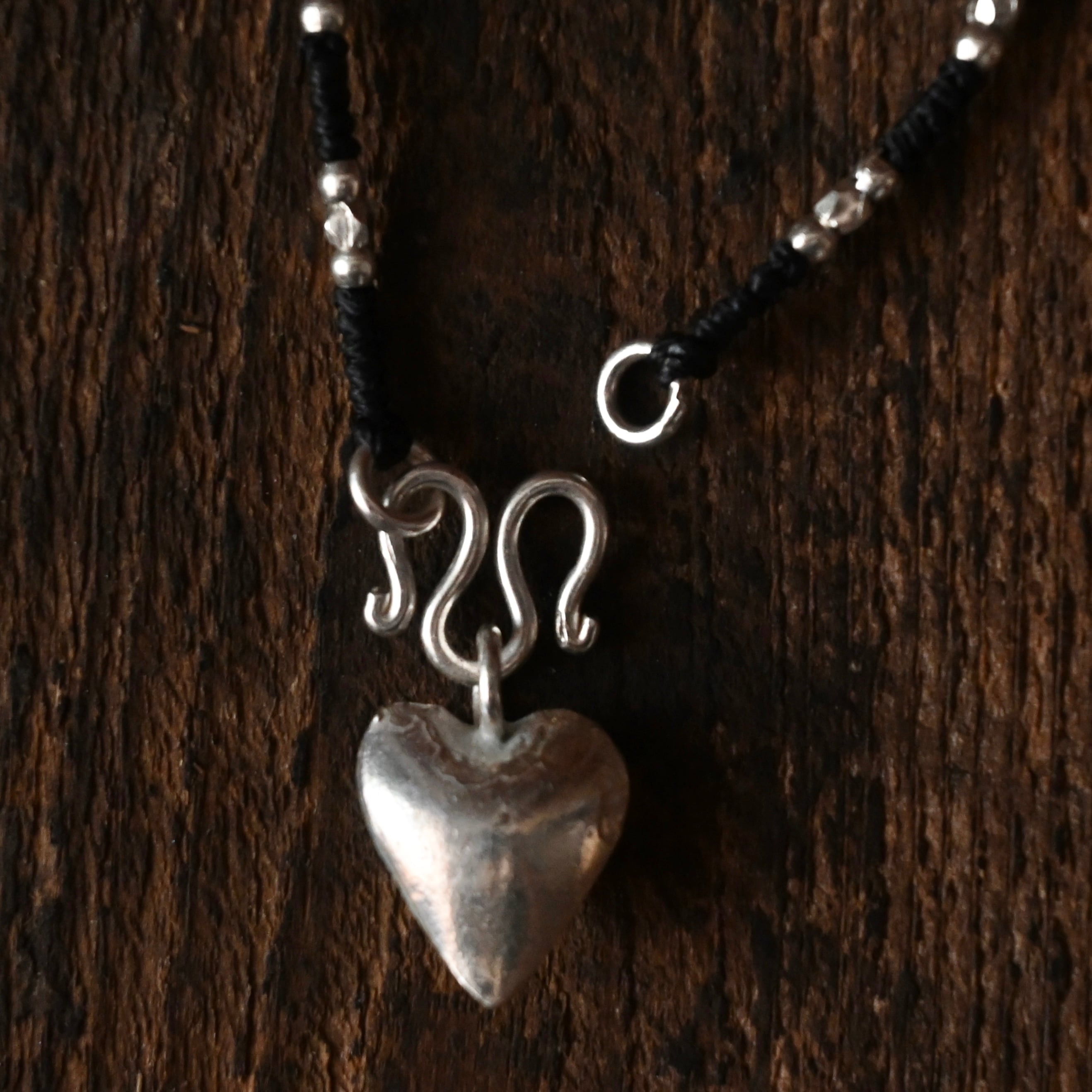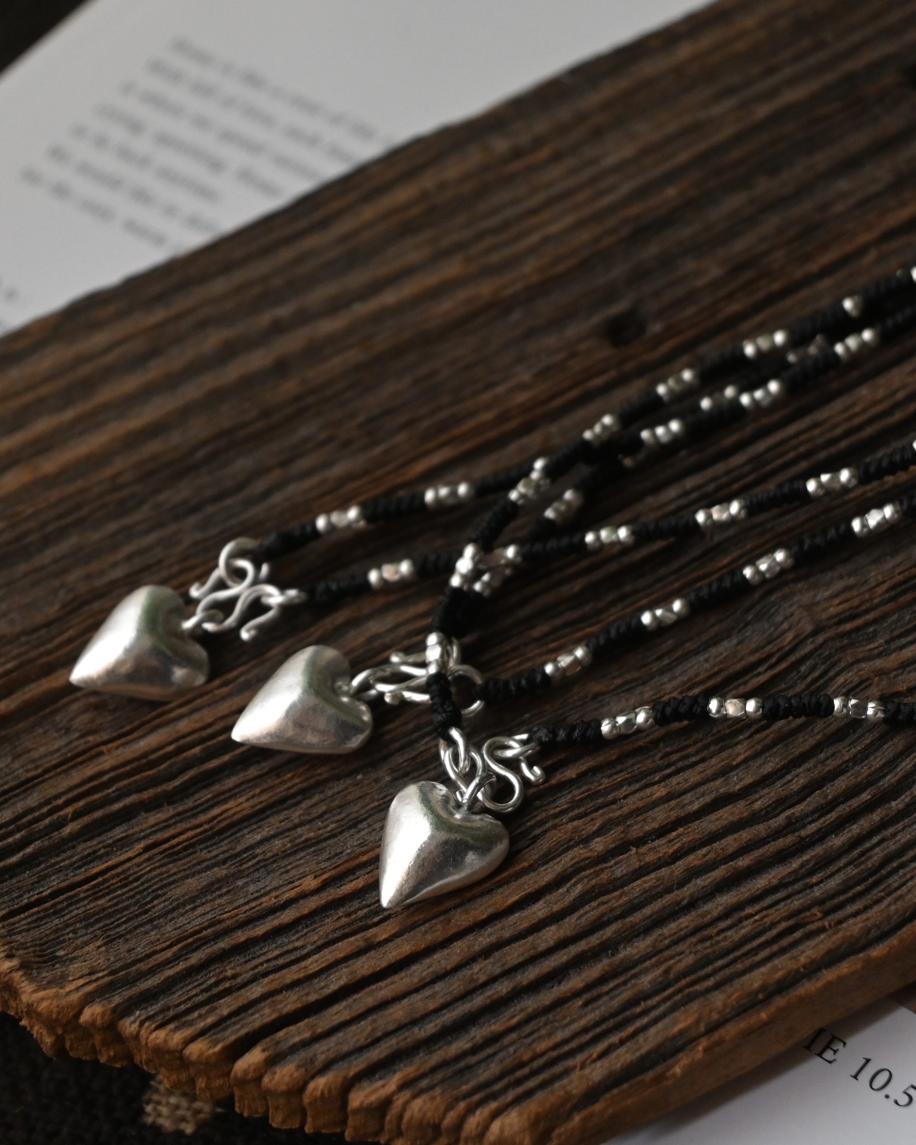 同じ村の工房で作られた、ぷっくりとしたハートのチャームがアクセントに。