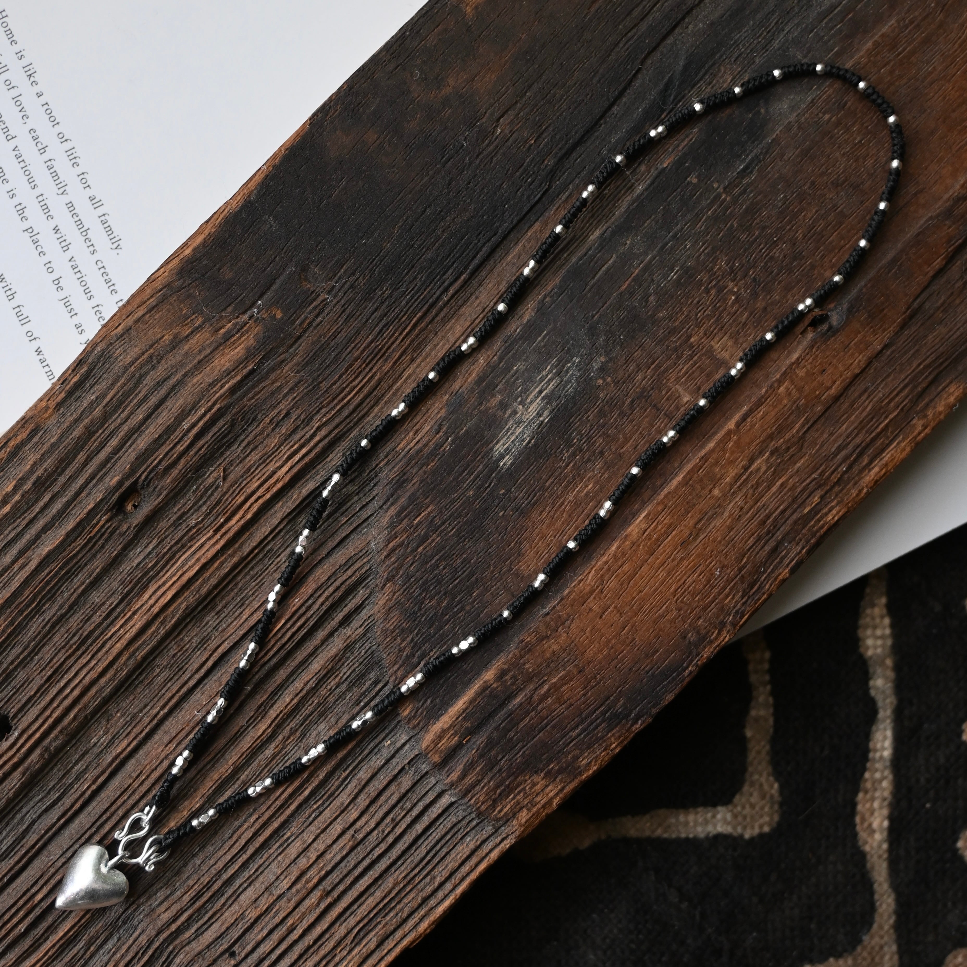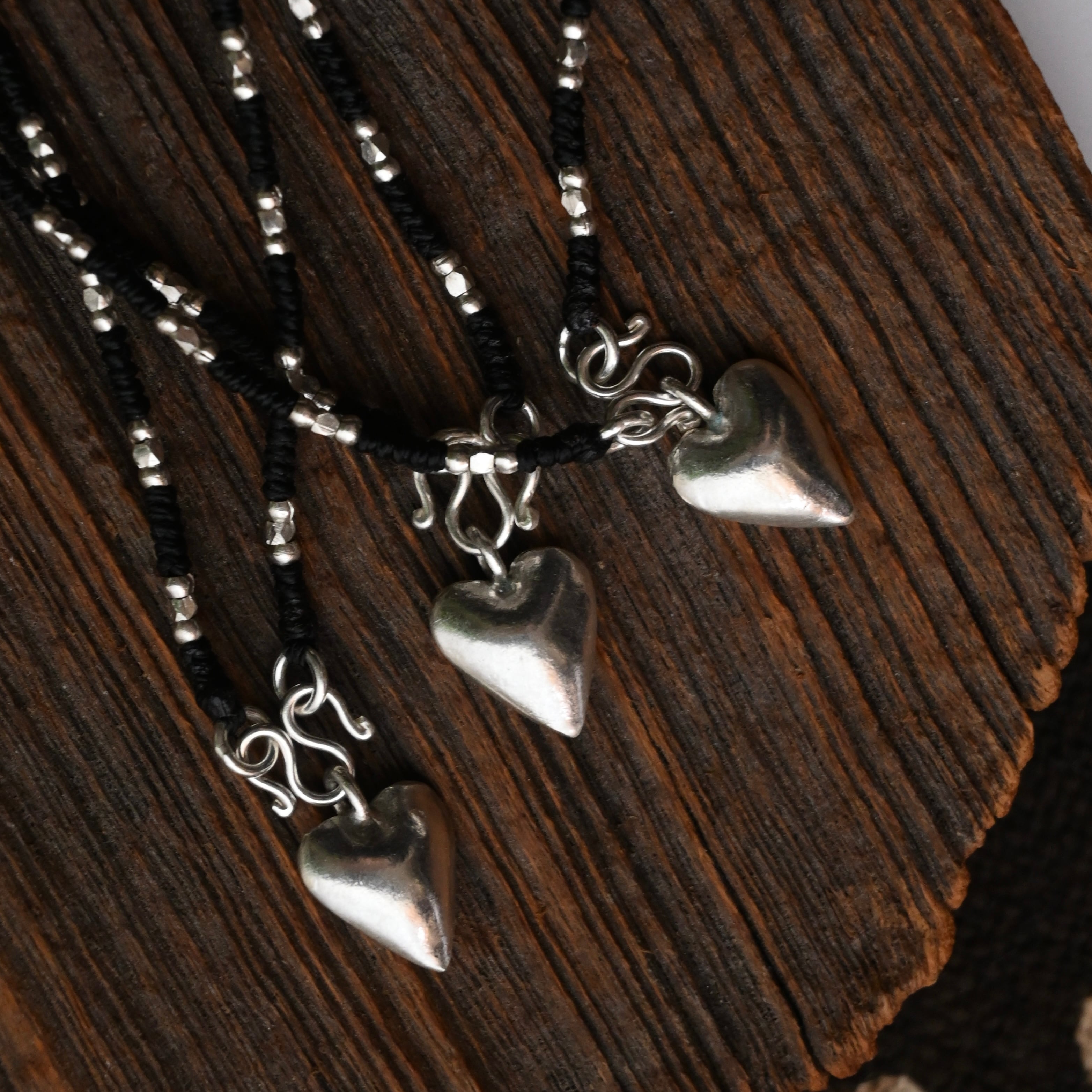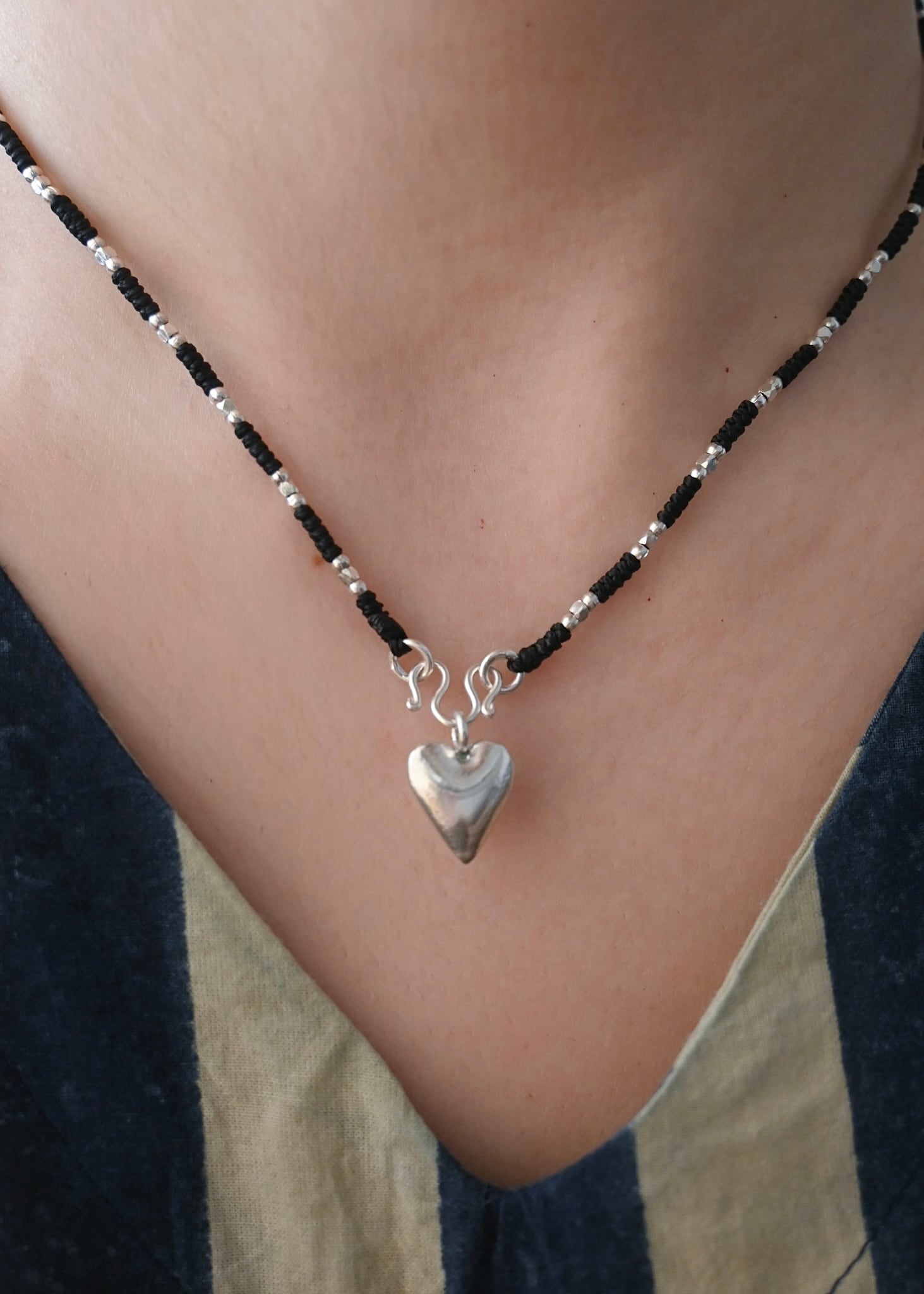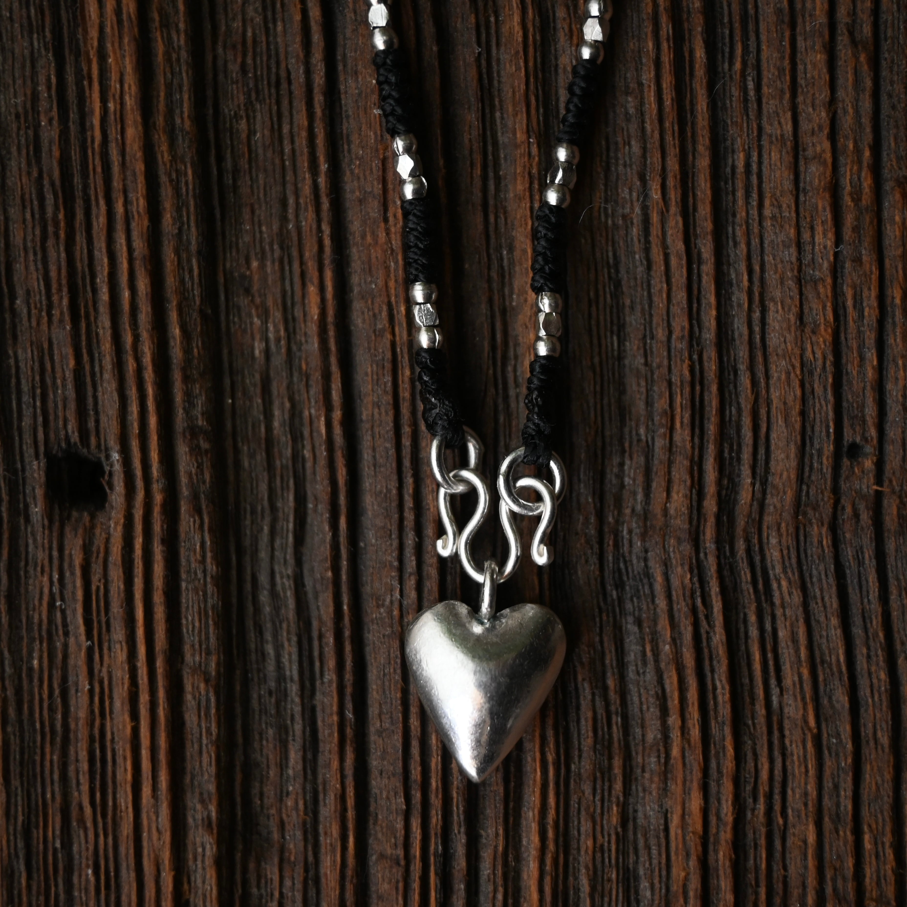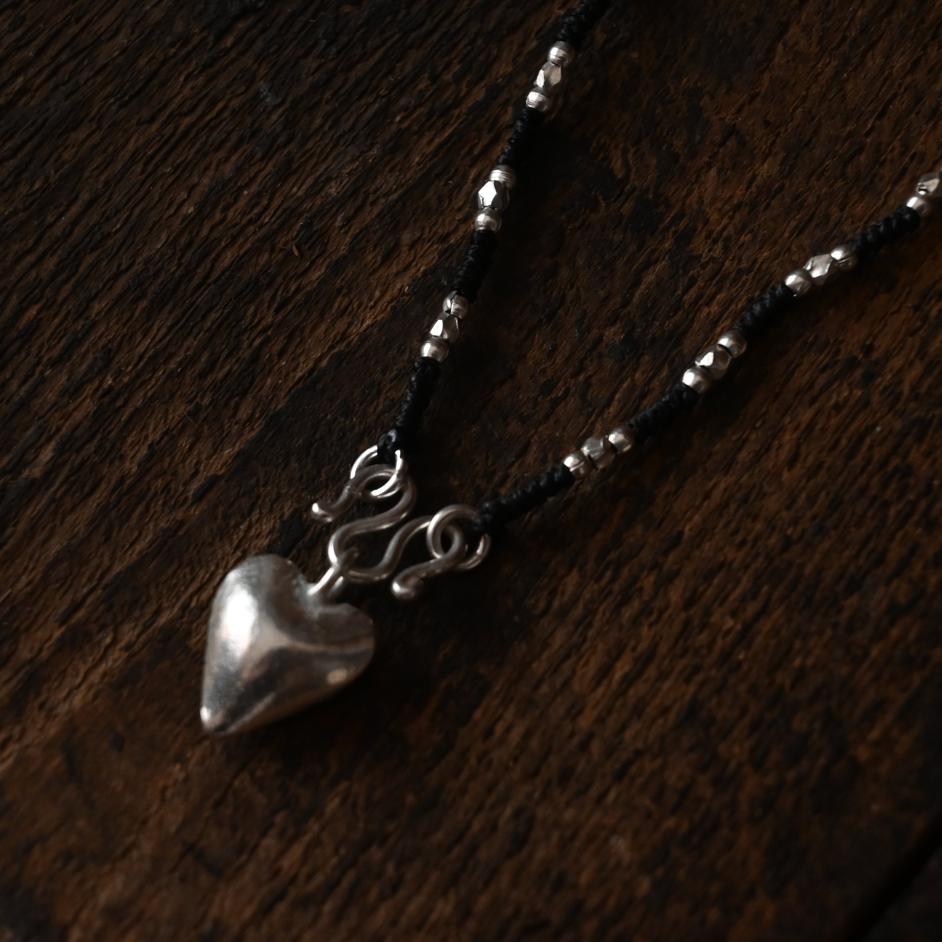 同じ村の工房で作られた、ぷっくりとしたハートのチャームがアクセントに。