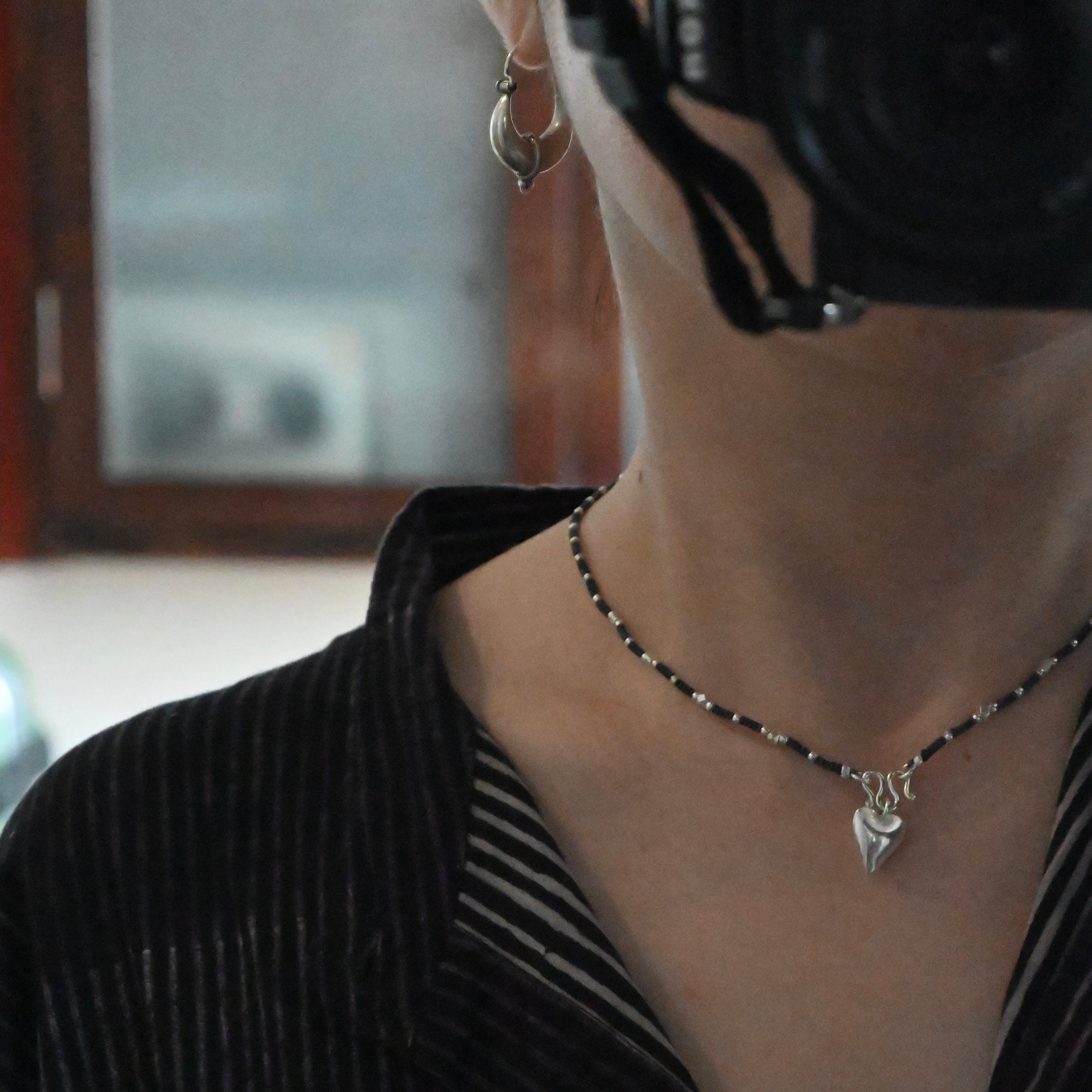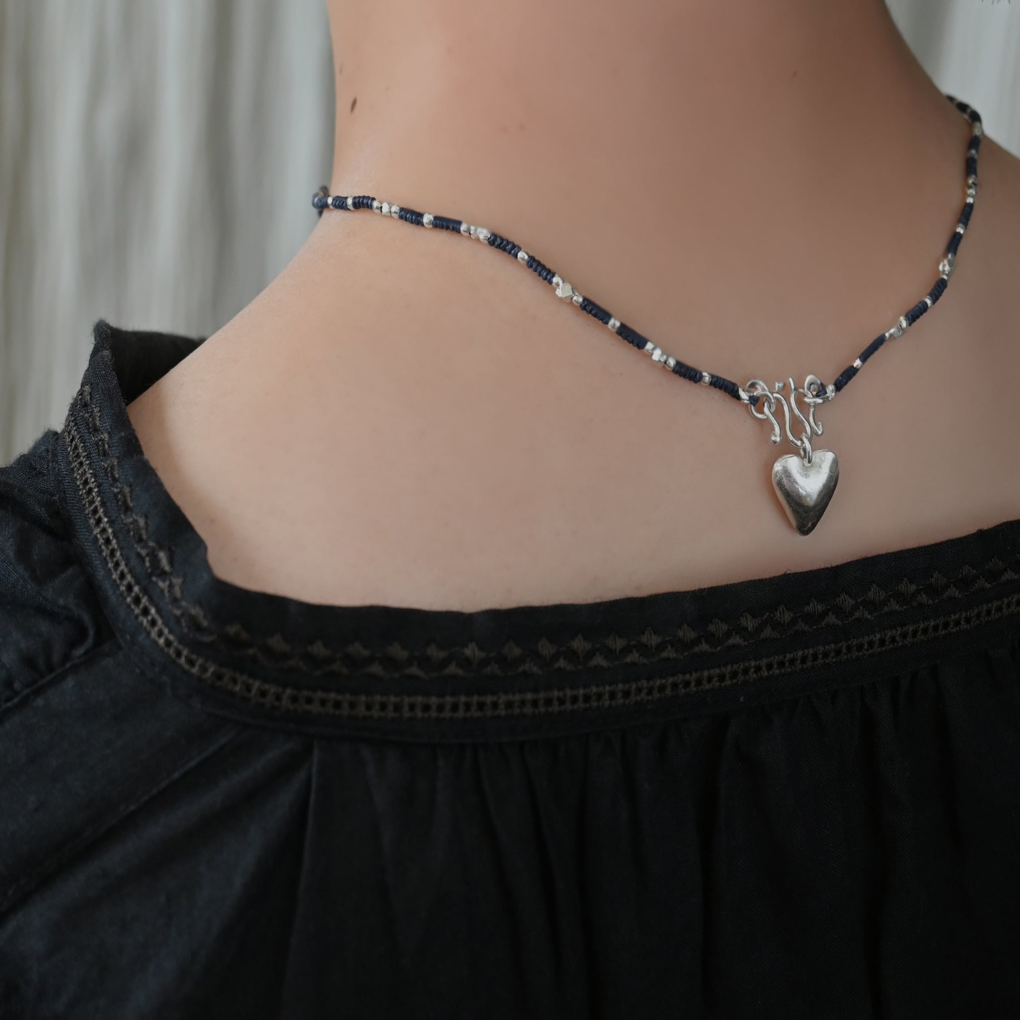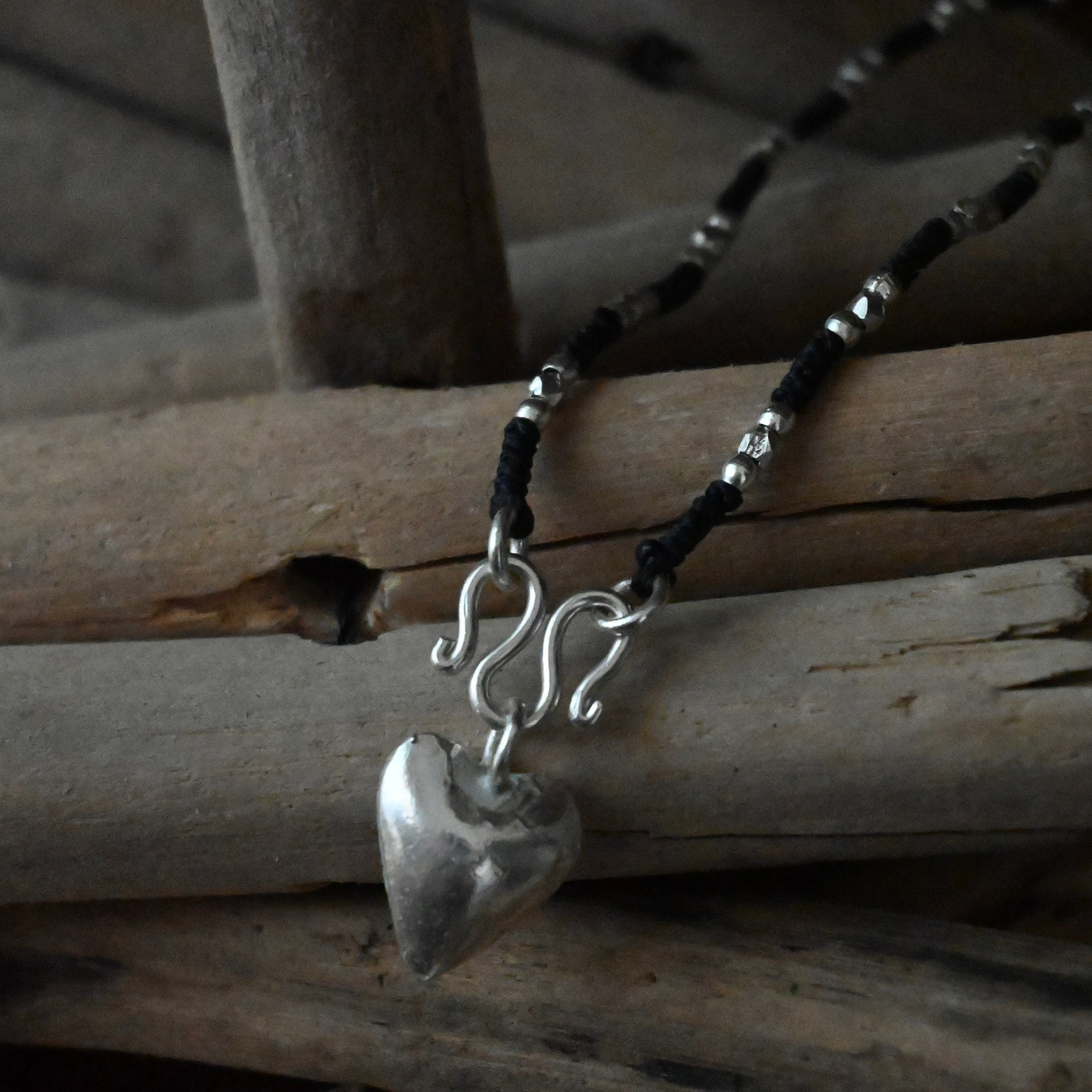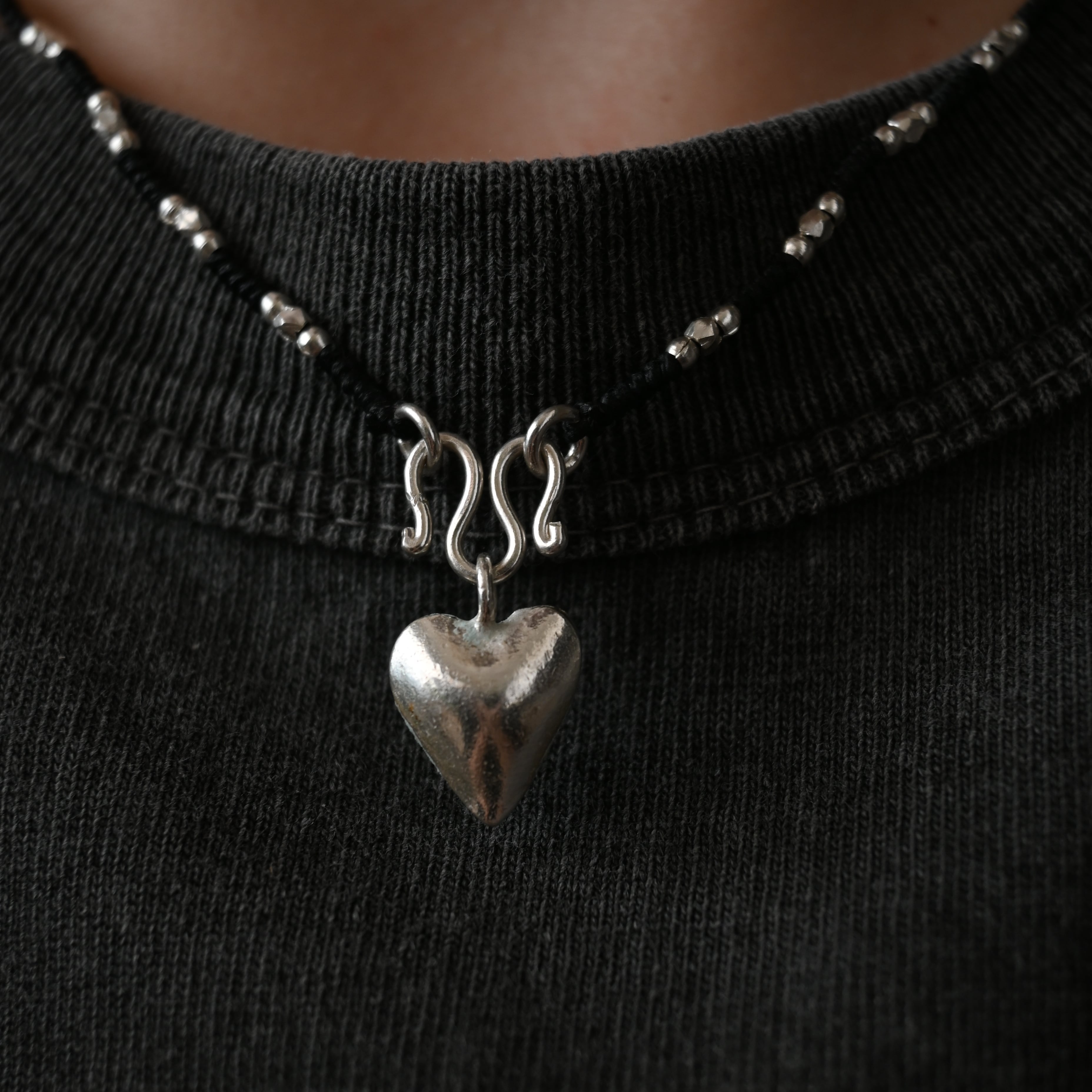 同じ村の工房で作られた、ぷっくりとしたハートのチャームがアクセントに。