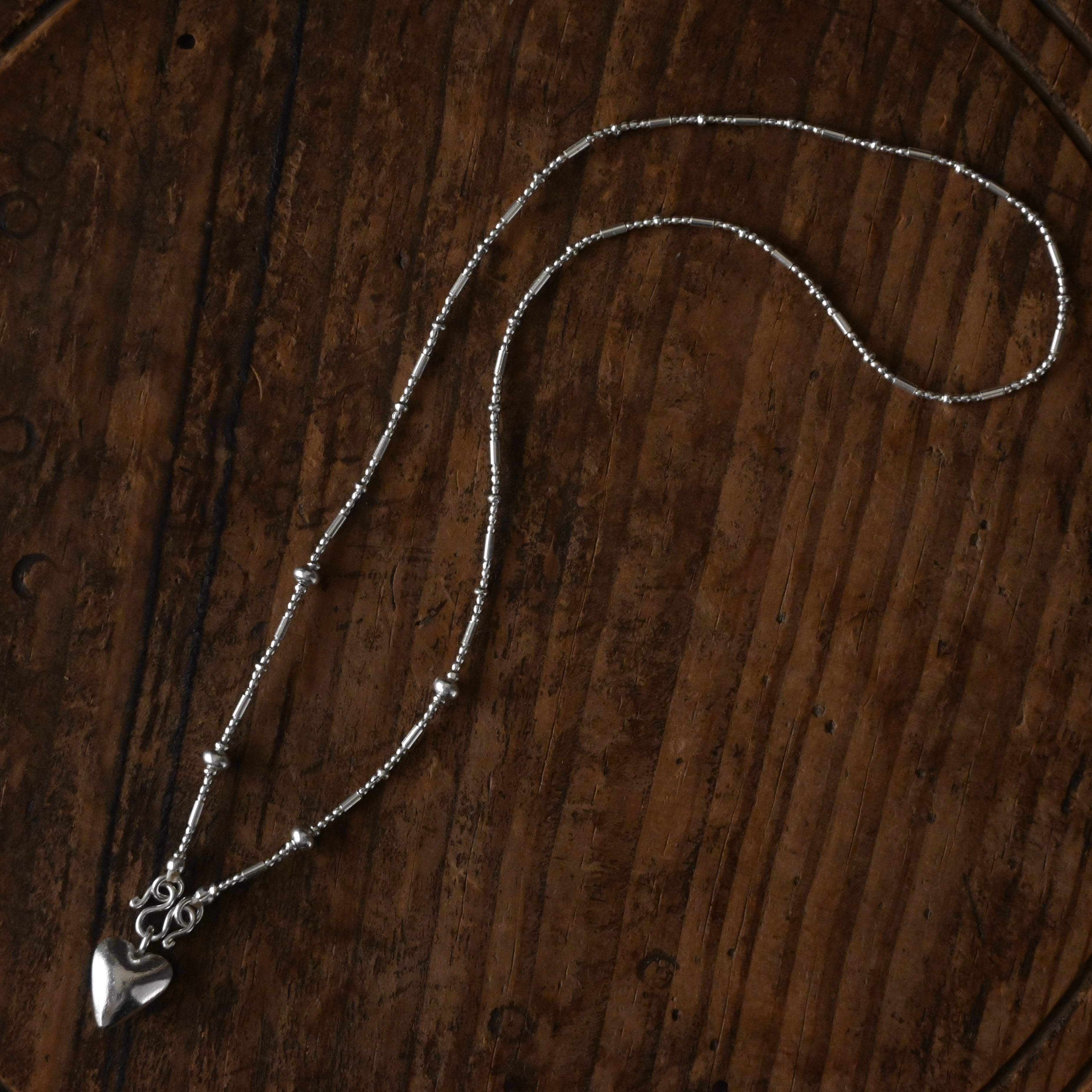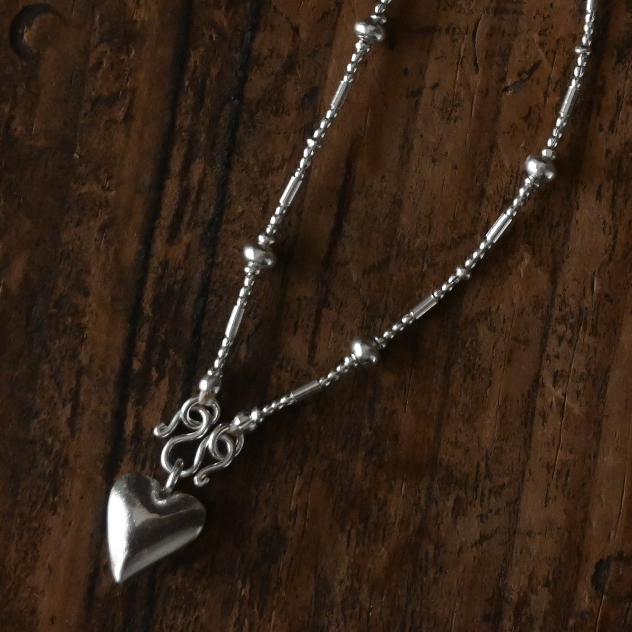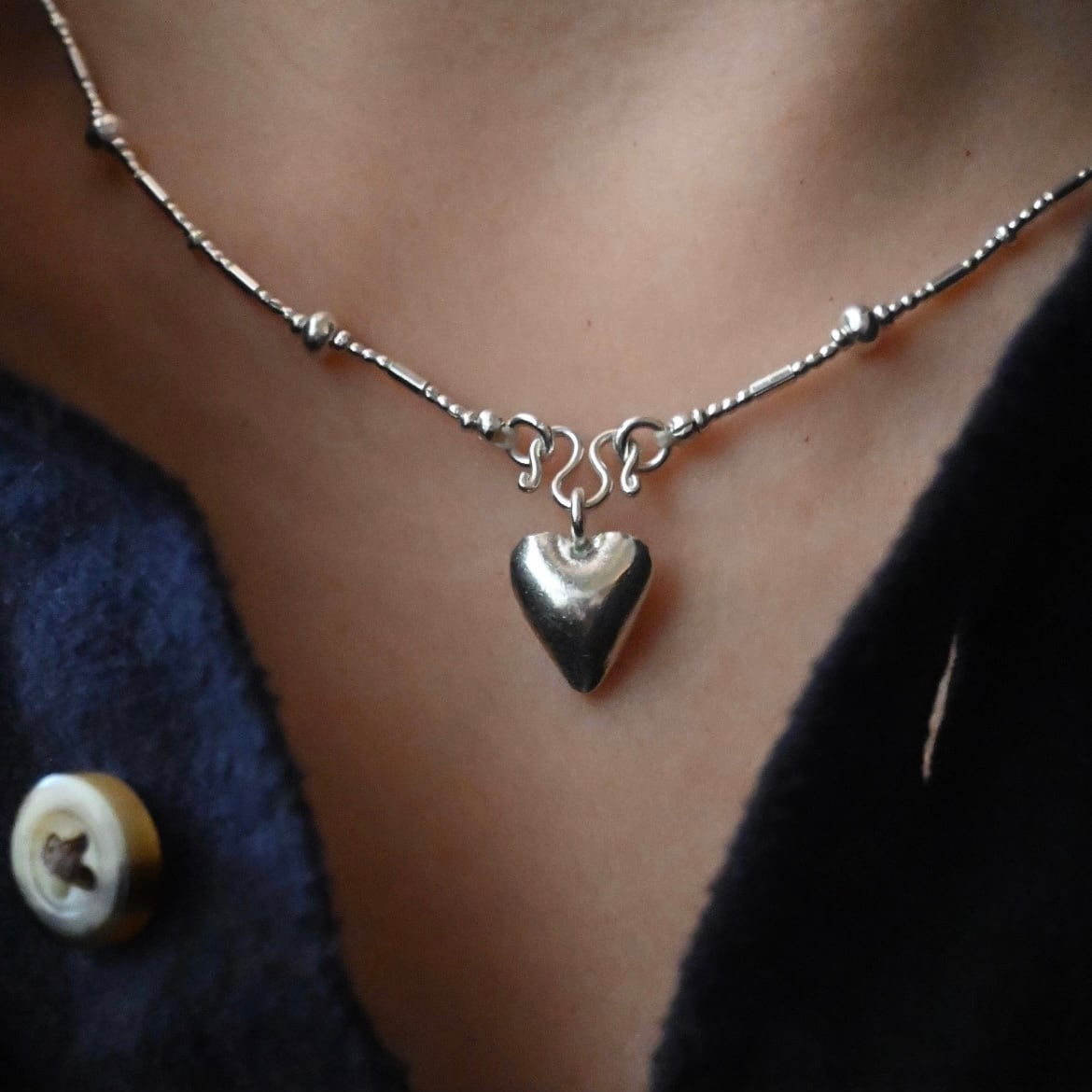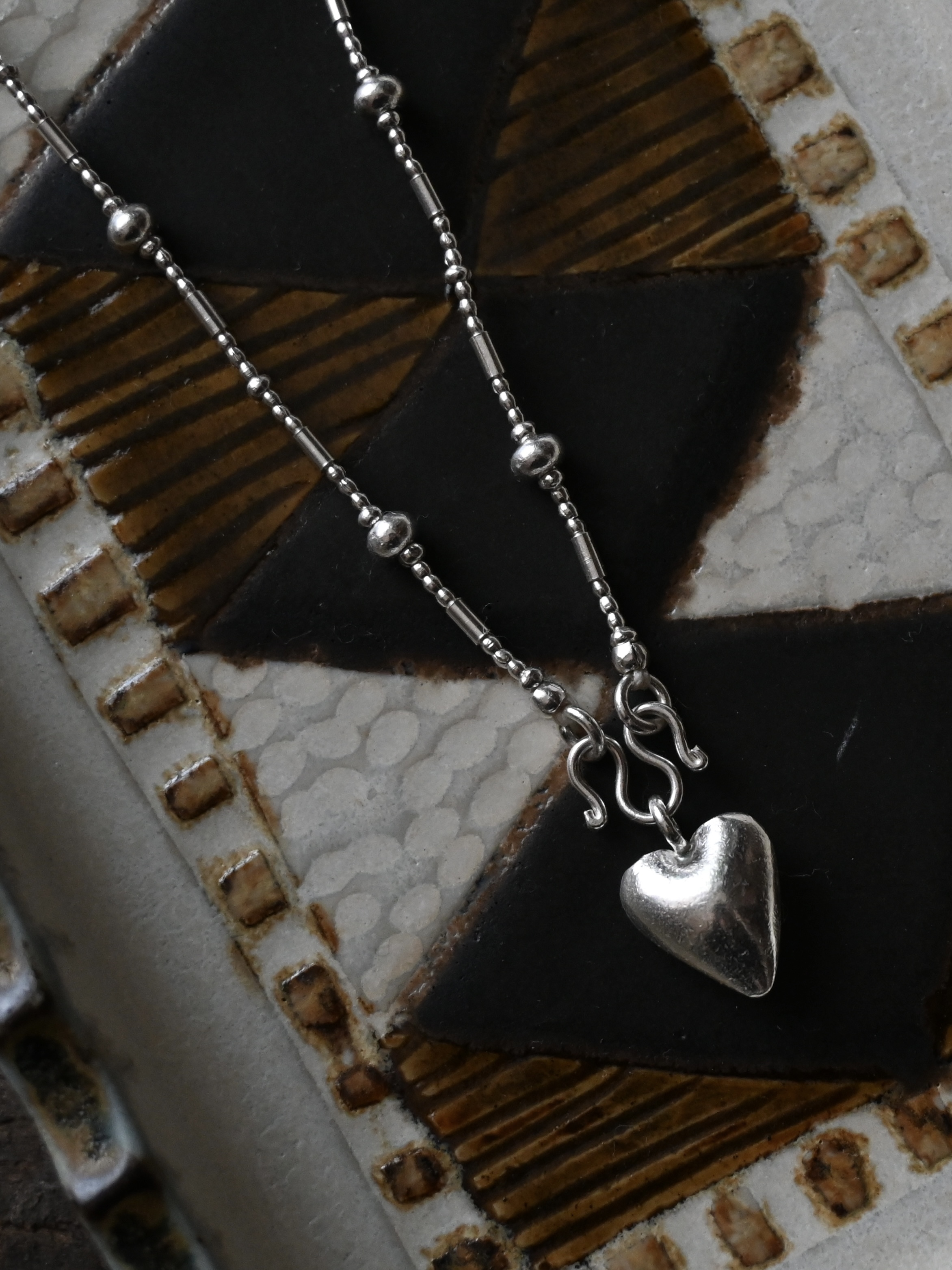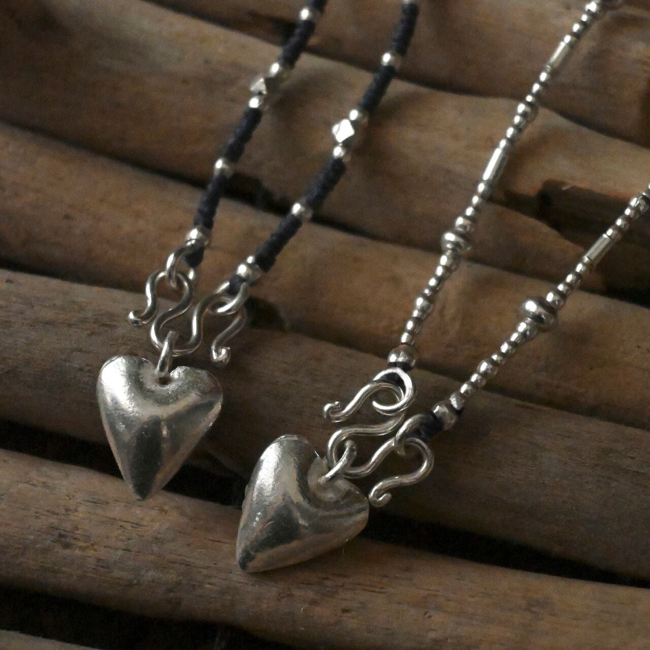 同じ村の工房で作られた、ぷっくりとしたハートのチャームがアクセントに。