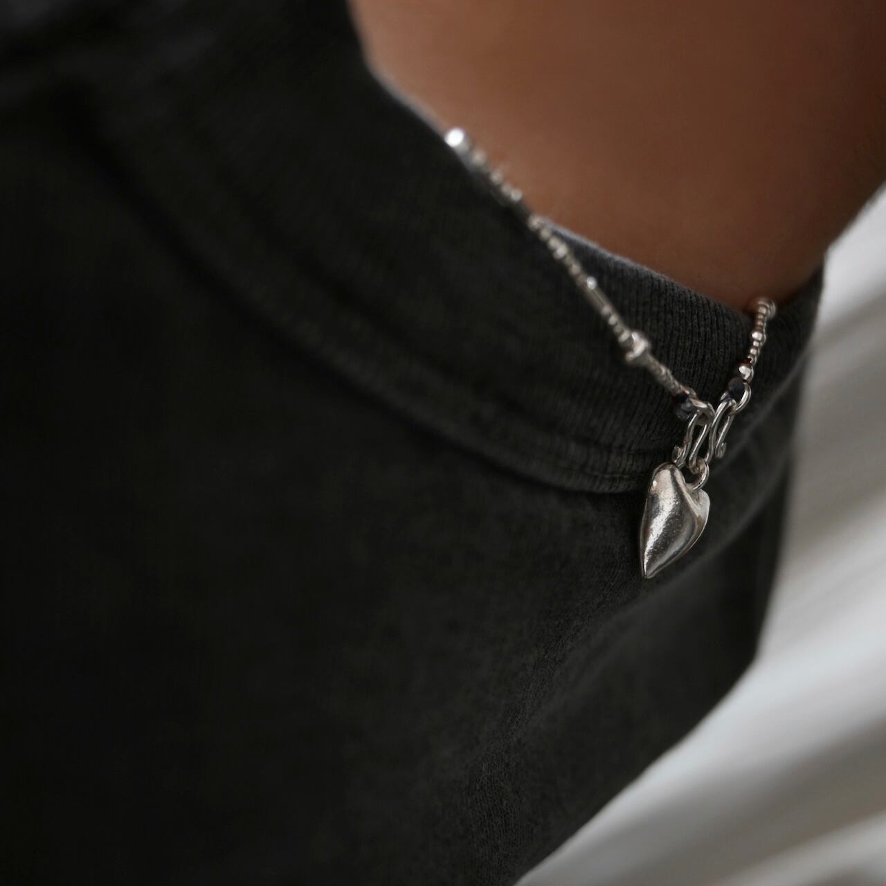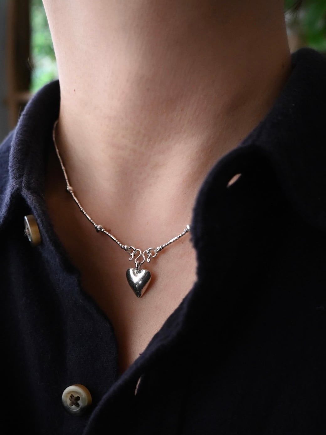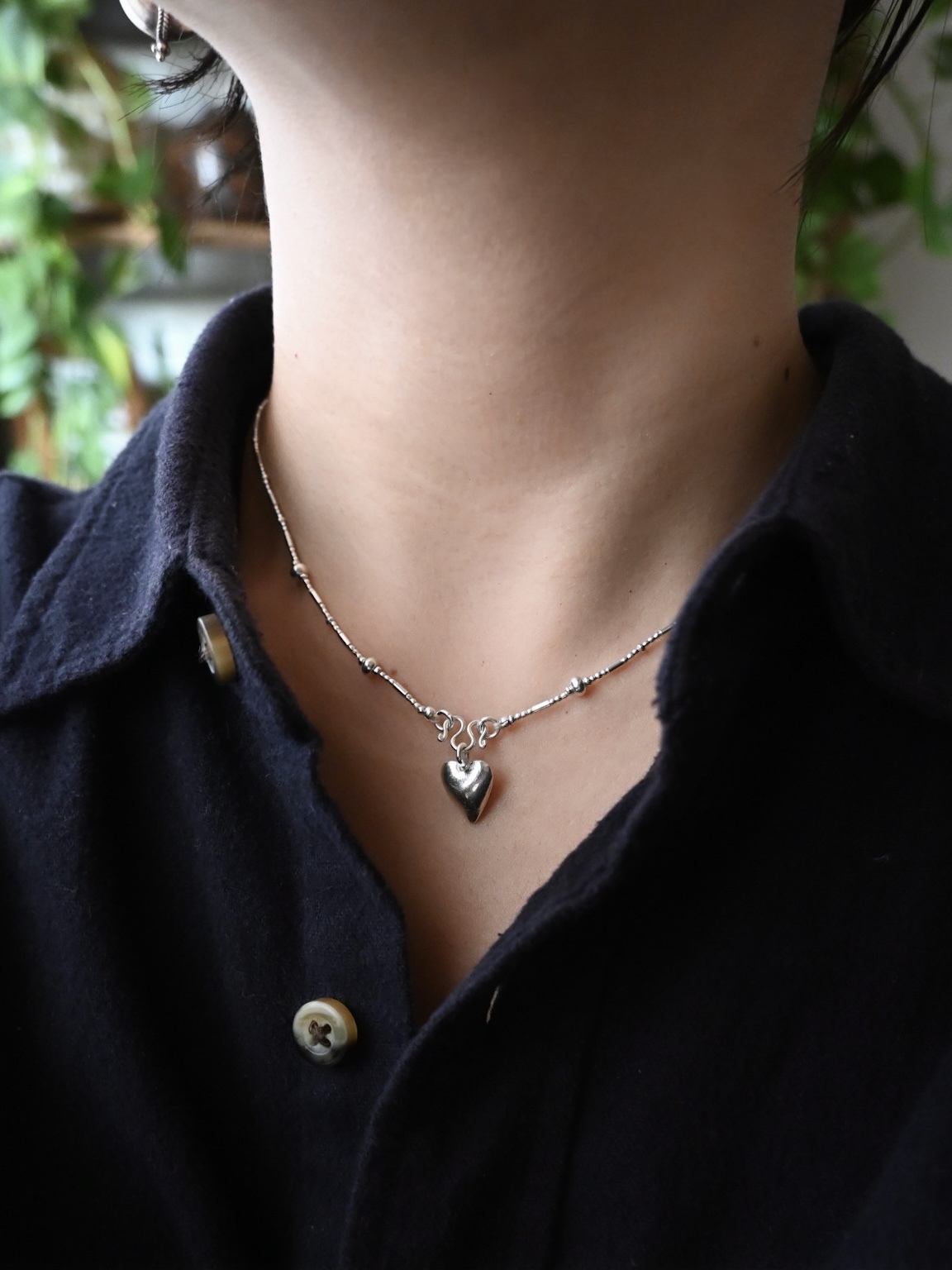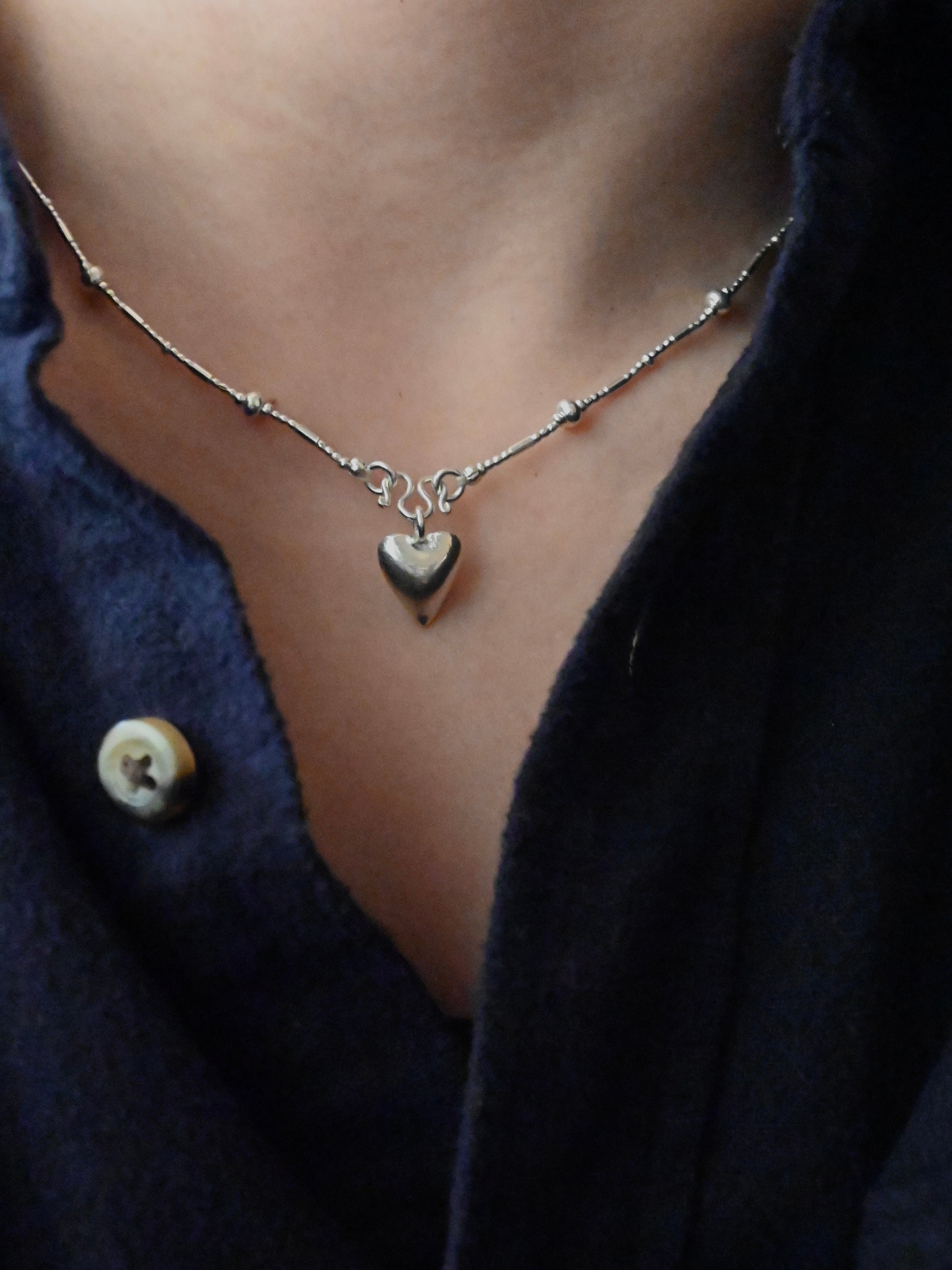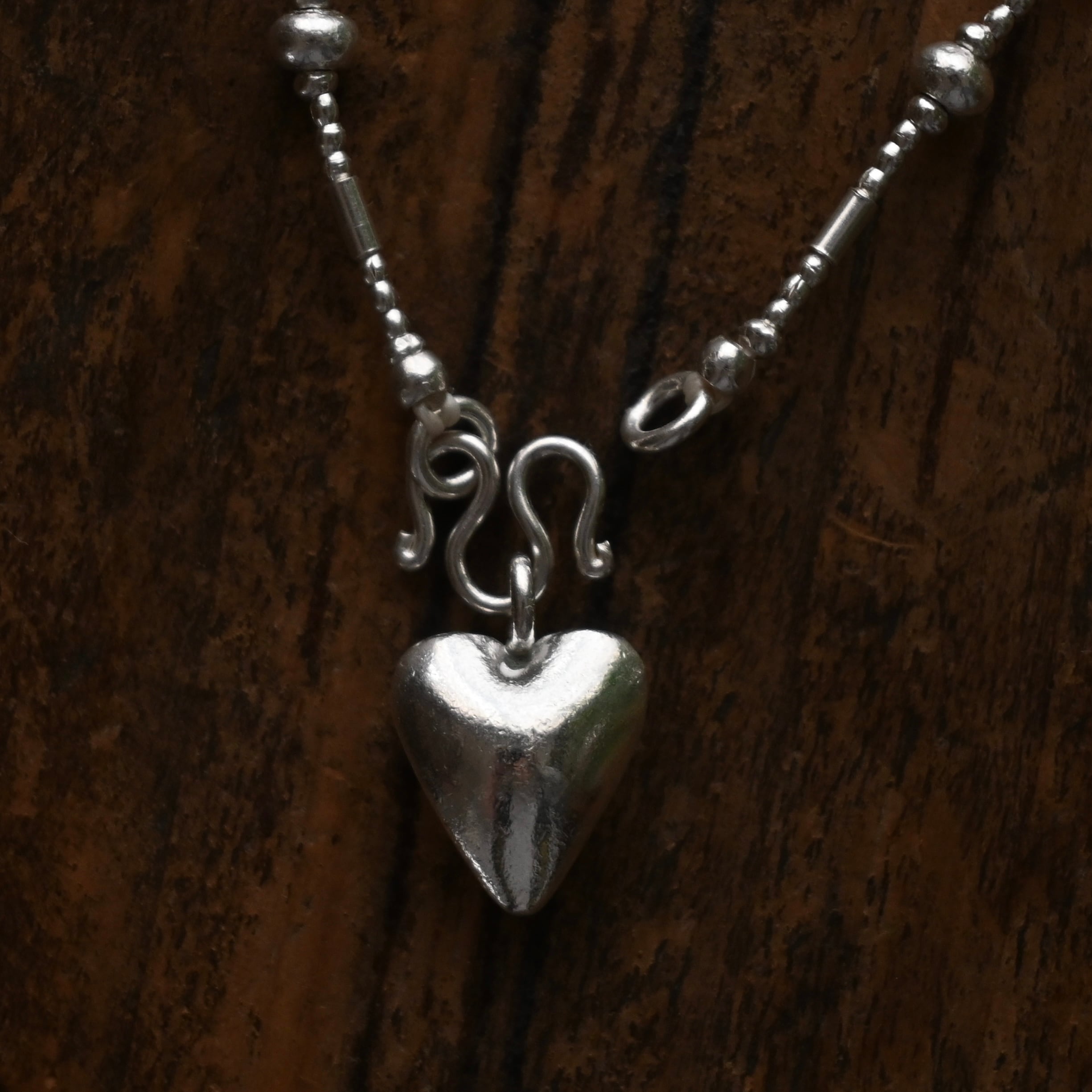 同じ村の工房で作られた、ぷっくりとしたハートのチャームがアクセントに。