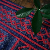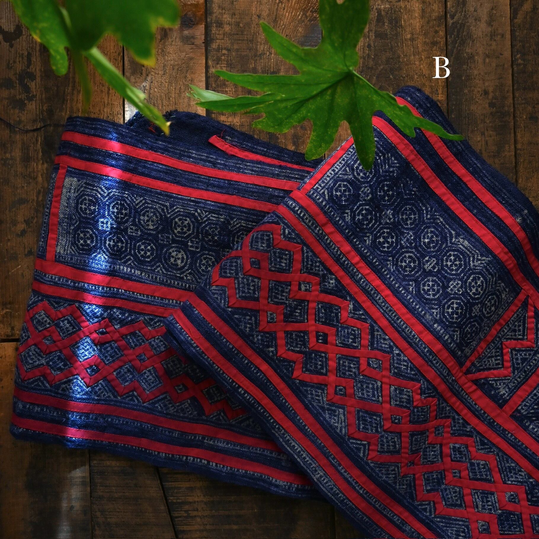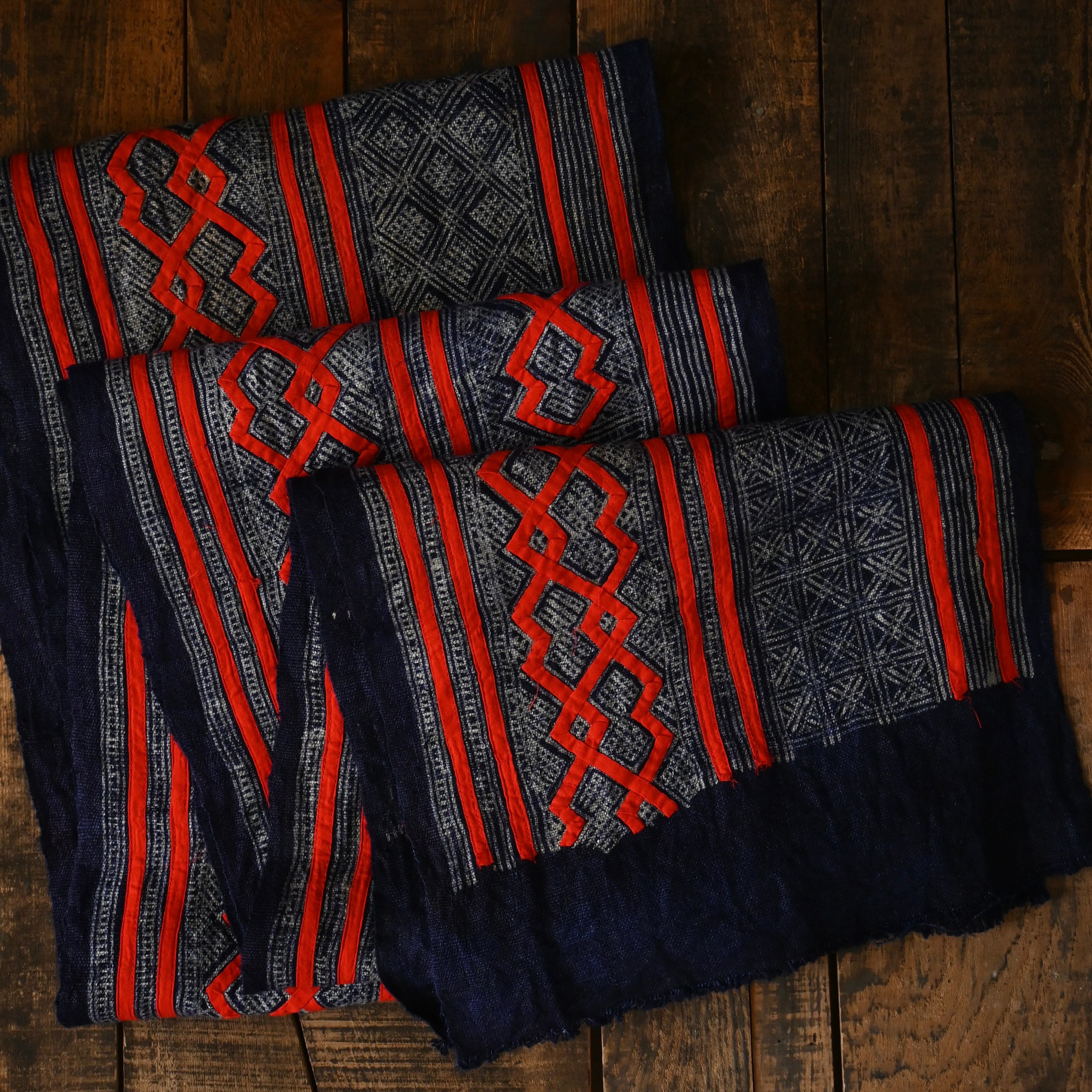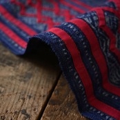 赤いアップリケの刺繍が印象的で、そのままカットして飾ったり、テーブルランナーにしたり、縫ってクッションや巾着バッグにするのも面白そうなファブリック。ざっくりと織られているので、暖簾にするのも良さそうです。
