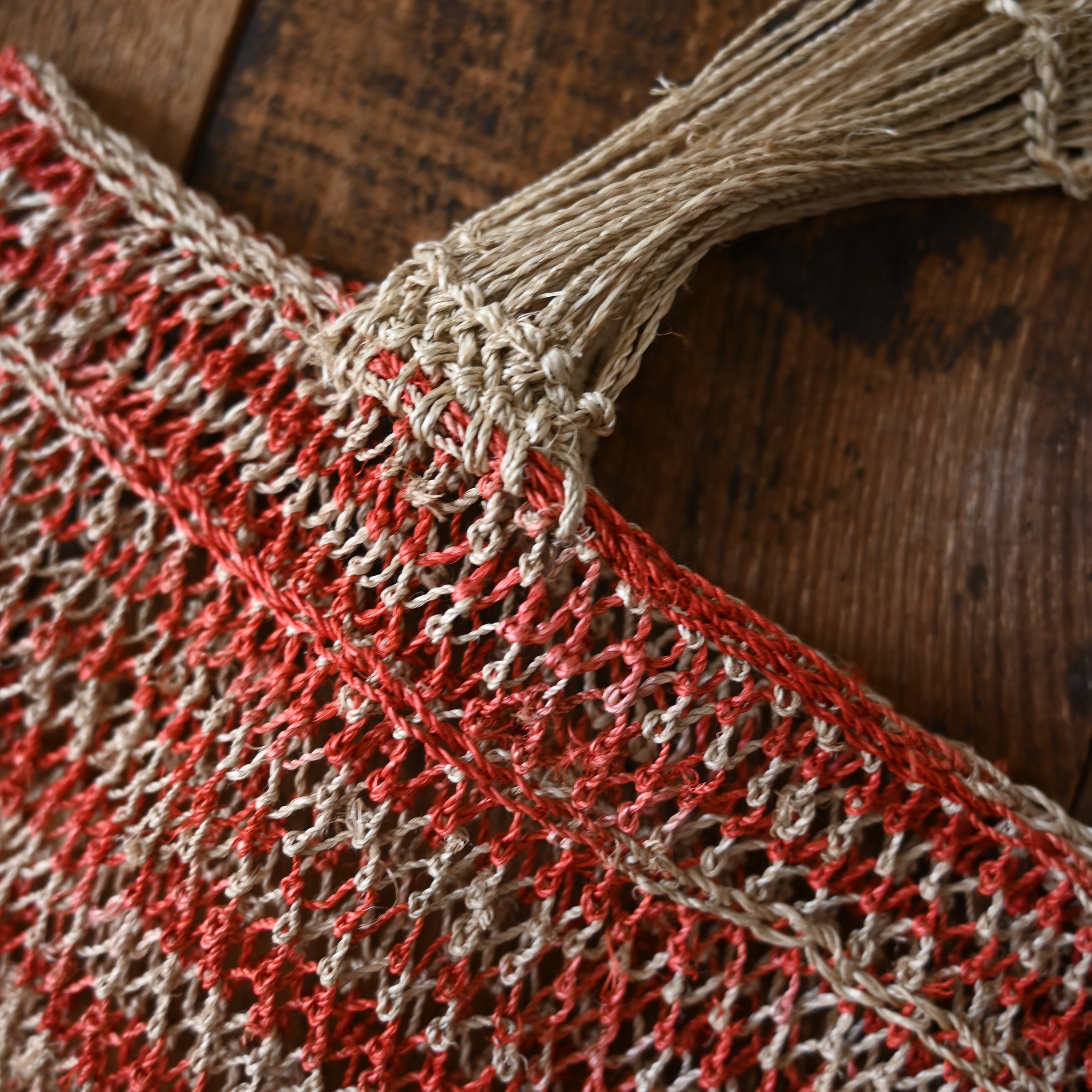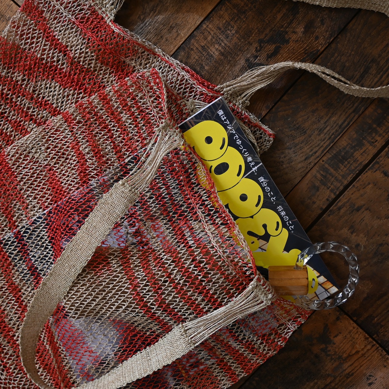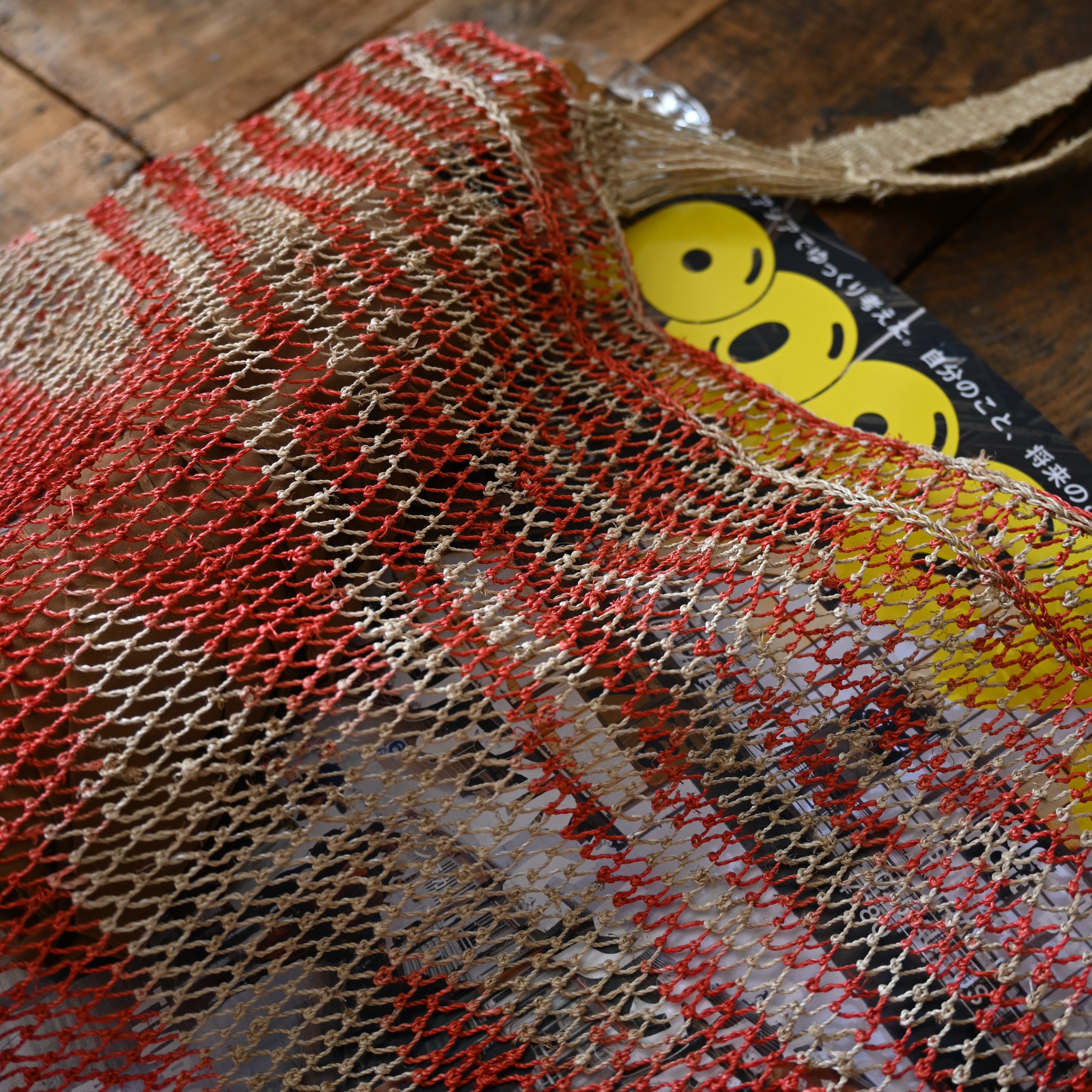 編み目は一目ずつ結ばれていますが、ほつれや切れが気になる場合は、天然繊維の糸で結び直してお使い下さい。