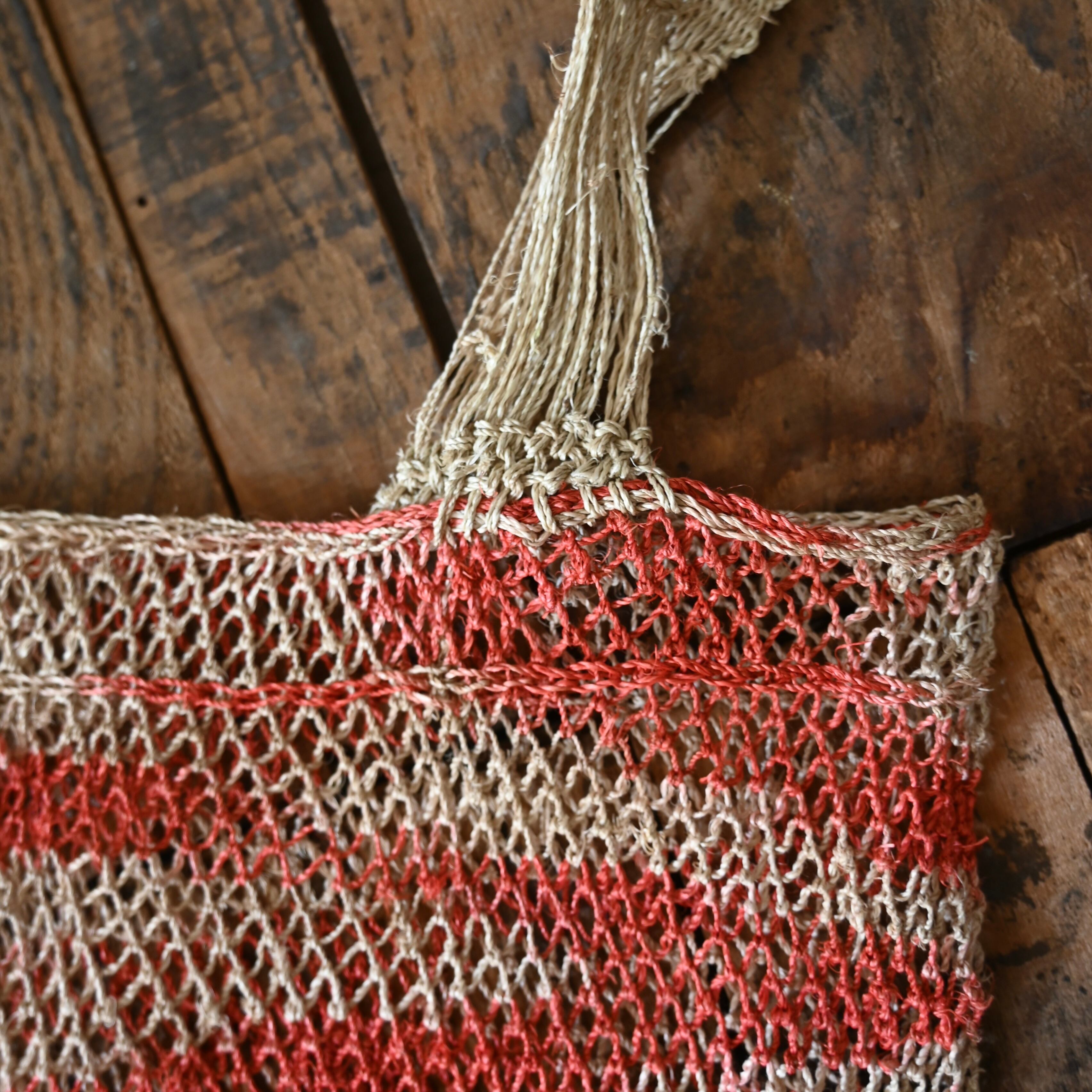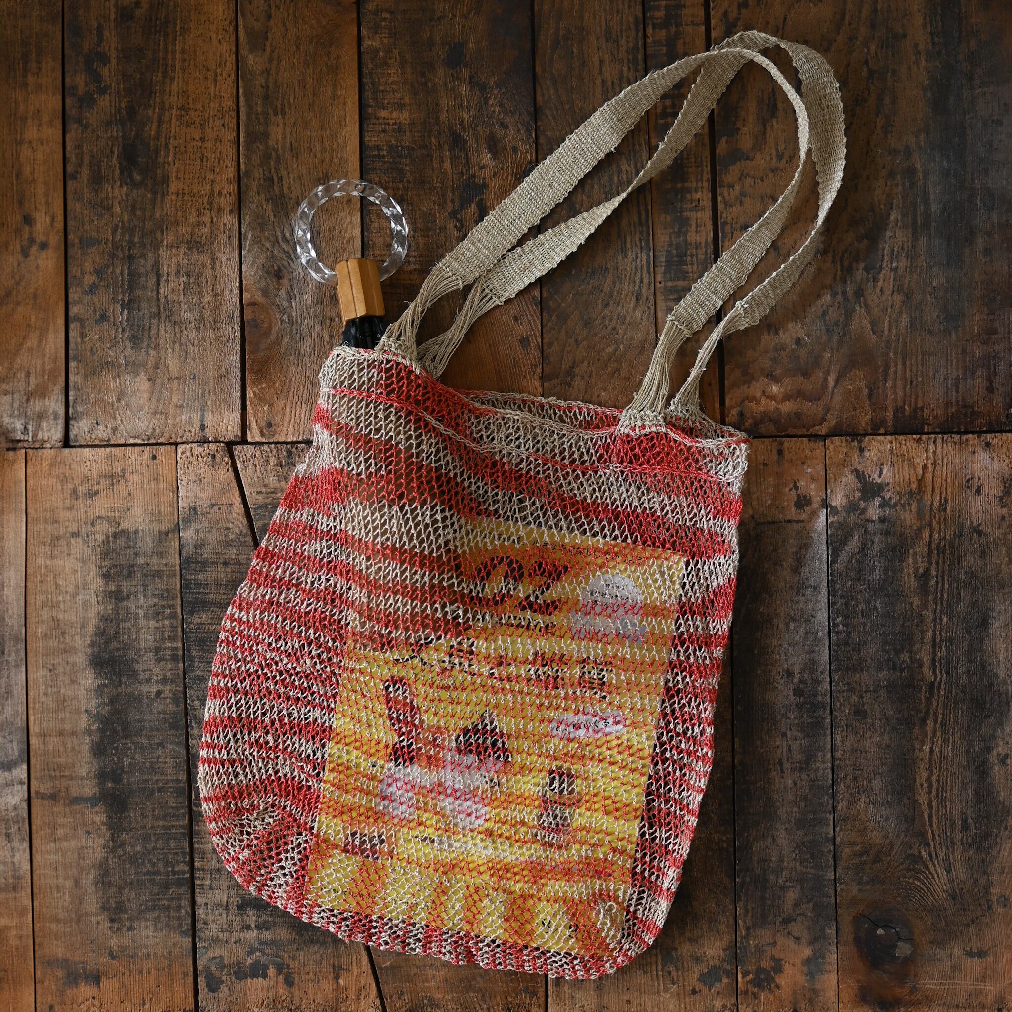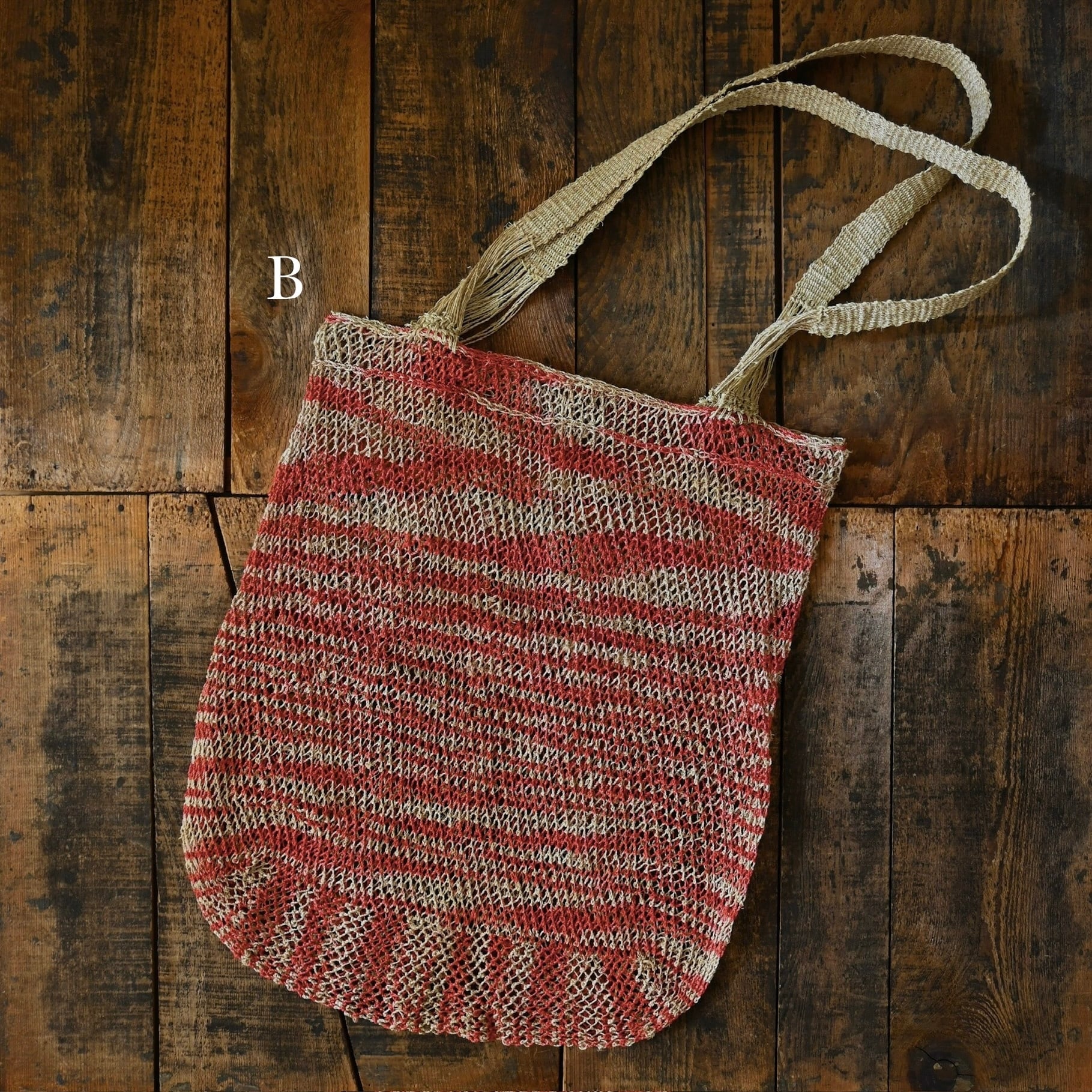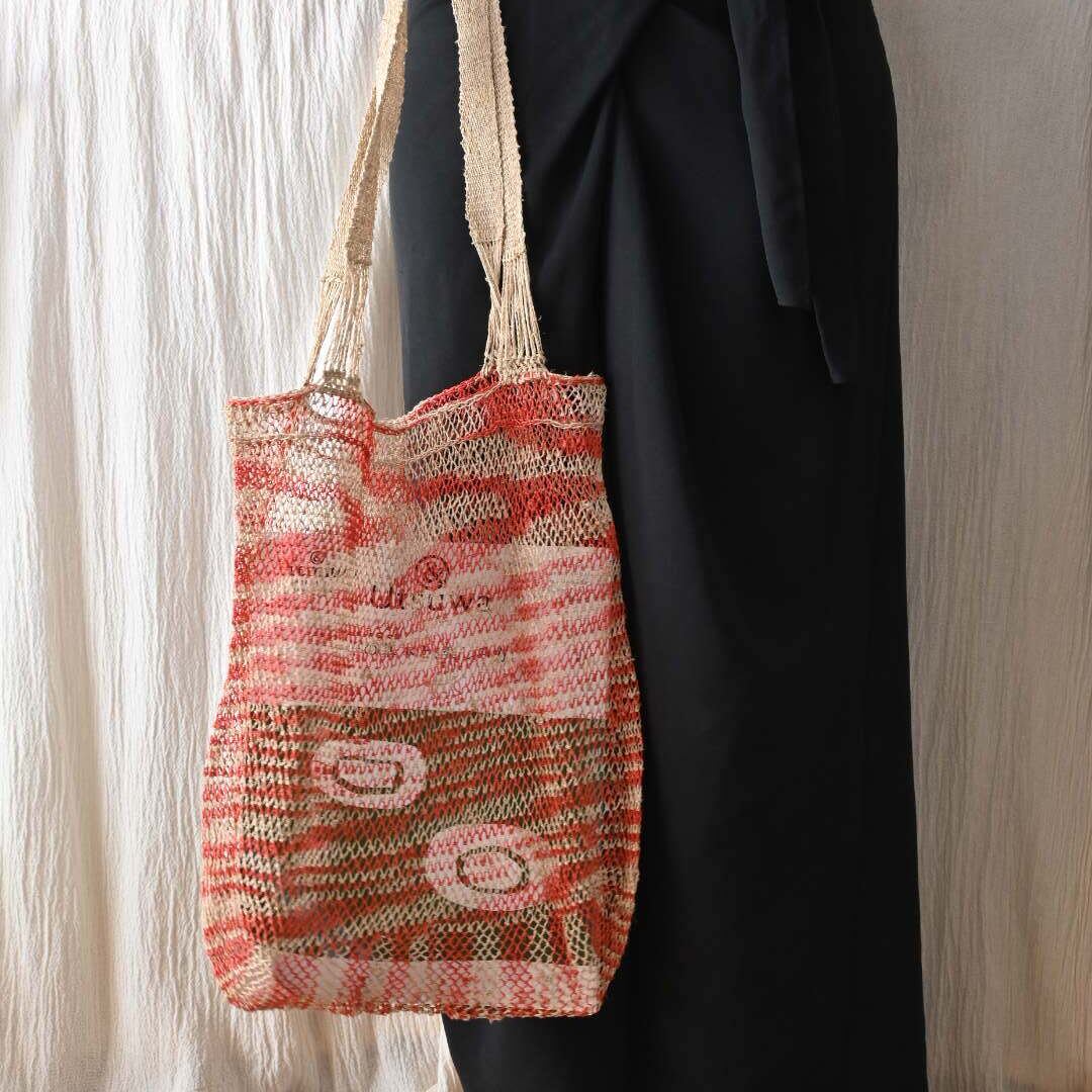 編み目は一目ずつ結ばれていますが、ほつれや切れが気になる場合は、天然繊維の糸で結び直してお使い下さい。