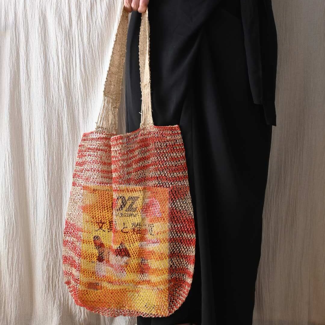 バッグをひとつ編み上げるだけでも、何度も同じ作業を繰り返し、時間をかけてやっと出来上がる希少な一品です。