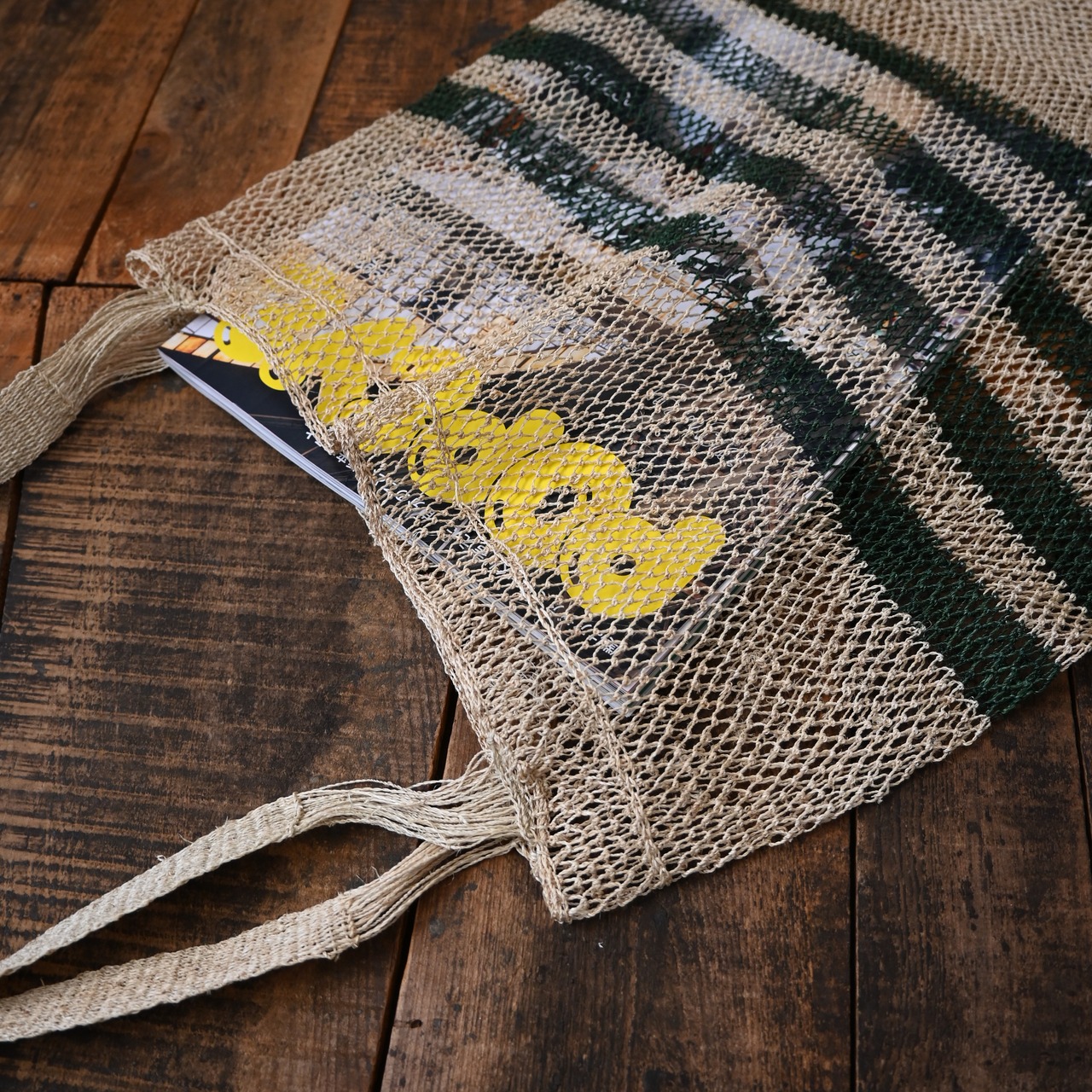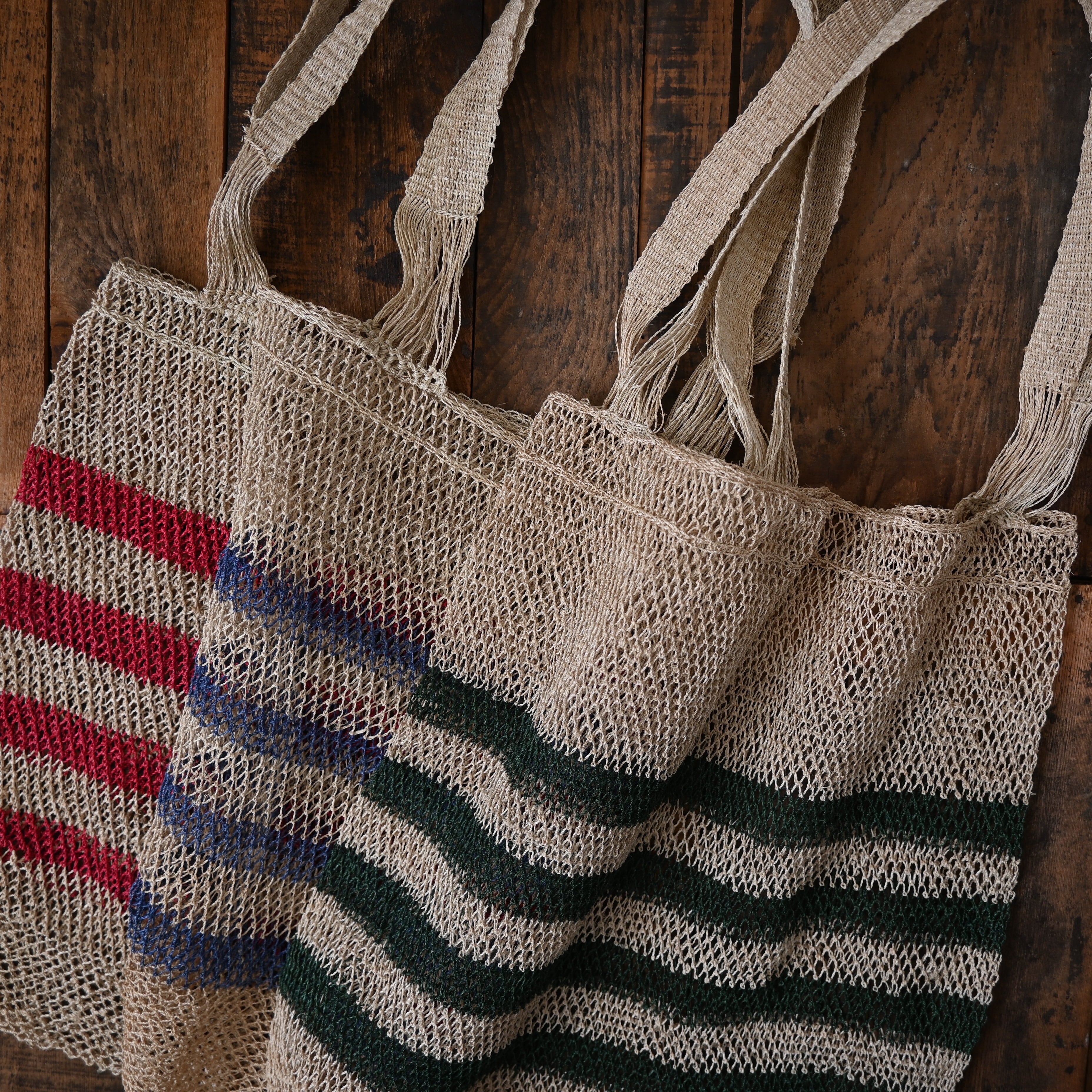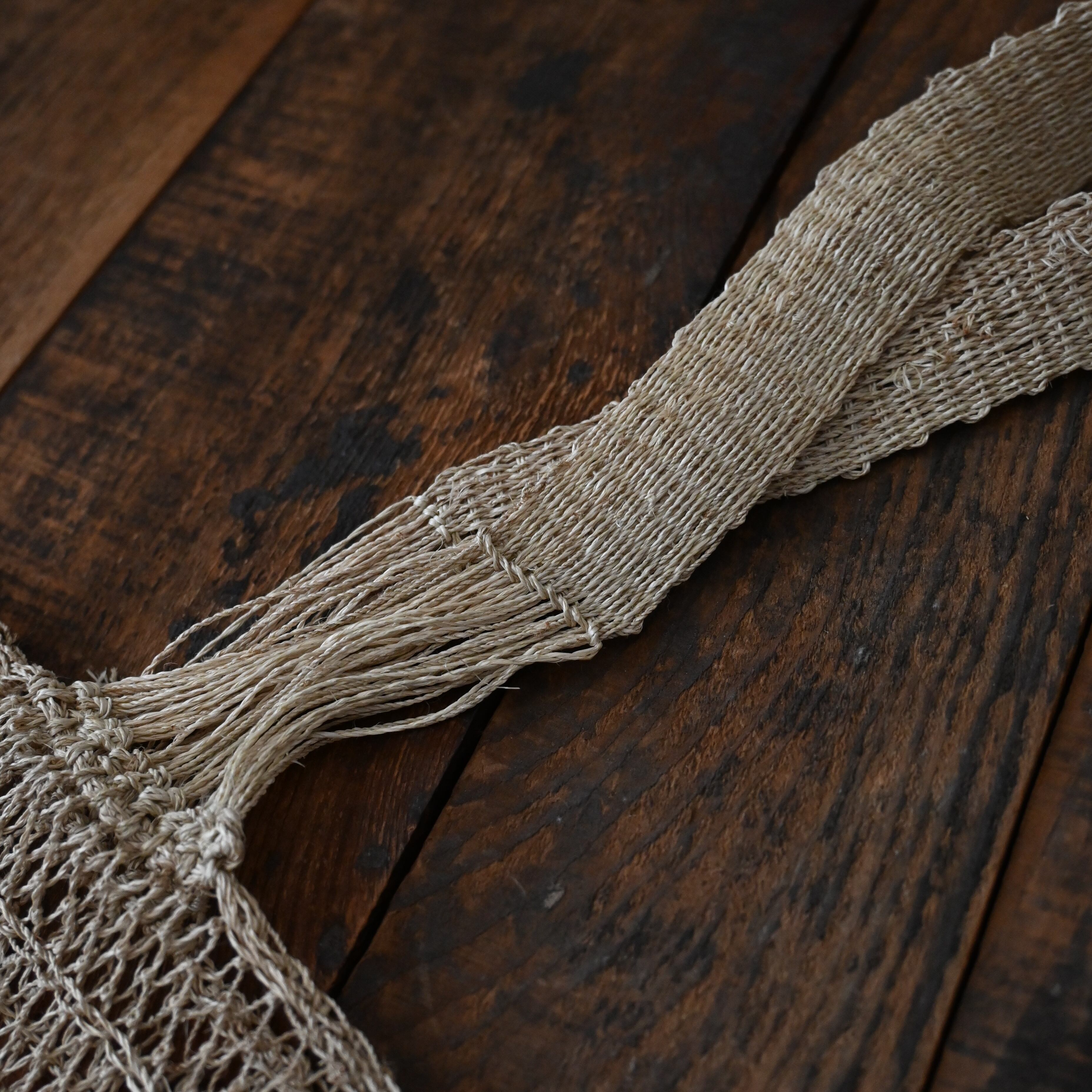 編み目は一目ずつ結ばれていますが、ほつれや切れが気になる場合は、天然繊維の糸で結び直してお使い下さい。