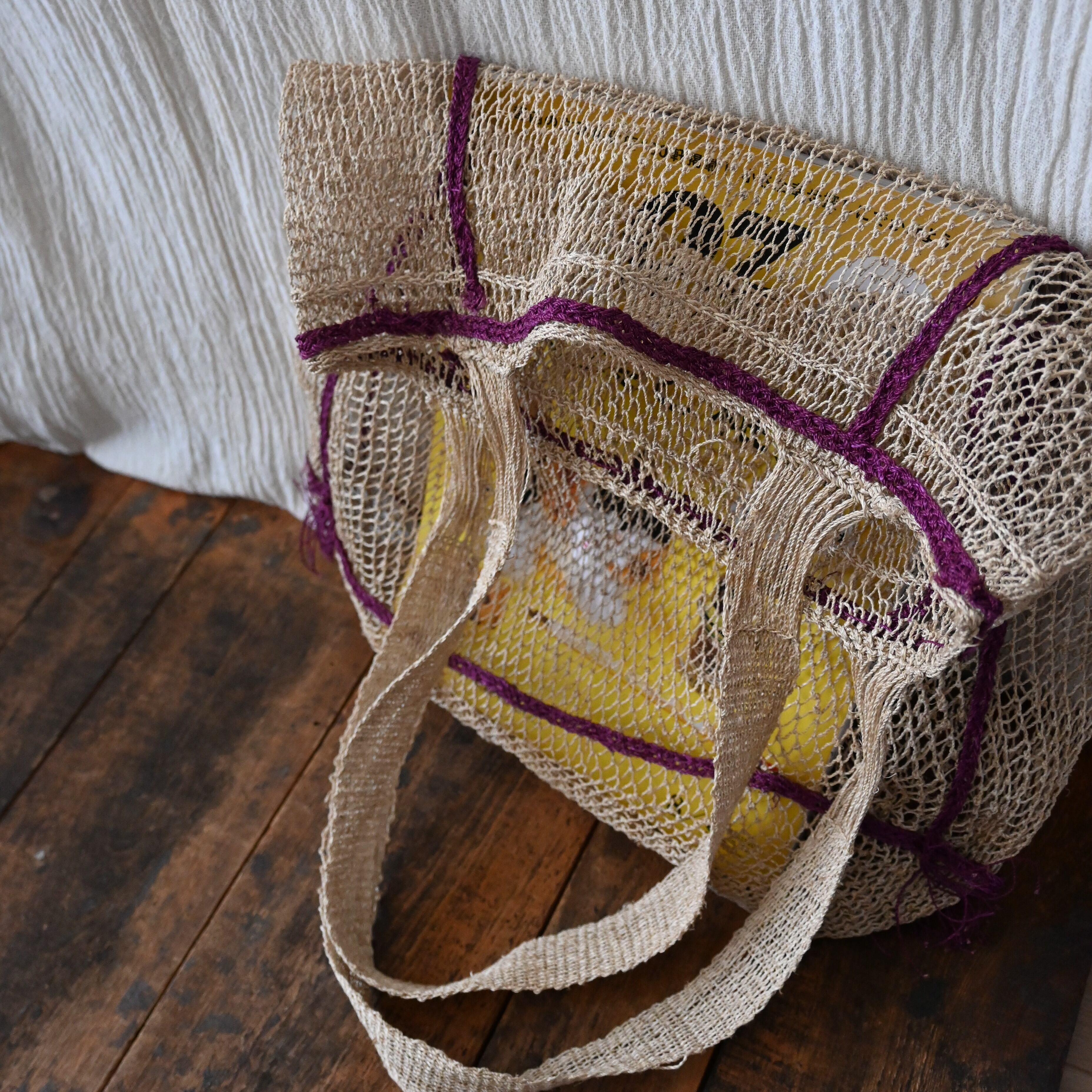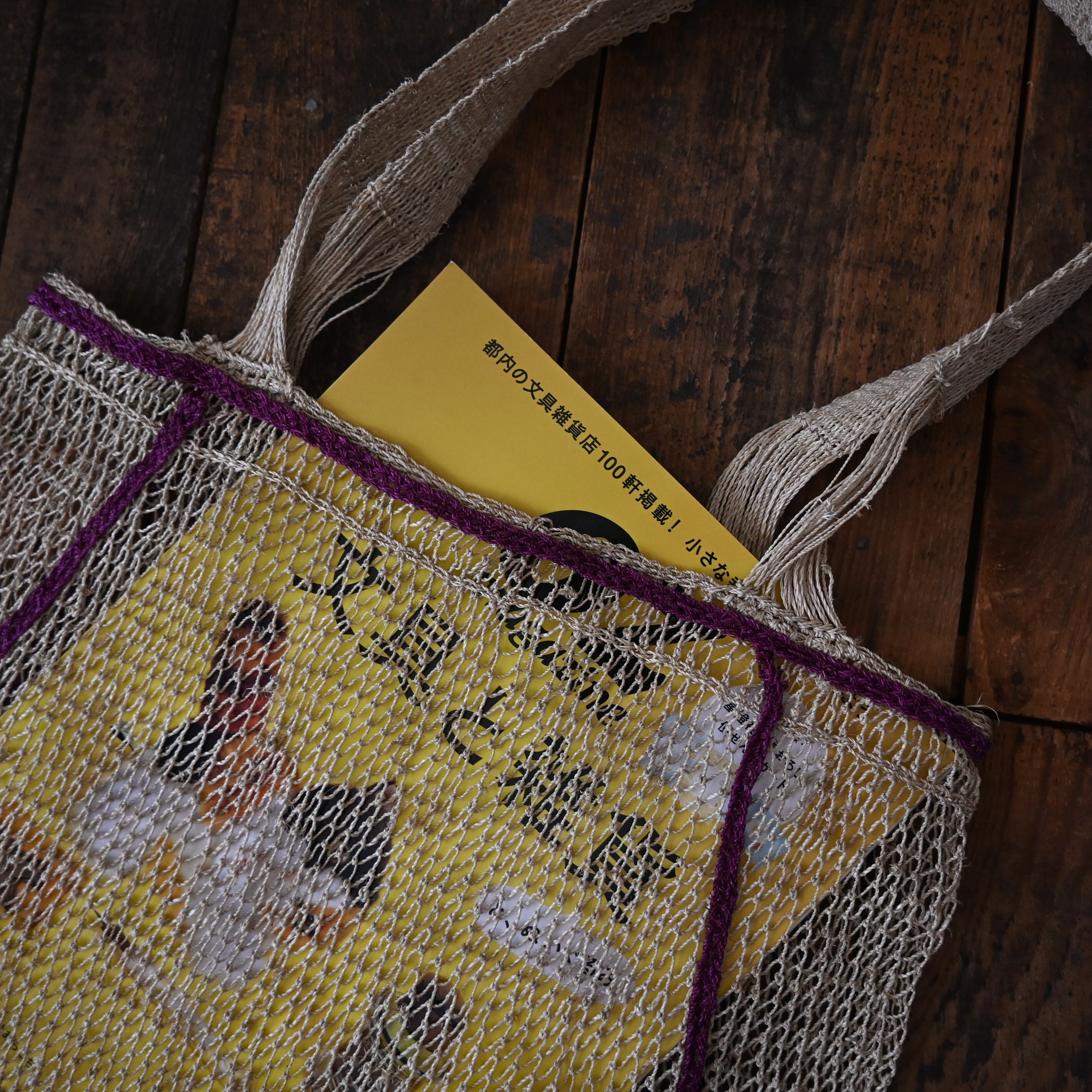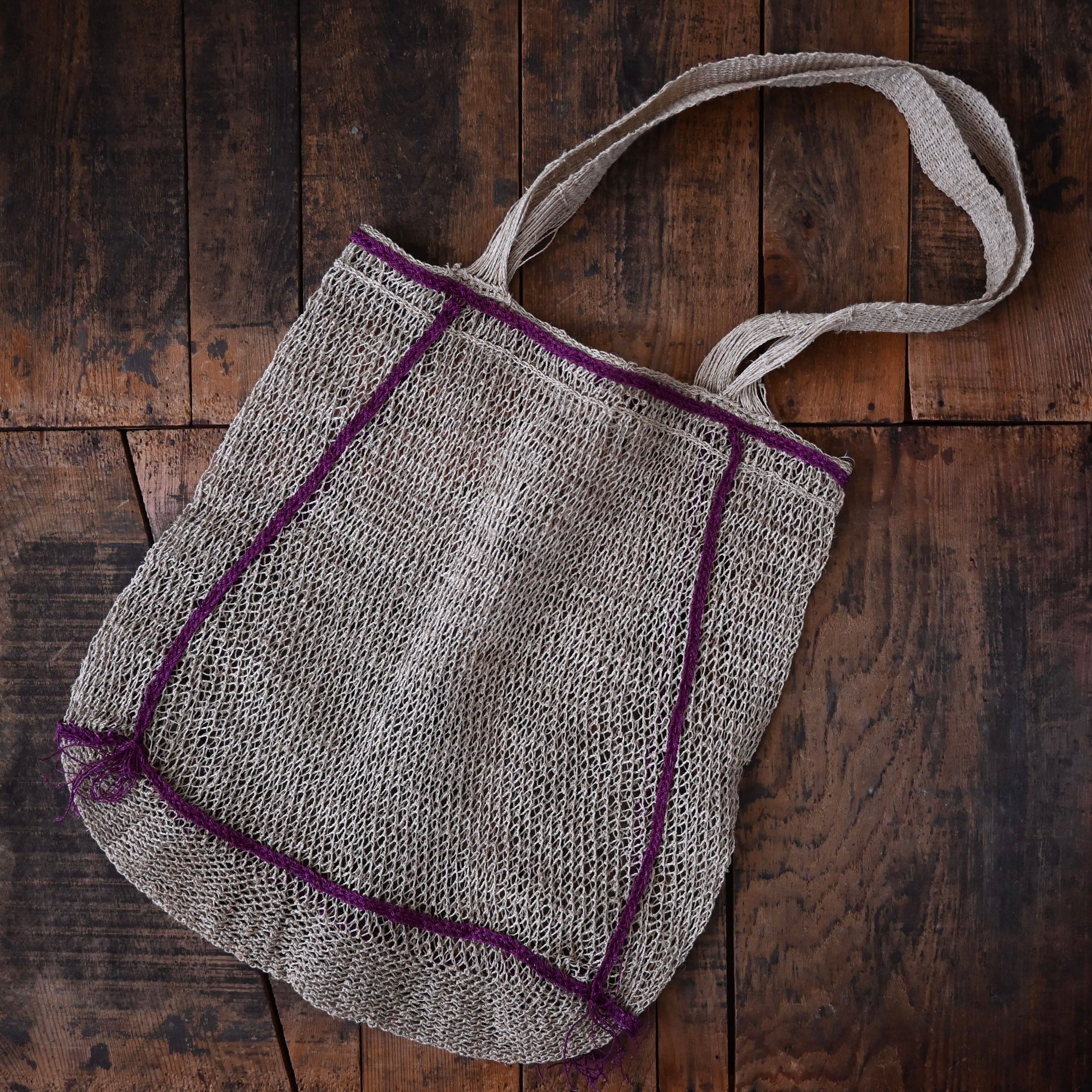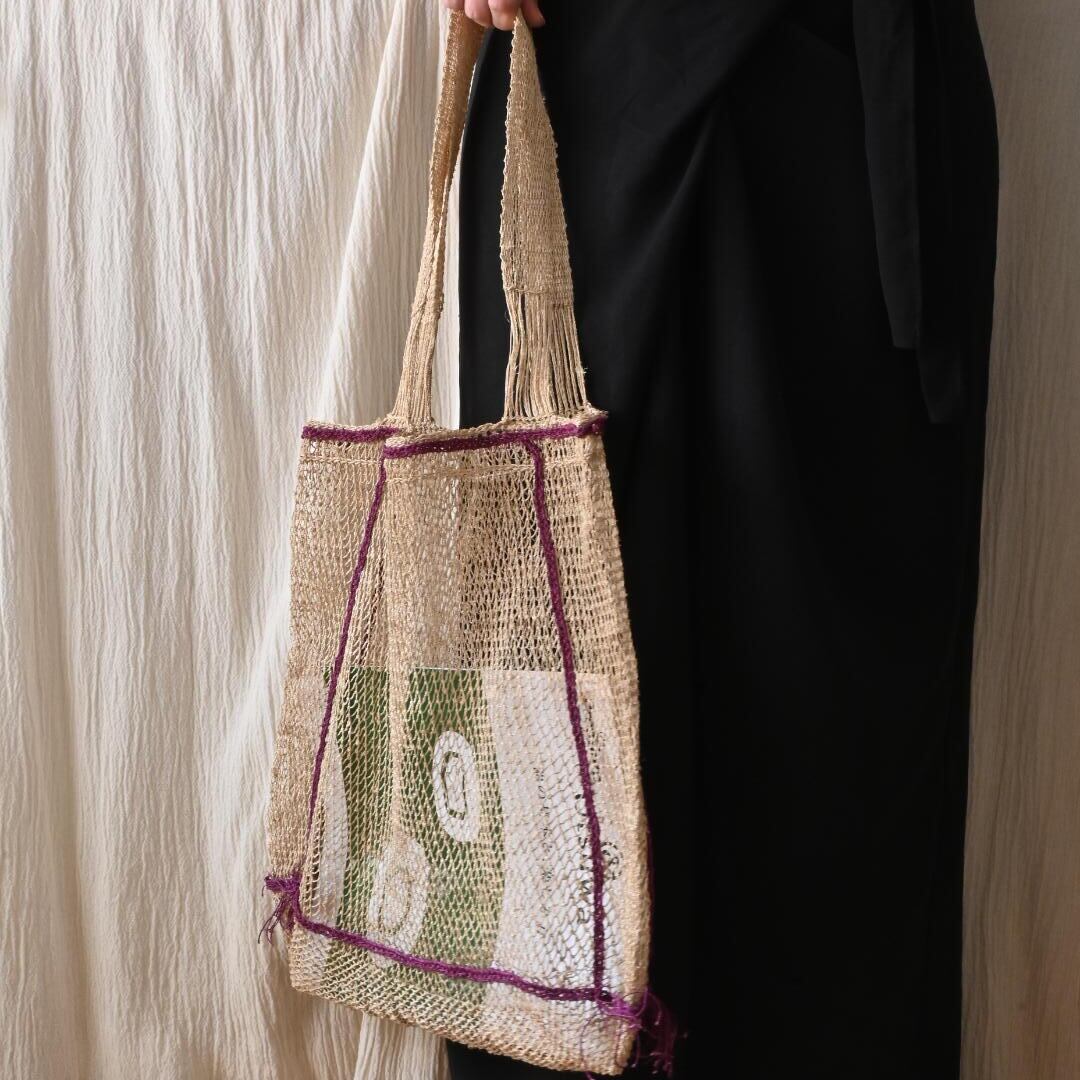 編み目は一目ずつ結ばれていますが、ほつれや切れが気になる場合は、天然繊維の糸で結び直してお使い下さい。