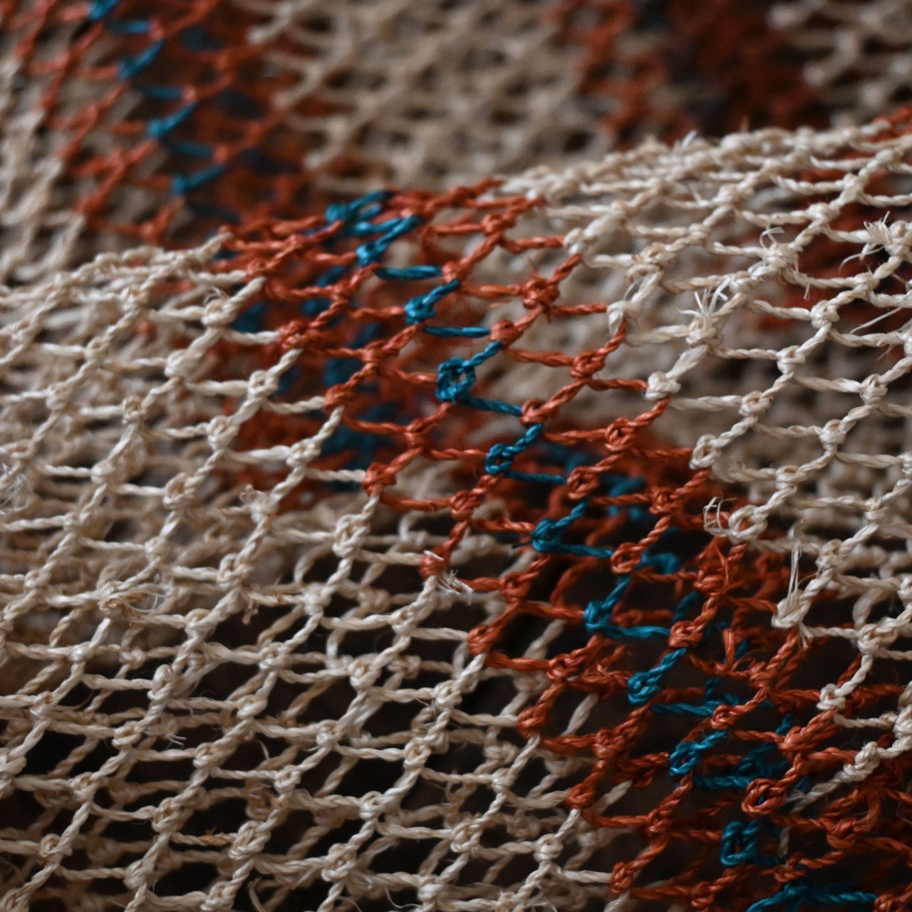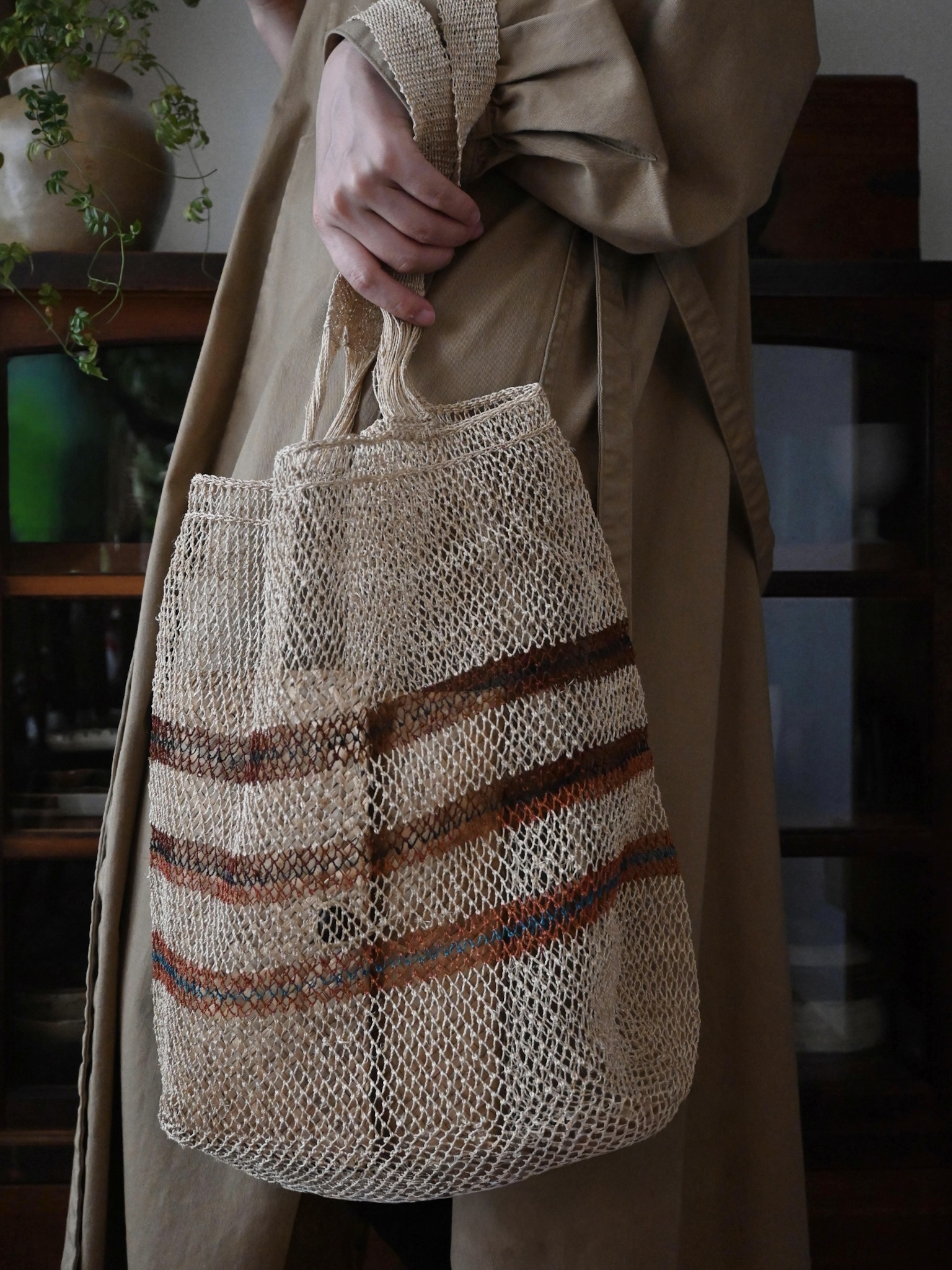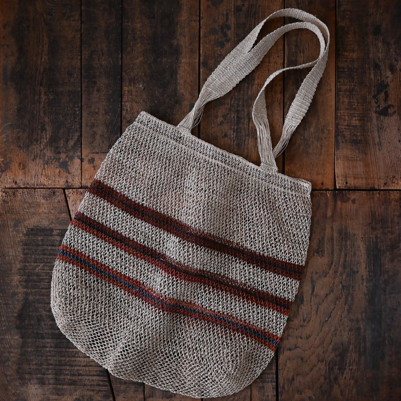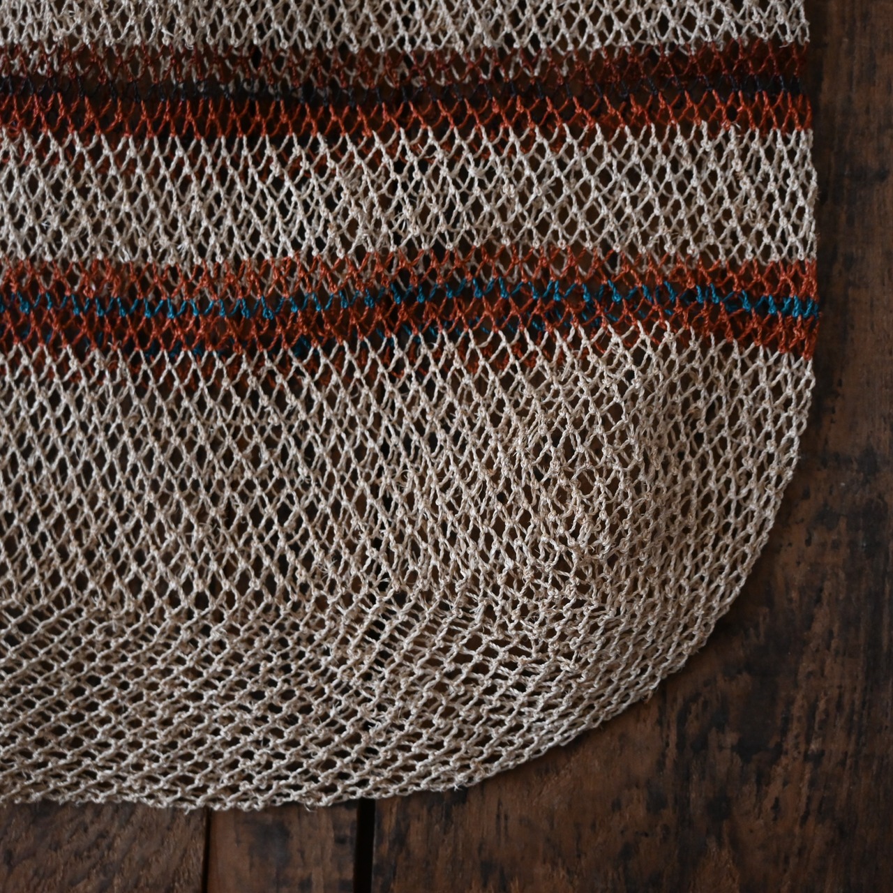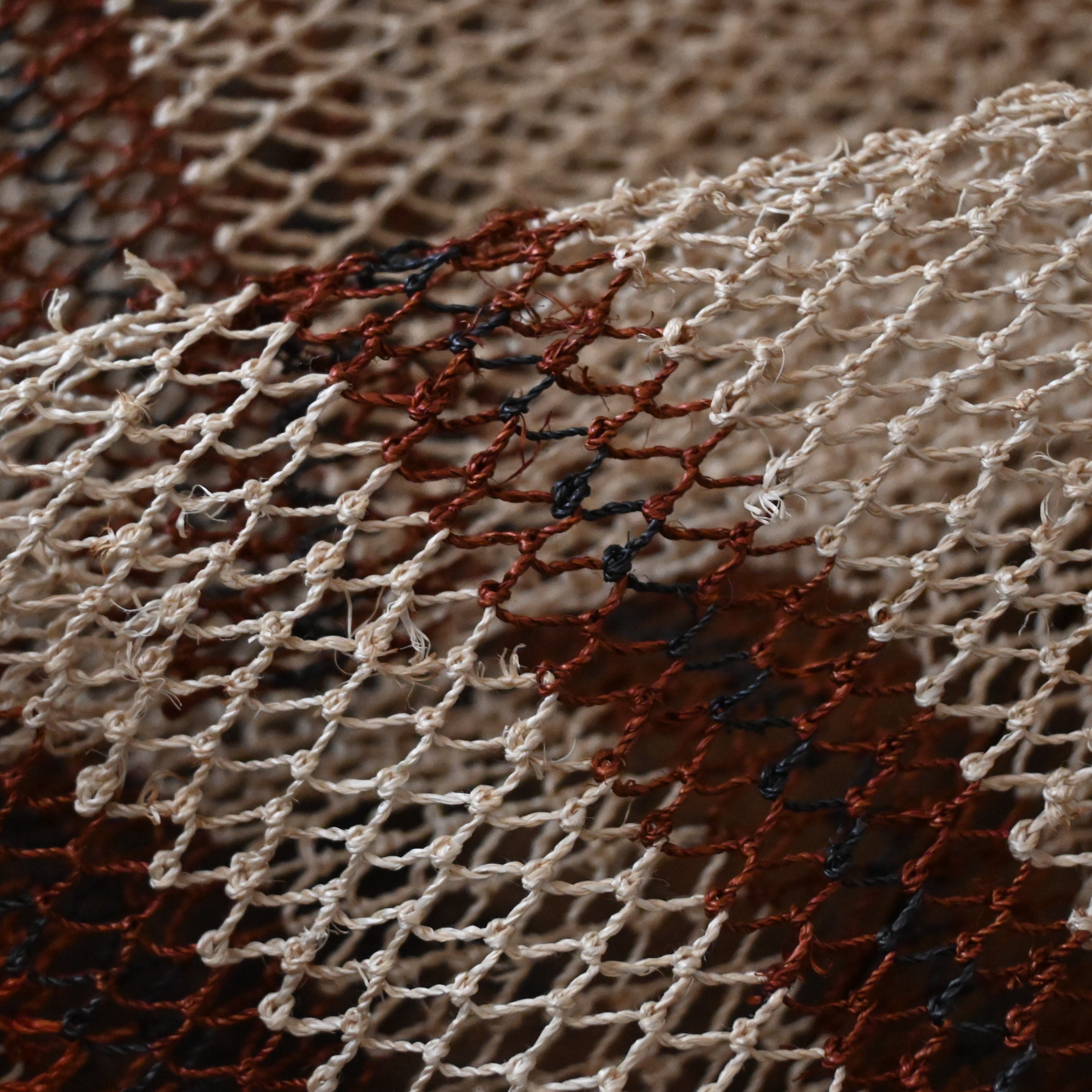 編み目は一目ずつ結ばれていますが、ほつれや切れが気になる場合は、天然繊維の糸で結び直してお使い下さい。