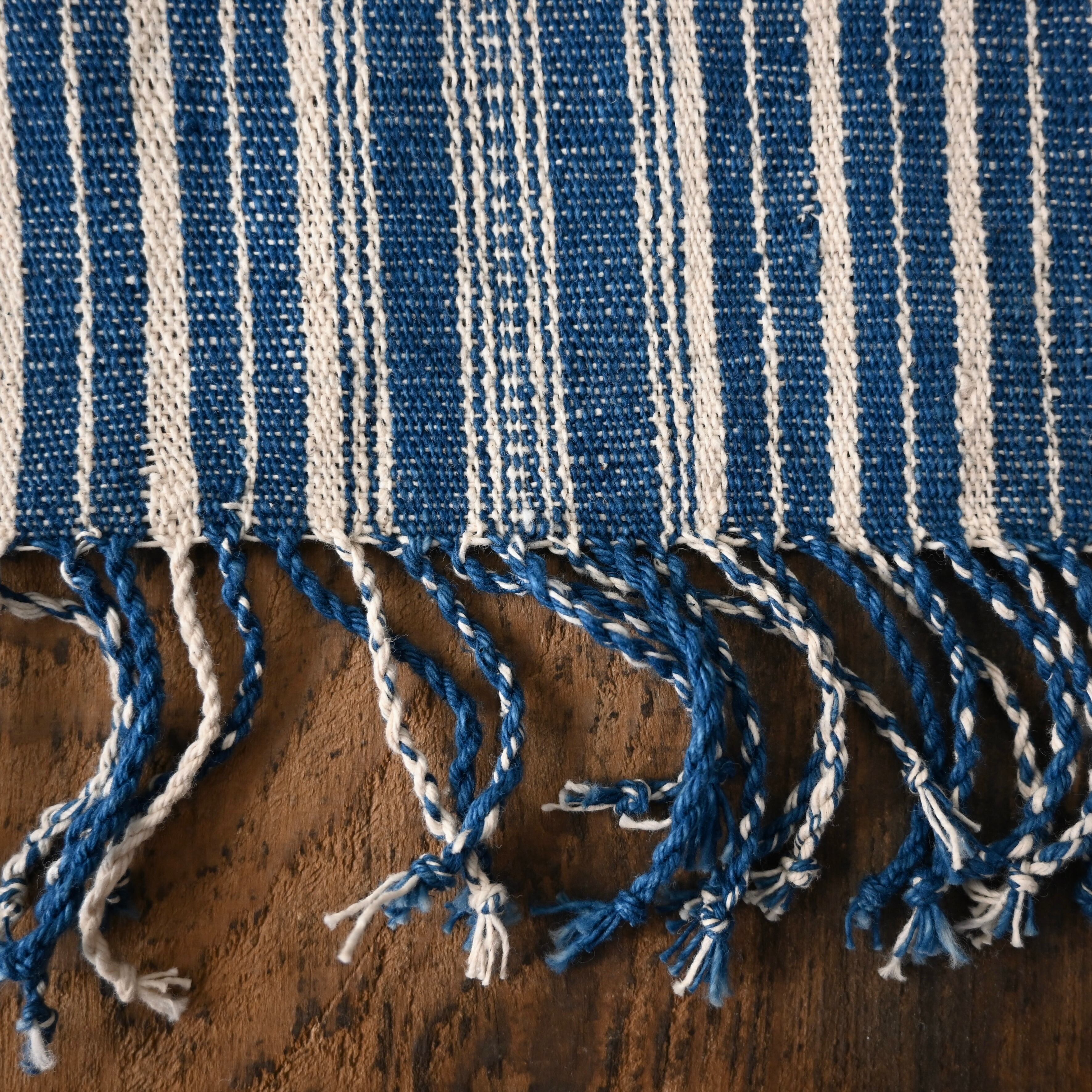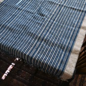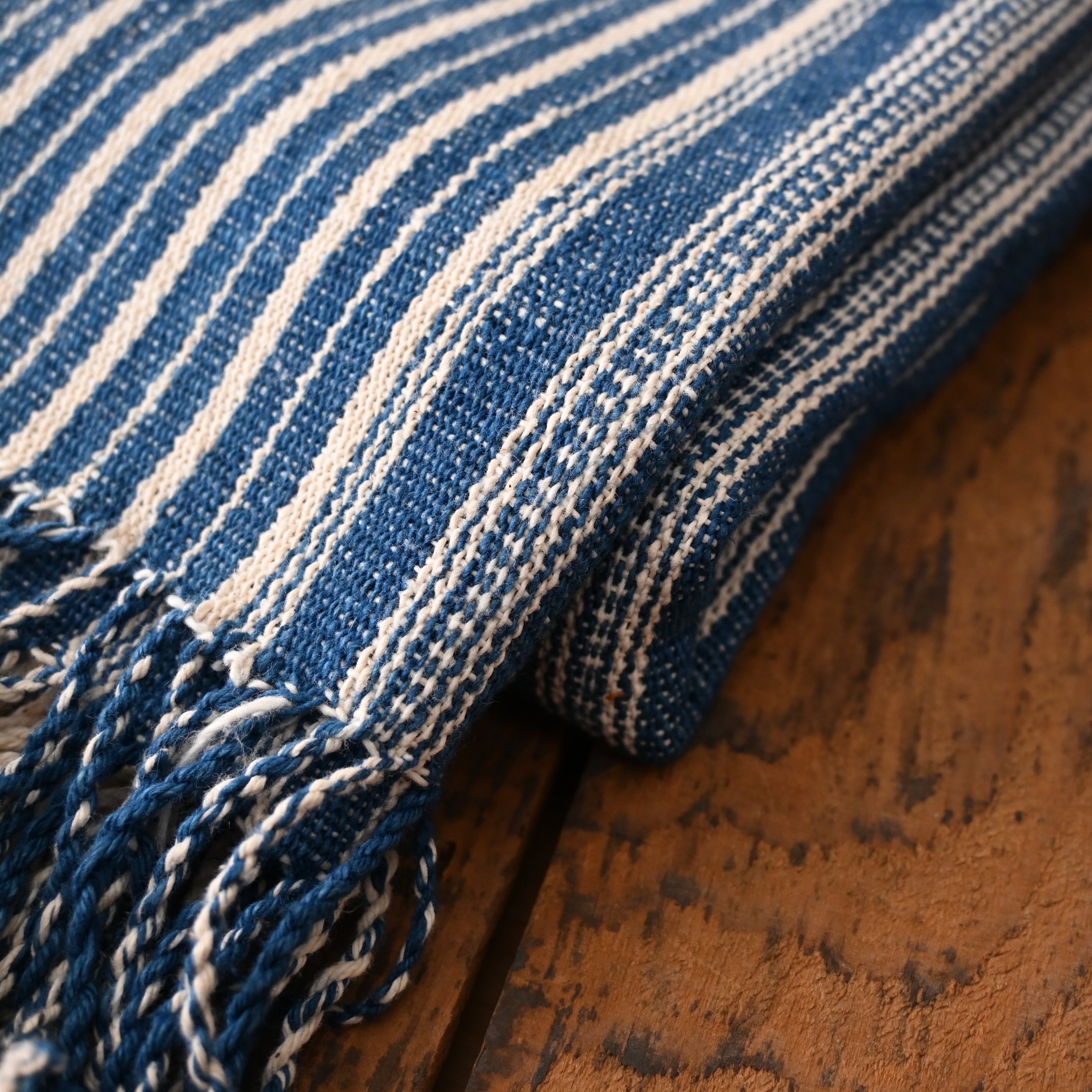 綿から紡いだ糸を藍(青)で染め、それぞれの村で受け継がれてきた伝統的な柄が織られています。