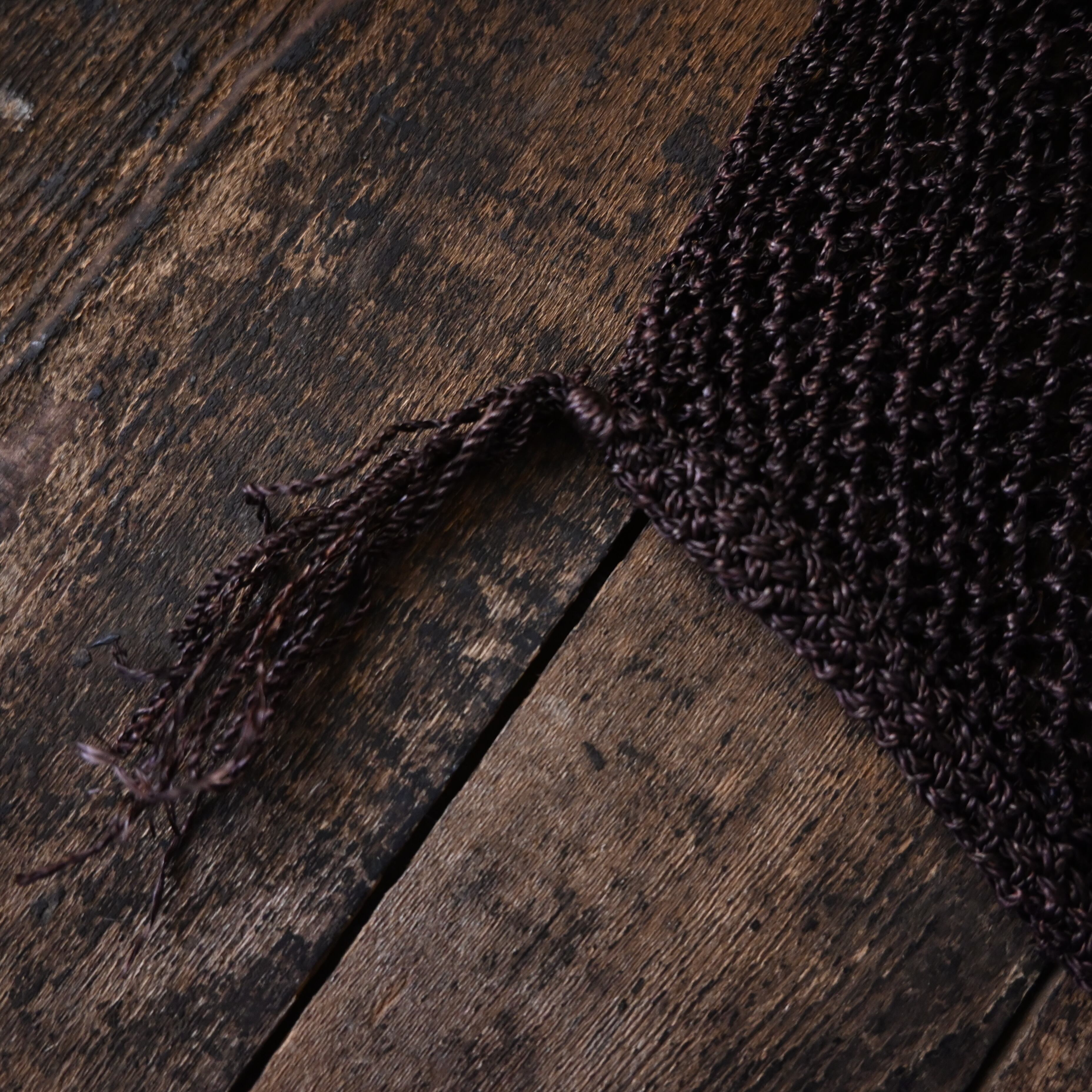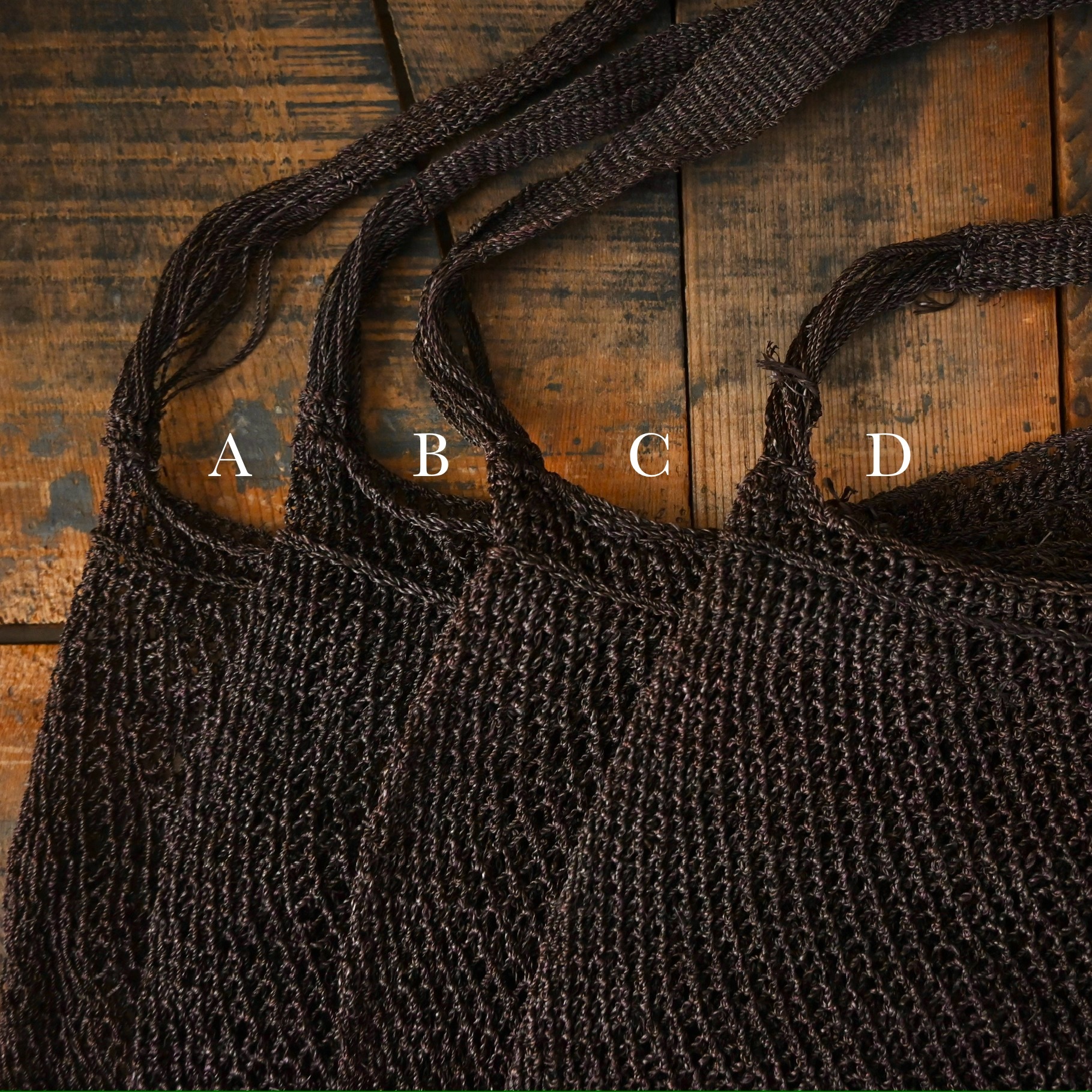編み目は一目ずつ結ばれていますが、ほつれや切れが気になる場合は、天然繊維の糸で結び直してお使い下さい。