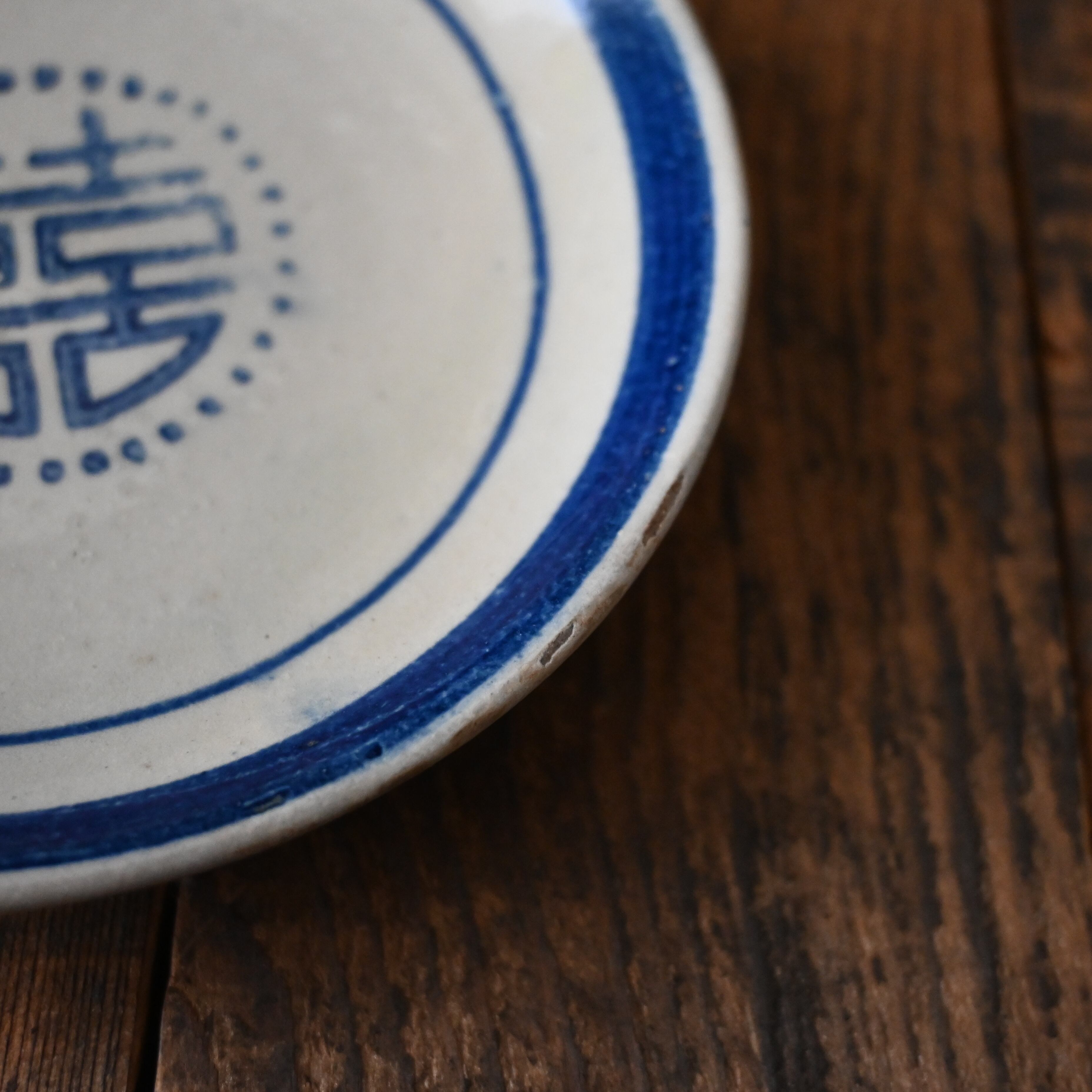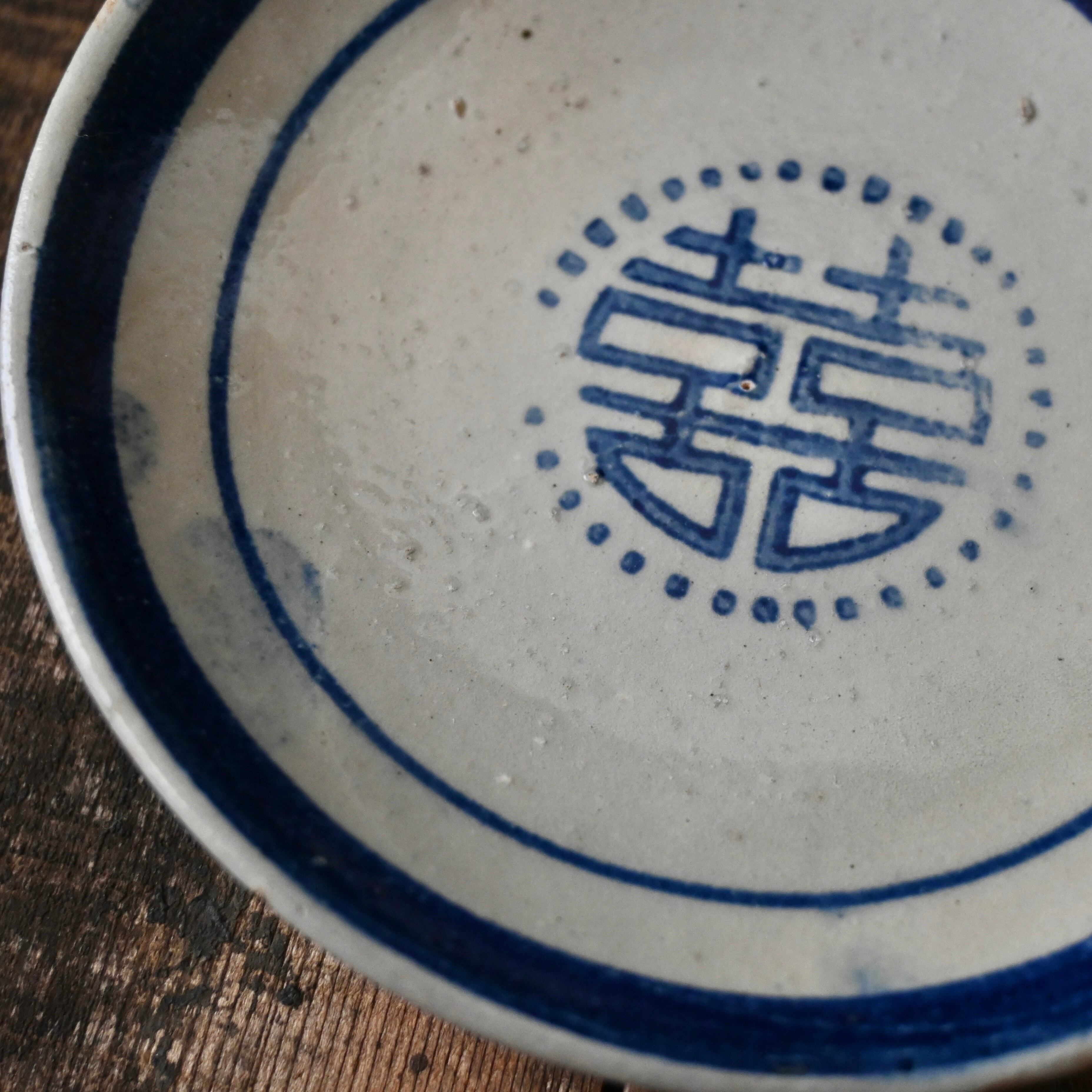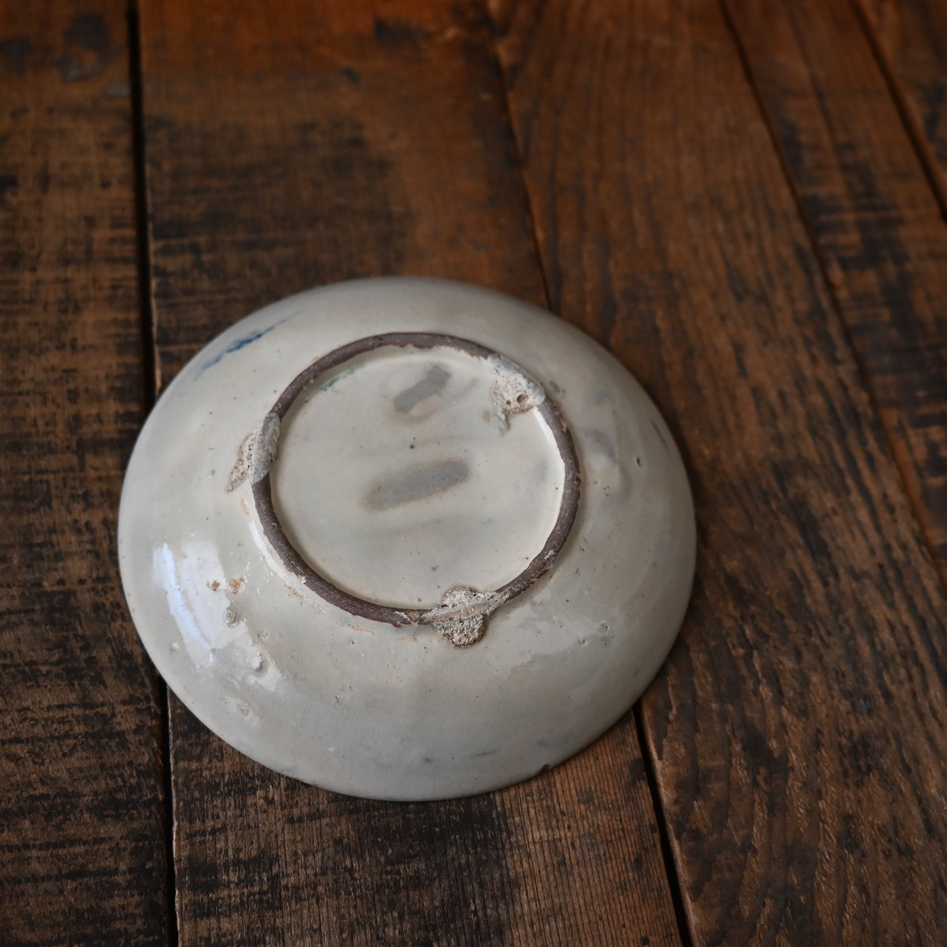 焼成時に器を重ねて焼くため、高台(底の部分)や縁に、小さな突起や釉薬の剥がれた跡が残ることがあります。これは当時の製法ならではの特徴であり、ひとつひとつ異なる個性を持つ証ともいえます。