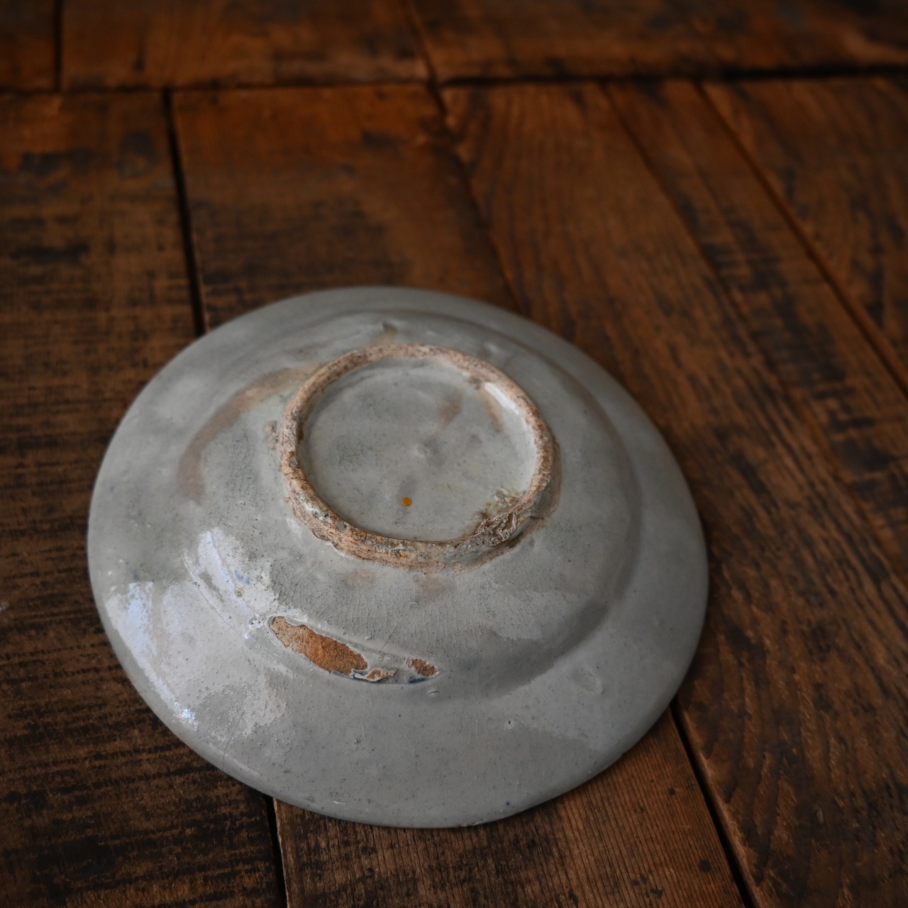 焼成時に器を重ねて焼くため、高台(底の部分)や縁に、小さな突起や釉薬の剥がれた跡が残ることがあります。これは当時の製法ならではの特徴であり、ひとつひとつ異なる個性を持つ証ともいえます。