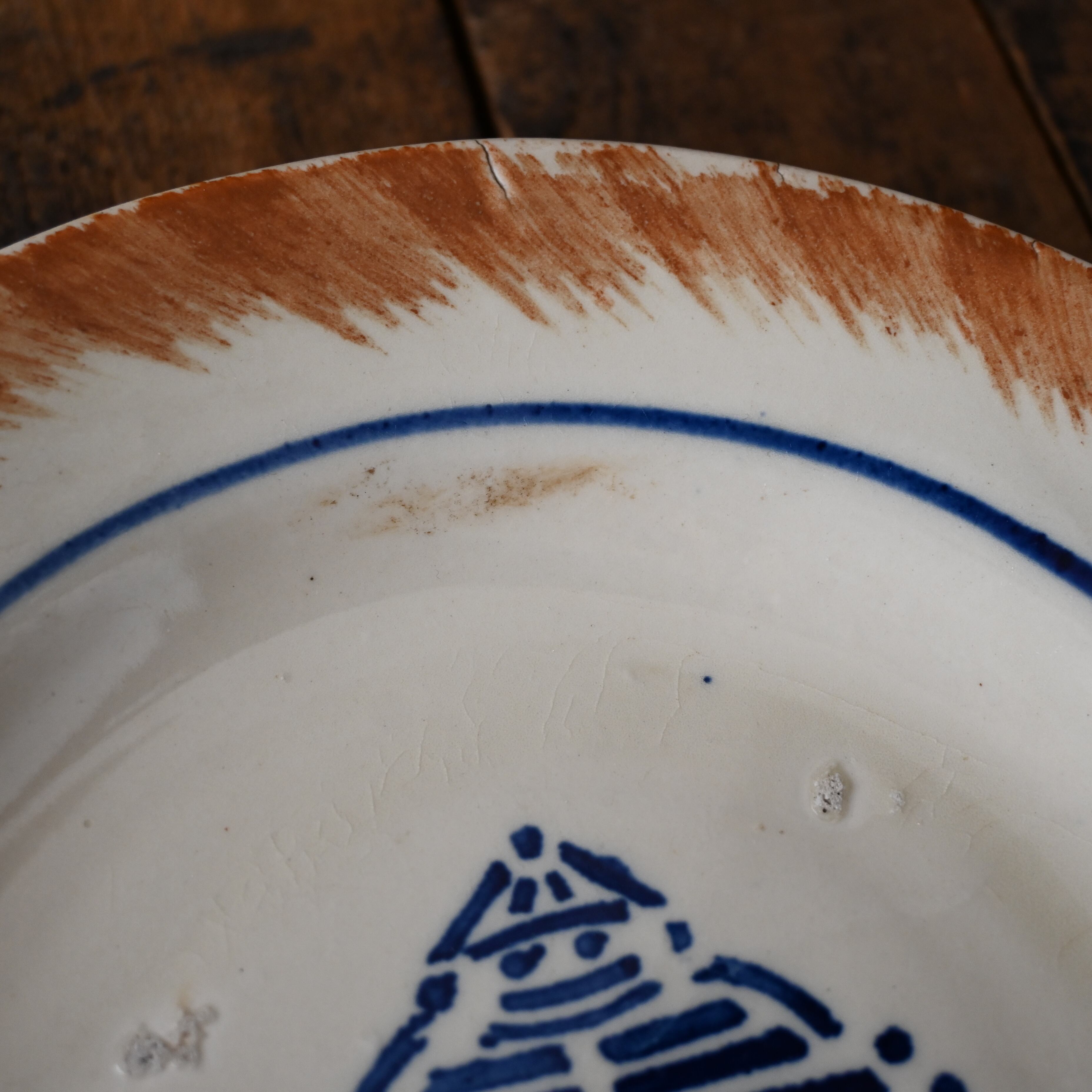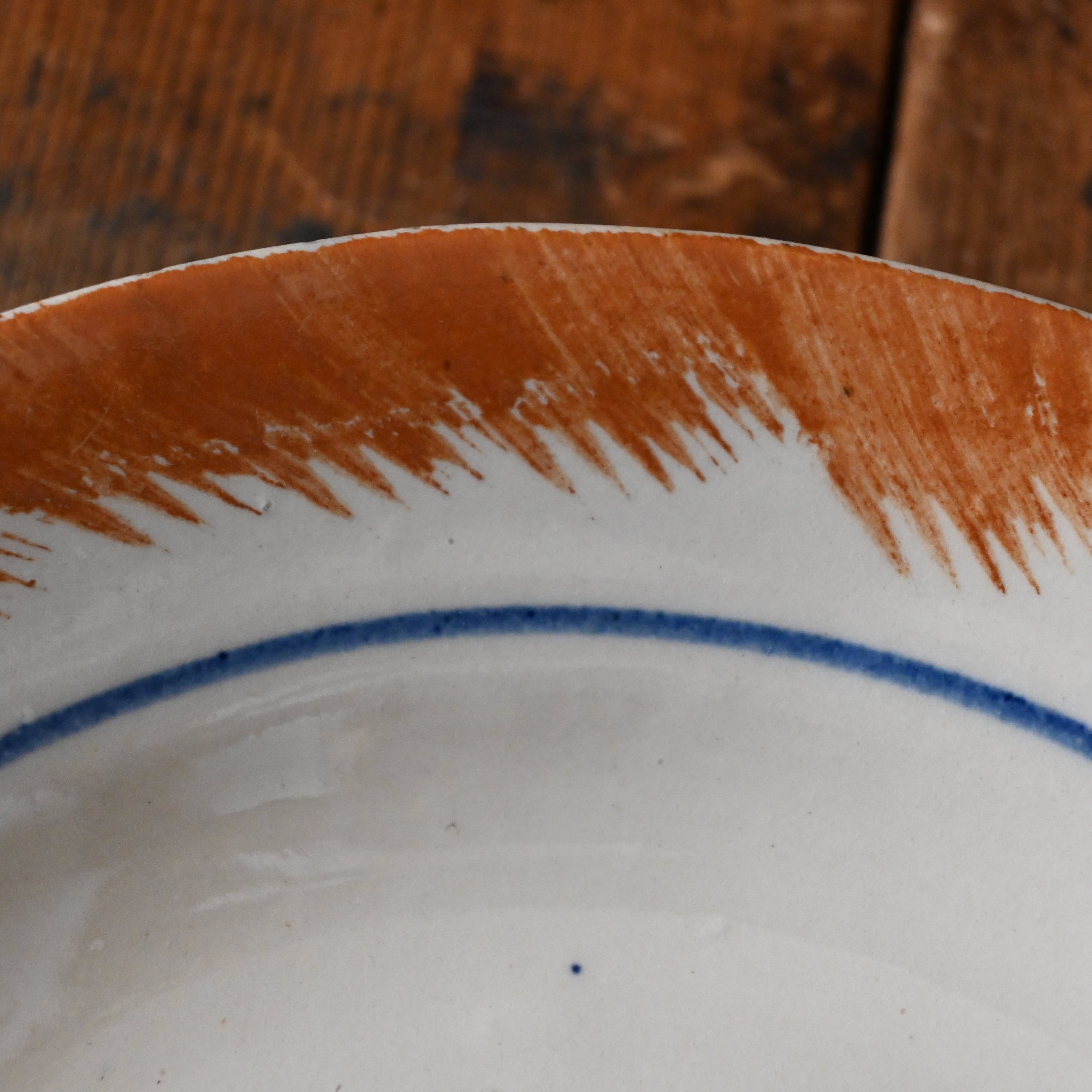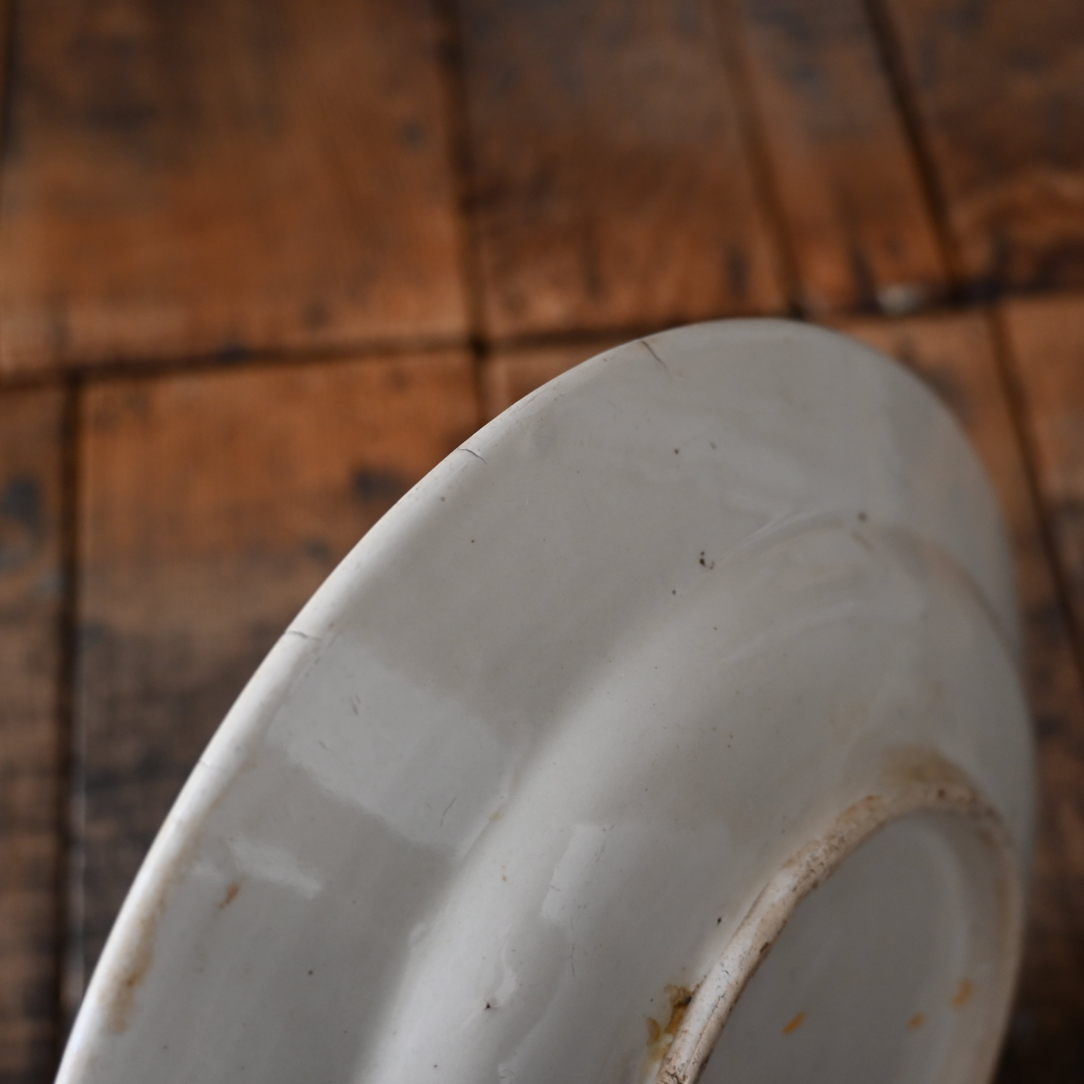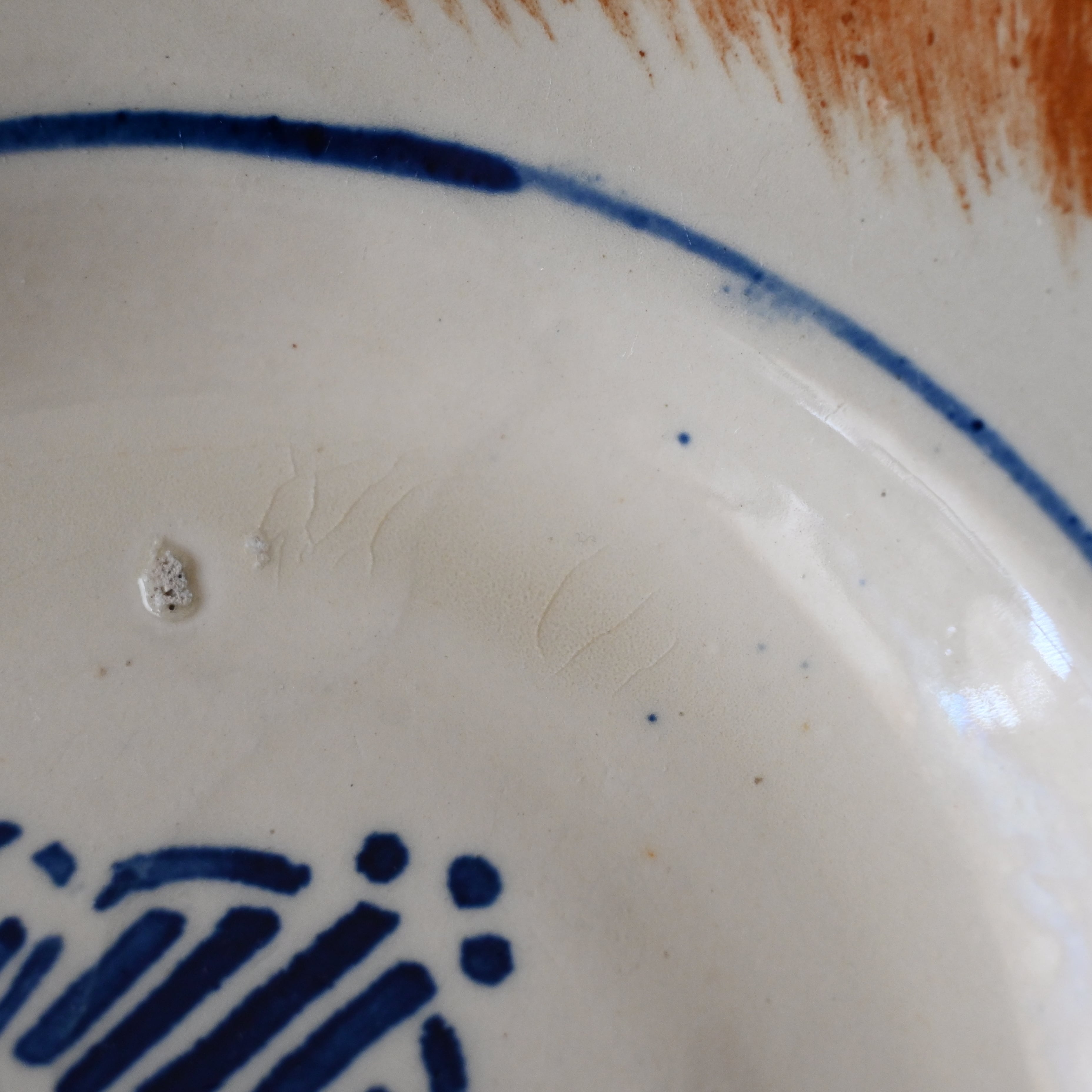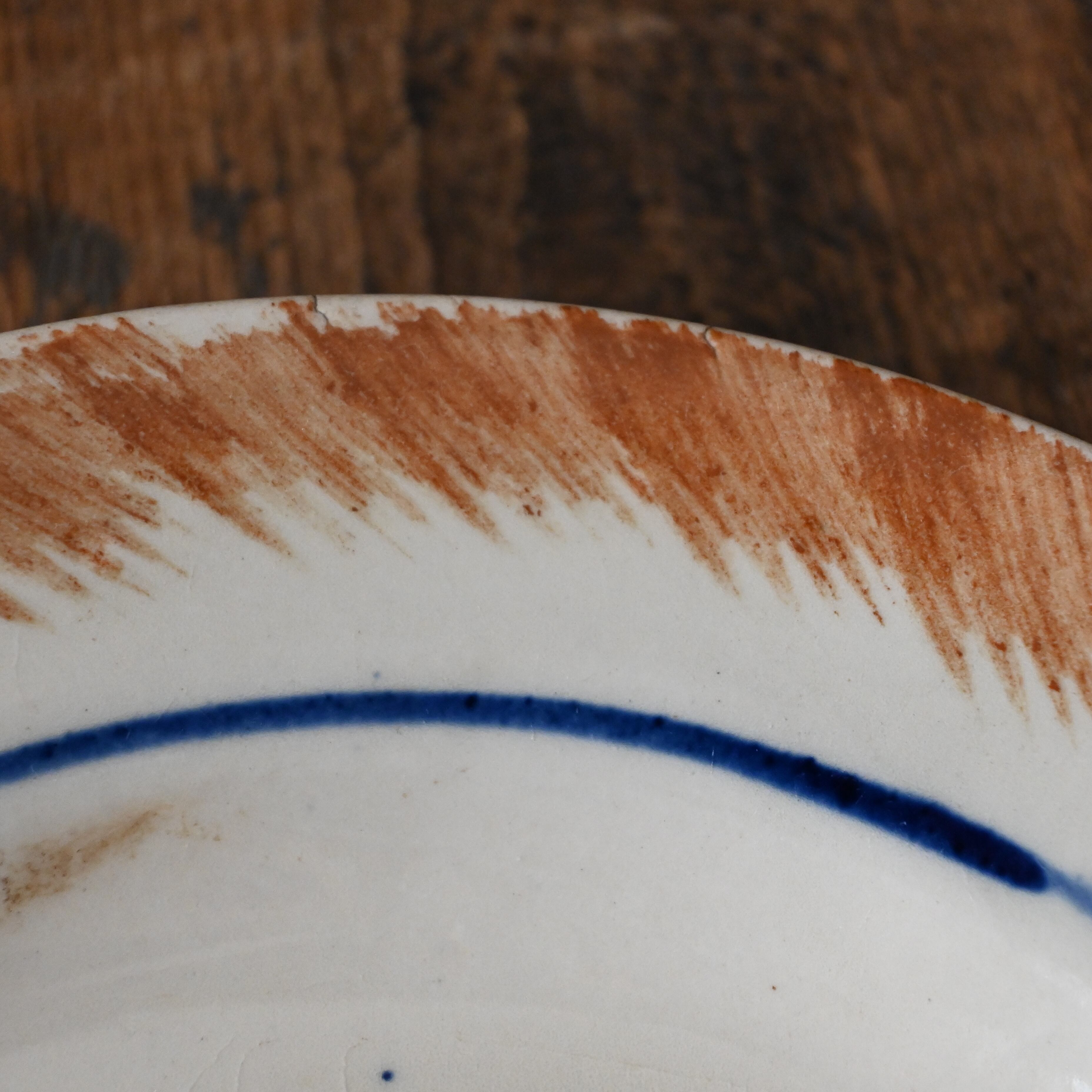 焼成時に器を重ねて焼くため、高台(底の部分)や縁に、小さな突起や釉薬の剥がれた跡が残ることがあります。これは当時の製法ならではの特徴であり、ひとつひとつ異なる個性を持つ証ともいえます。