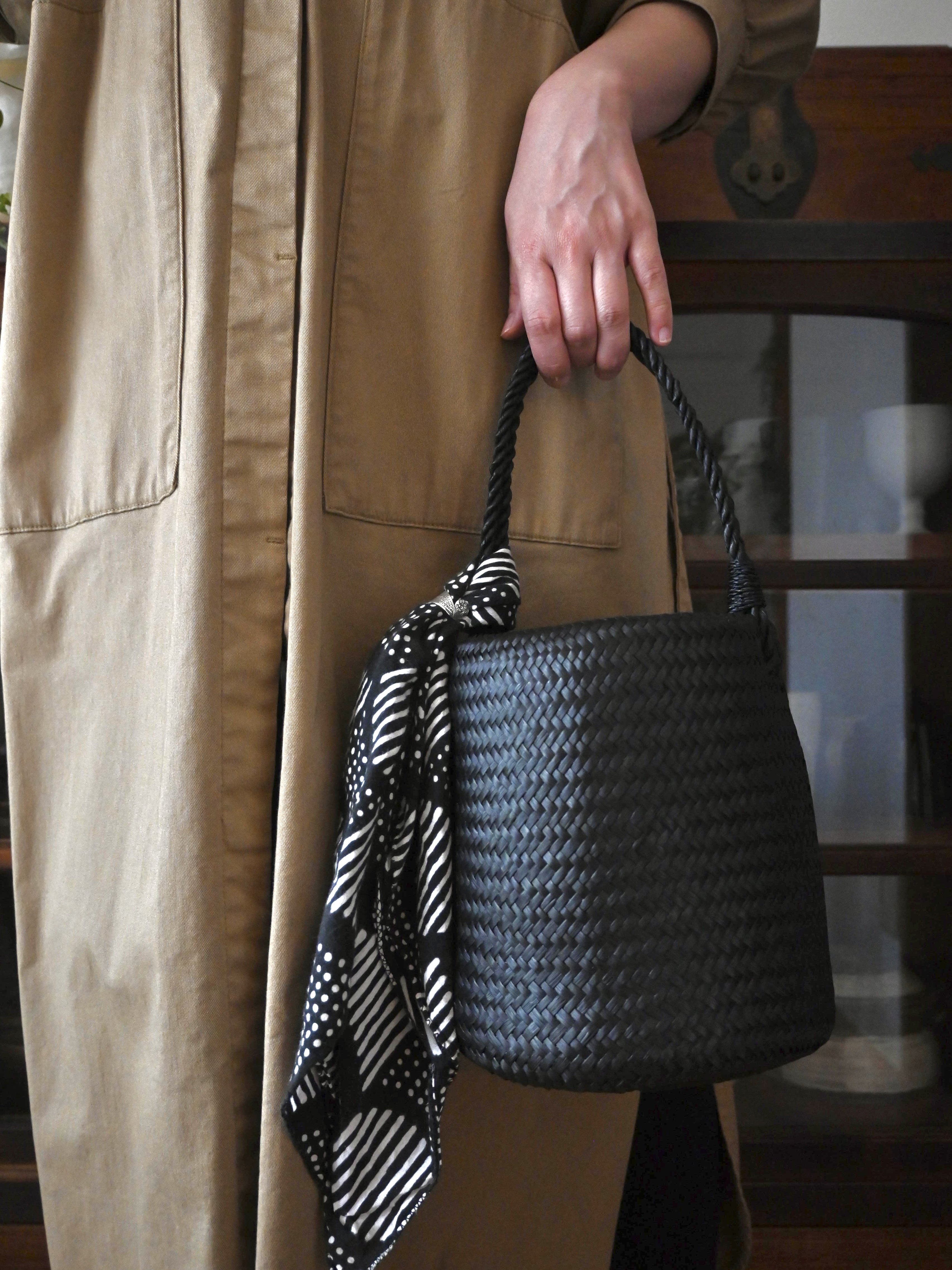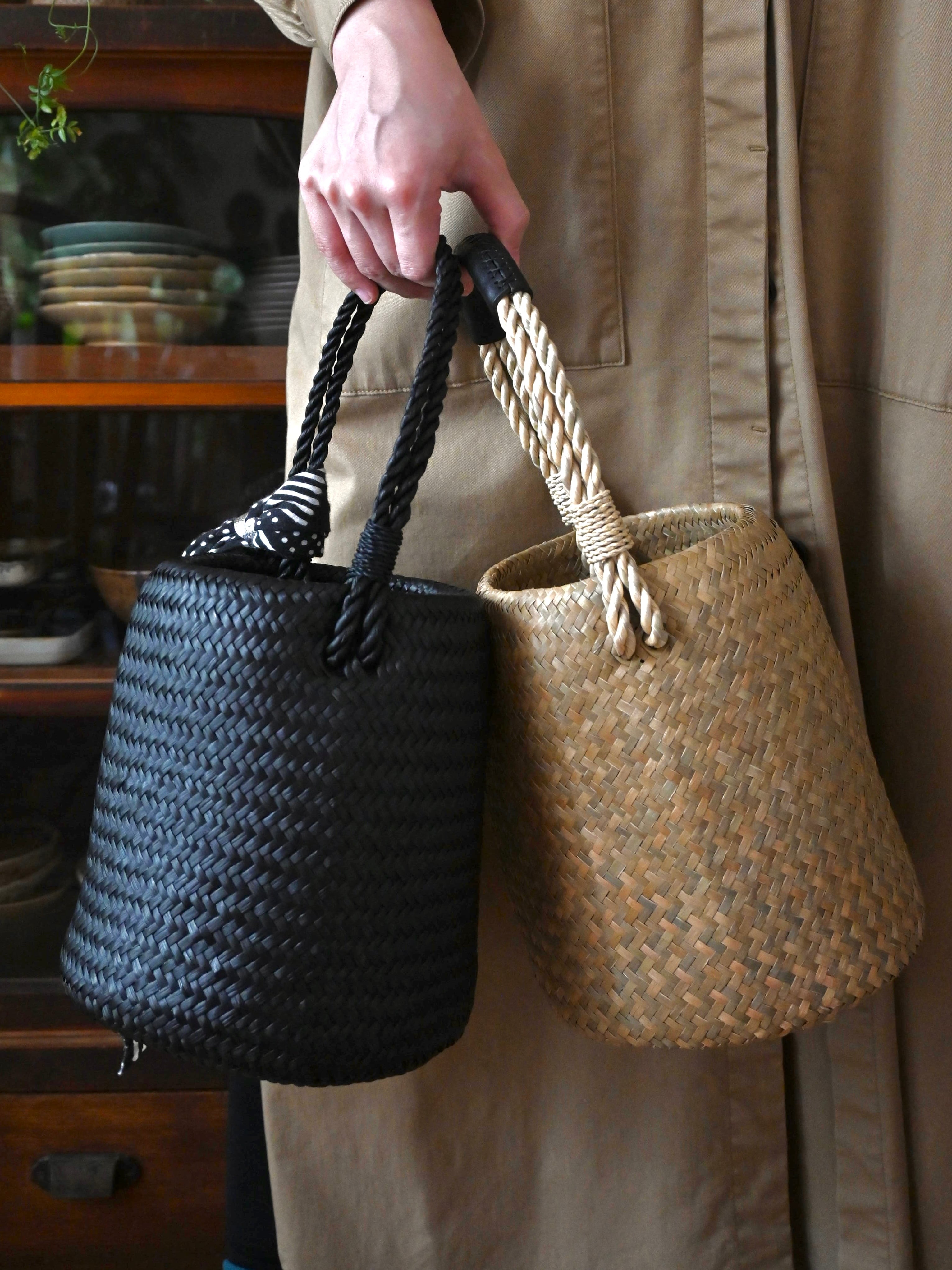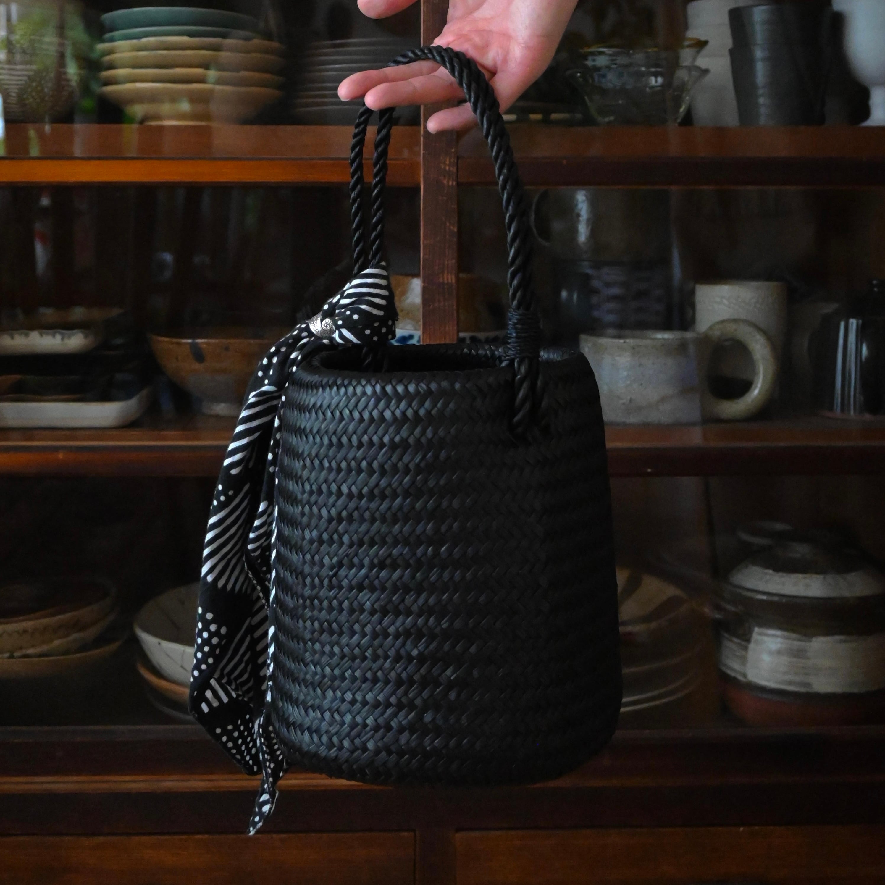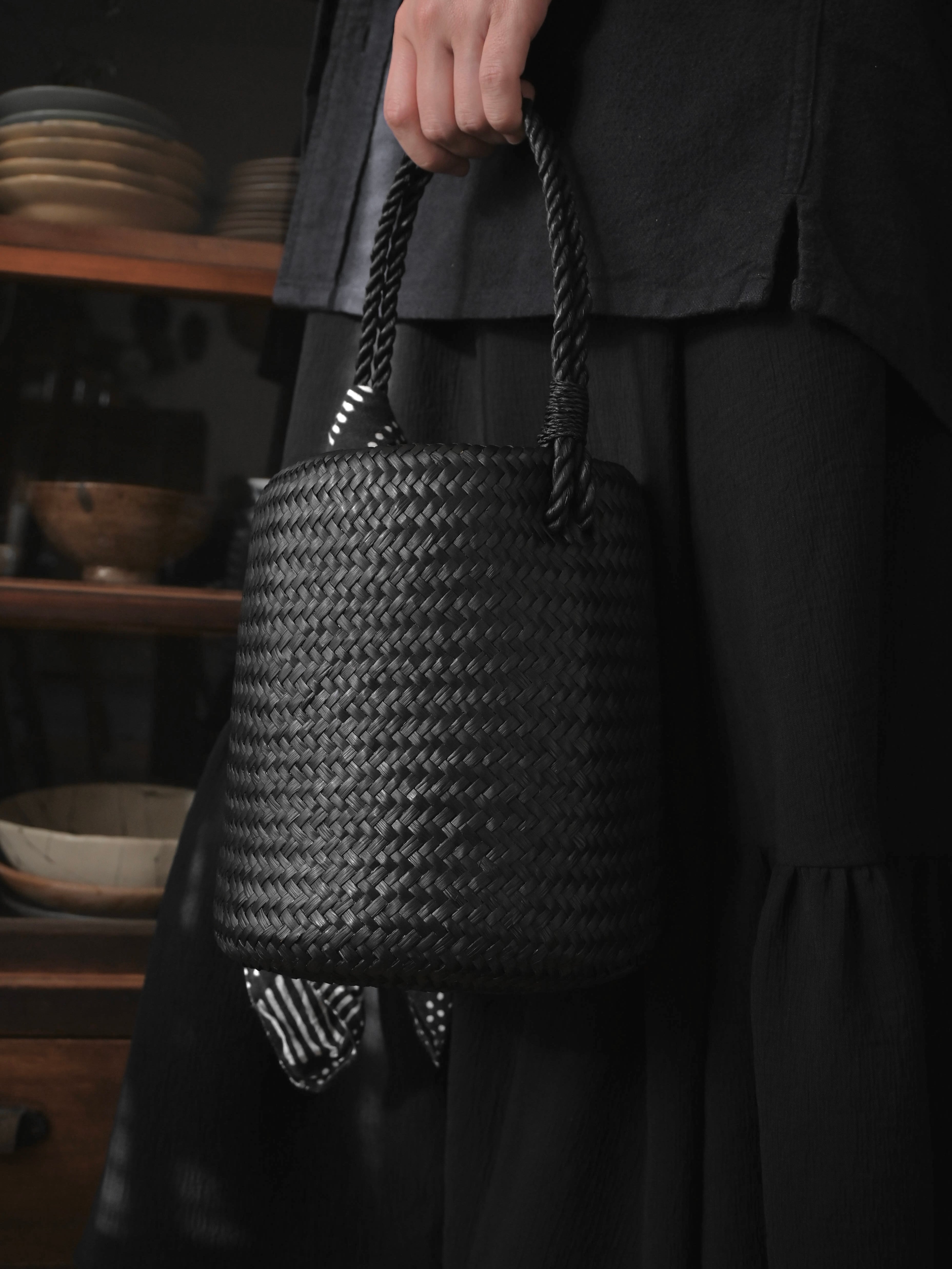 南国タイで一本一本、手で編まれたカチューのバスケットシリーズに、凜としたブラックカラーが登場しました。