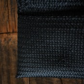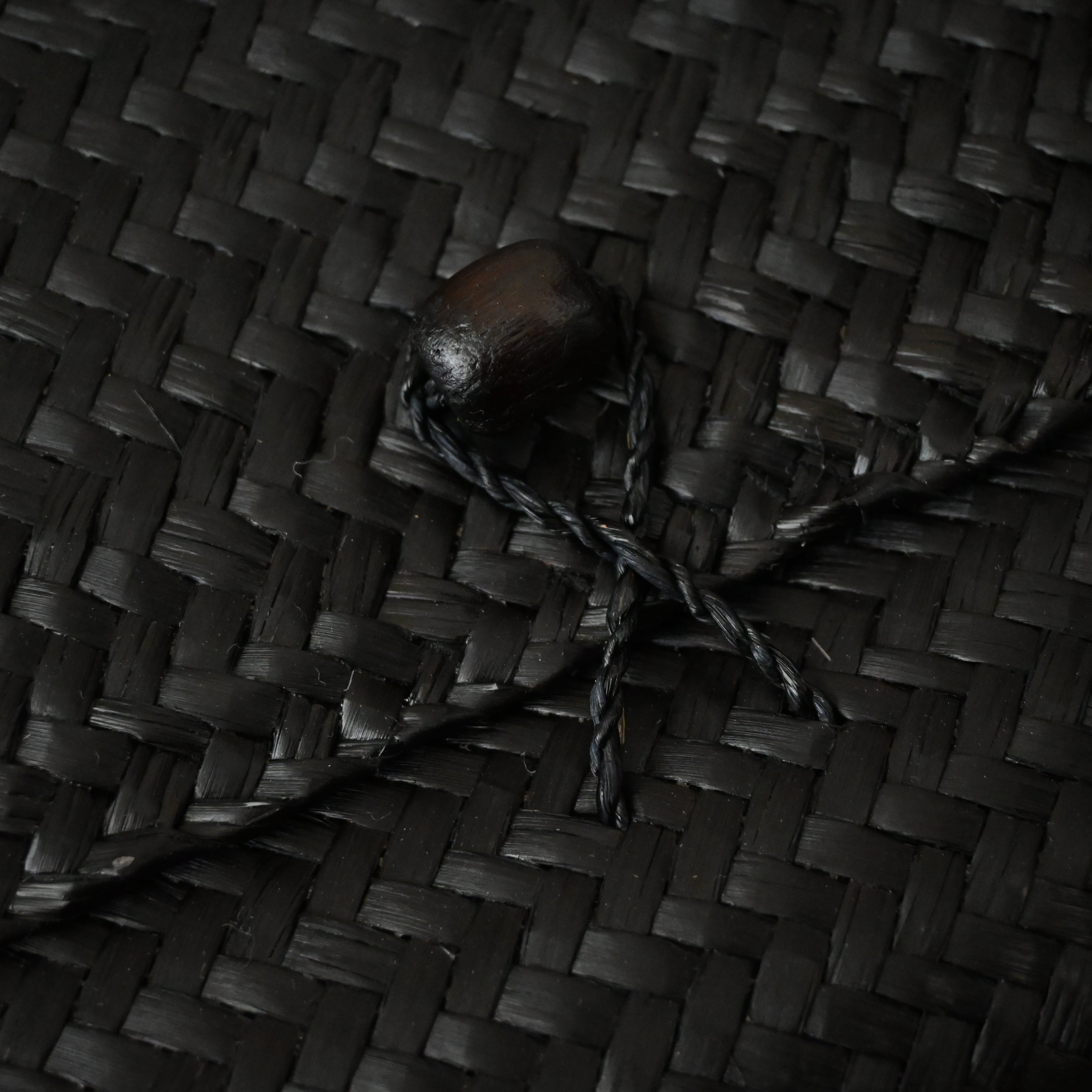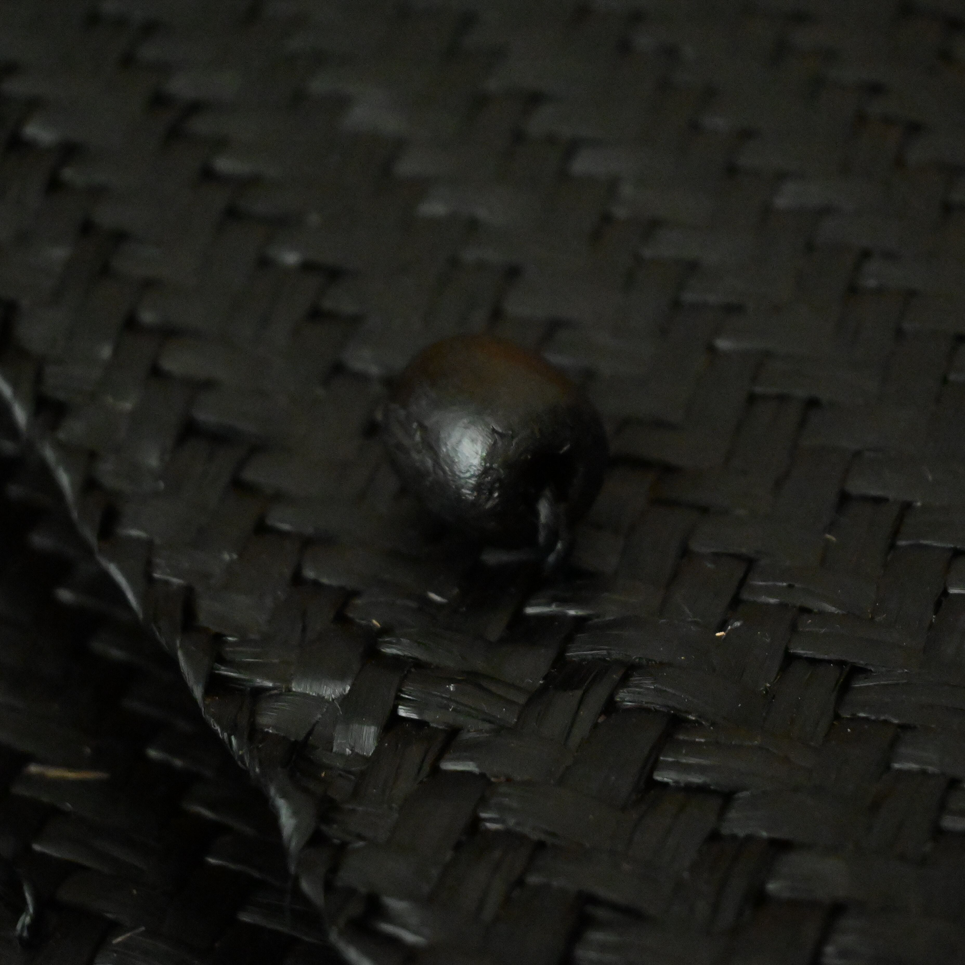 編み上げた後に、光沢感を抑えたマットなブラックで染めた、程よい光沢が品良い印象の一品。