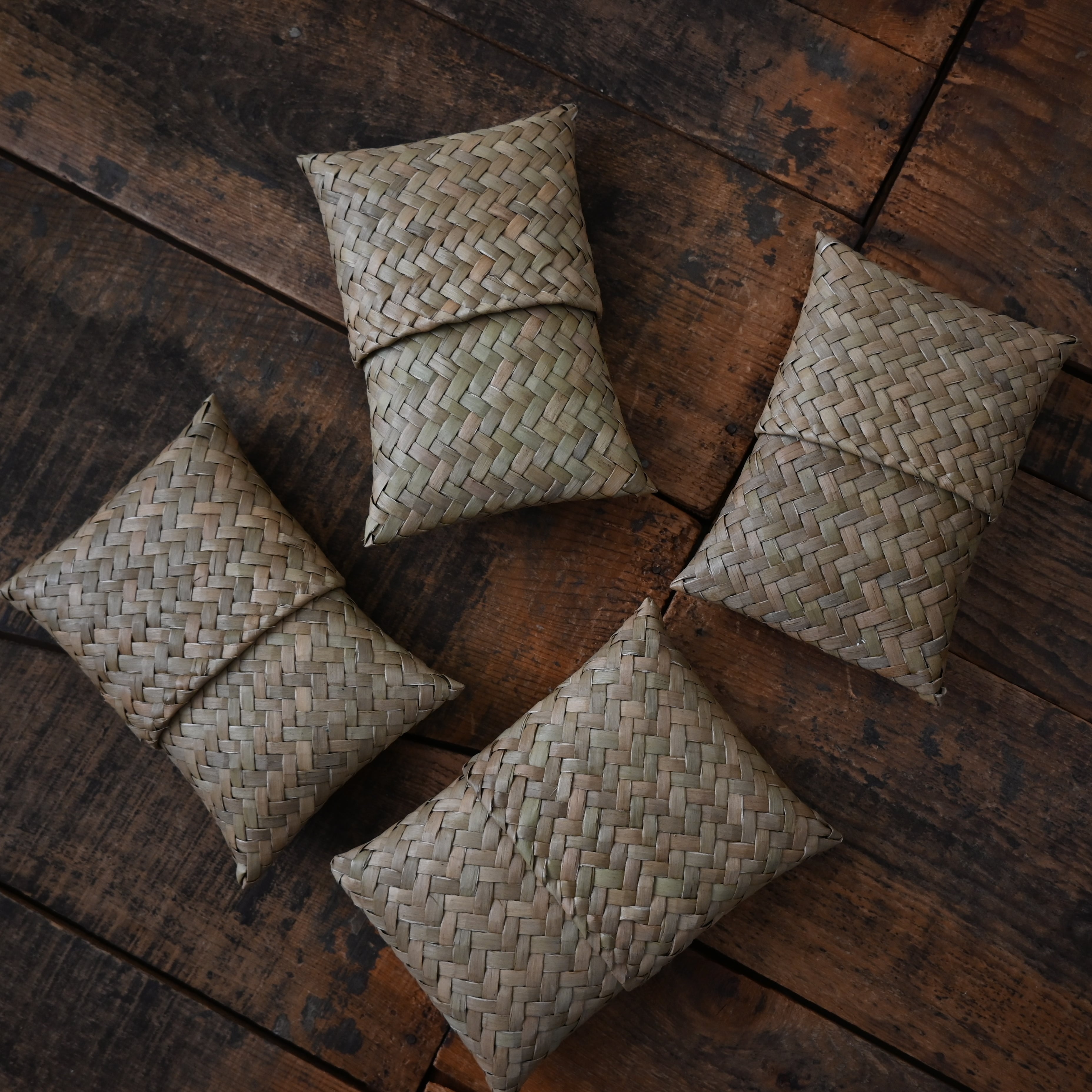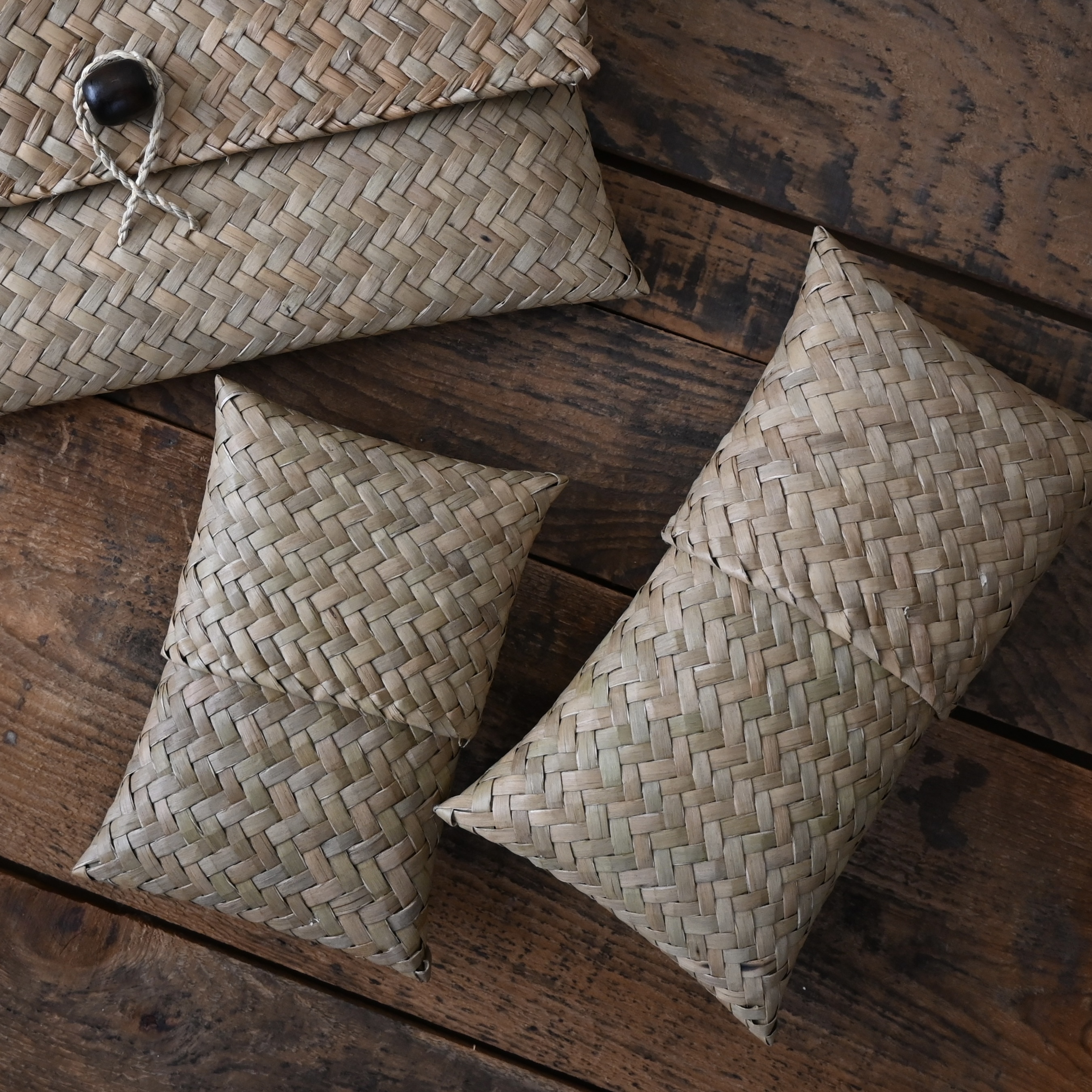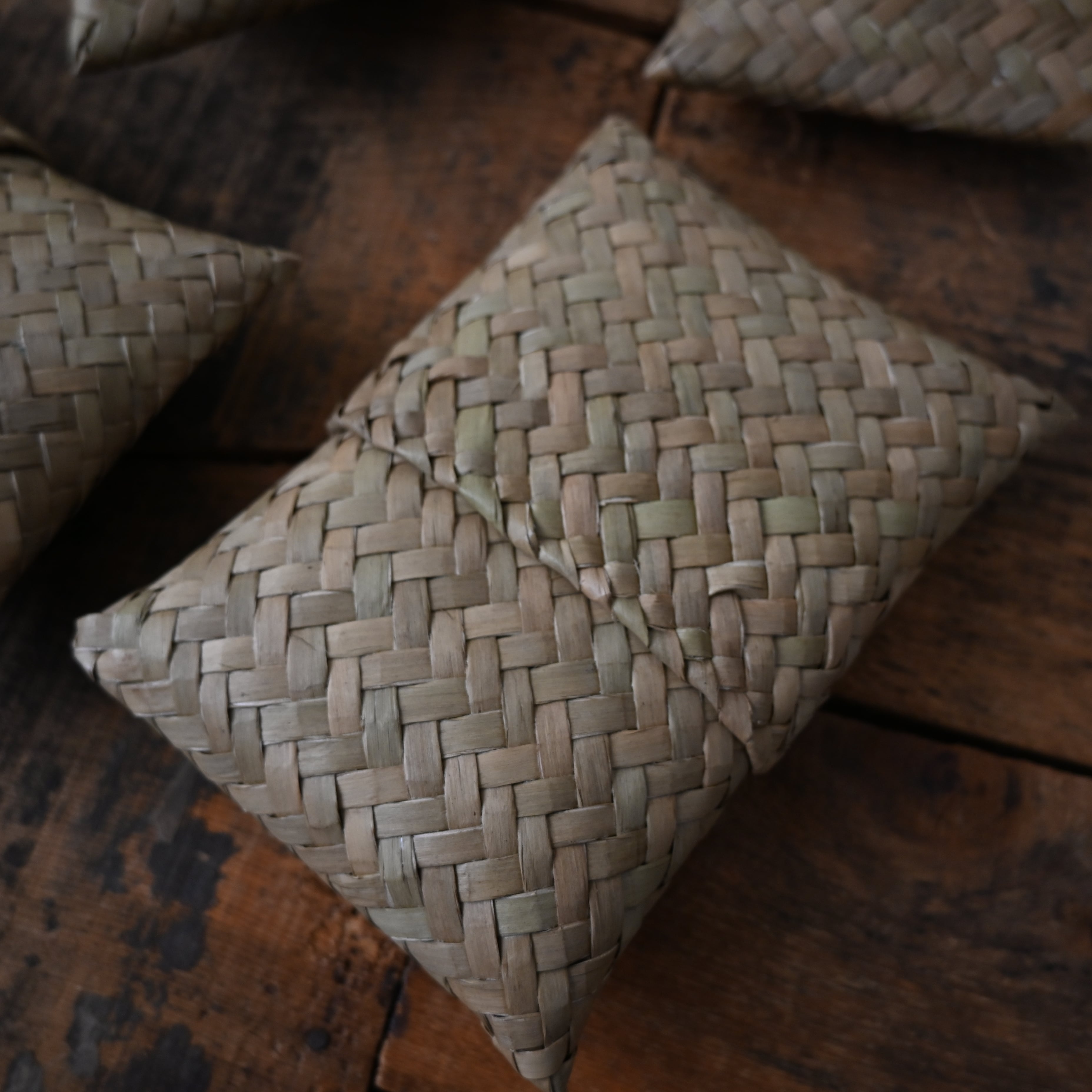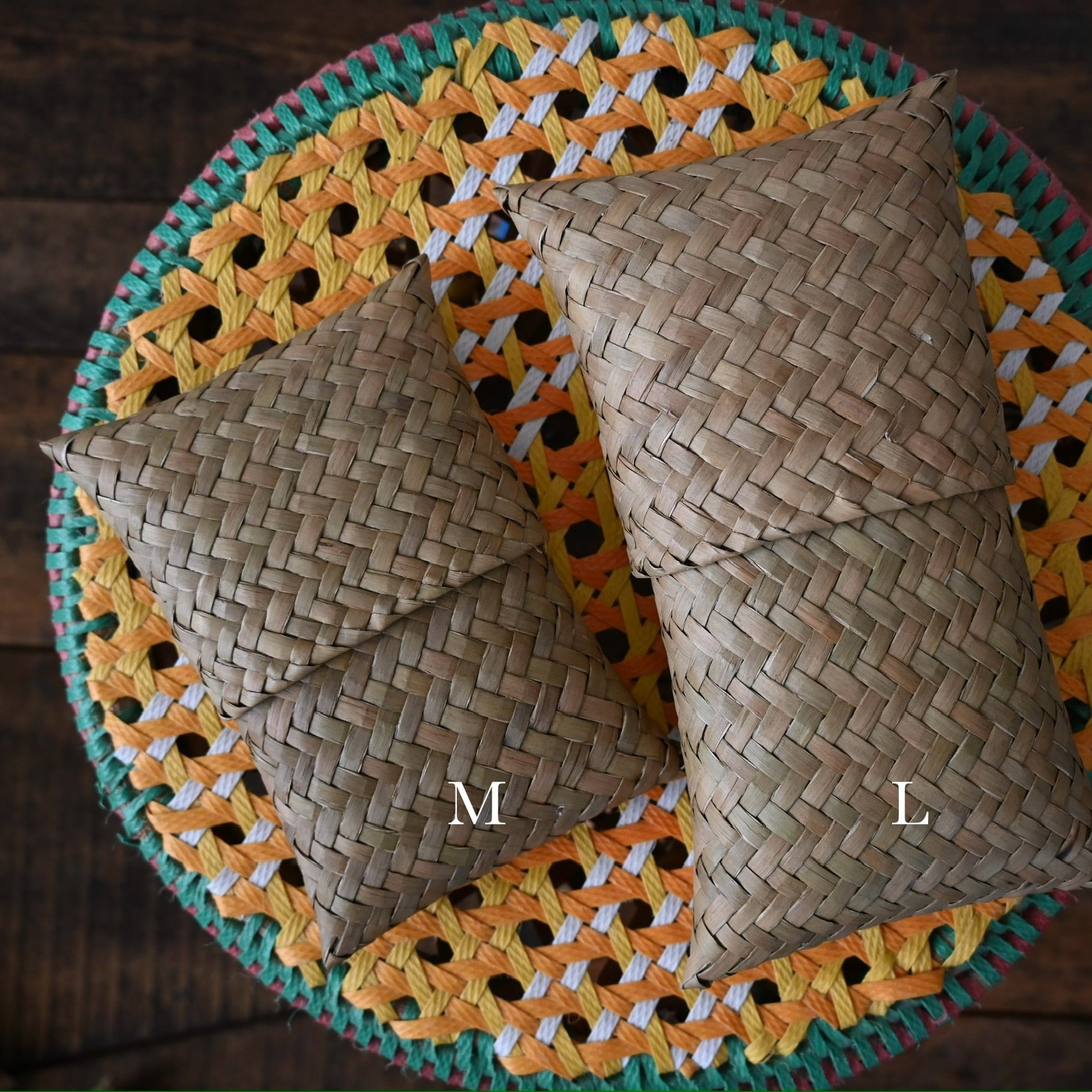 タイの南部に位置するナコーンシータマラート県で職人による手仕事によって作られたカチュー(水草)のポーチ。