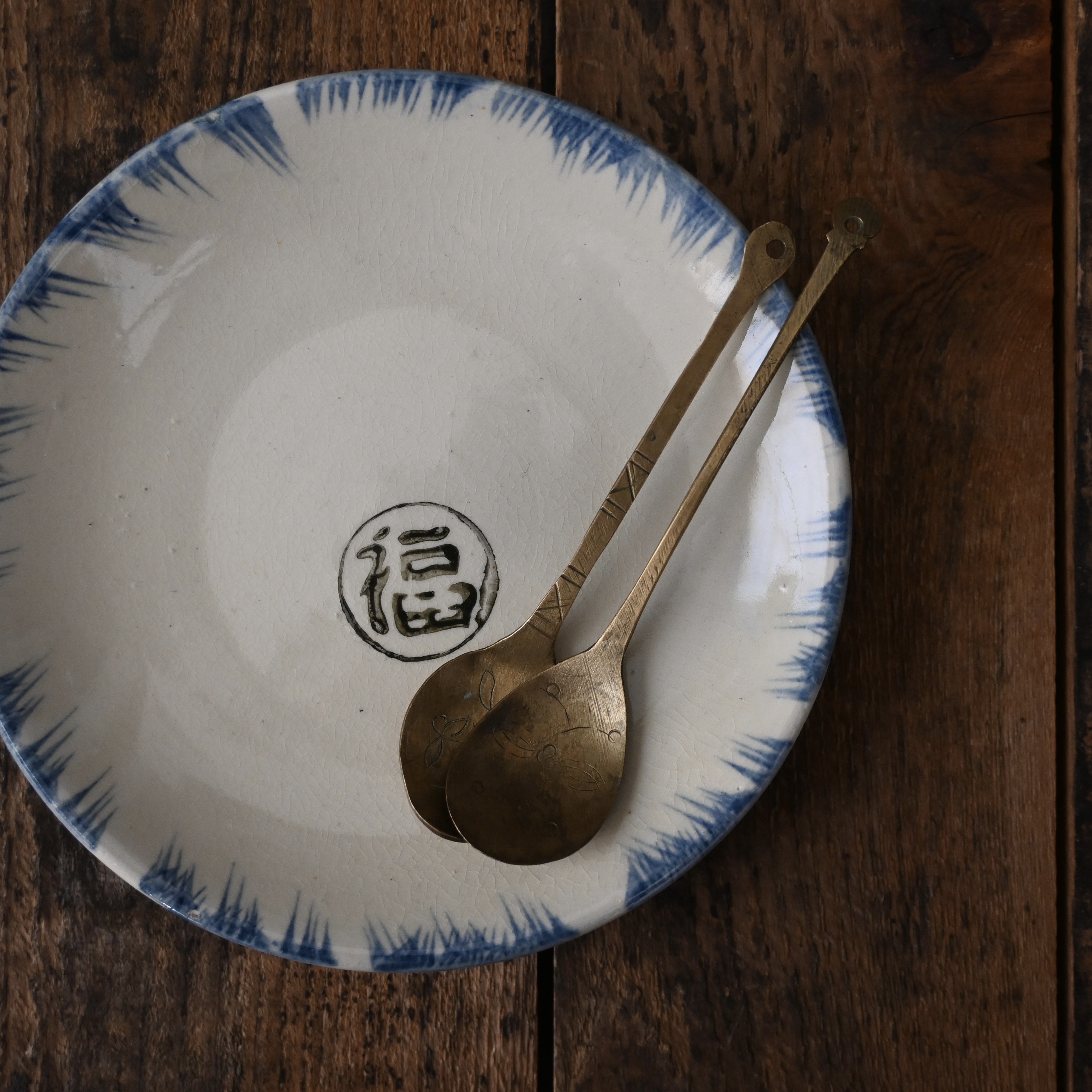 ぽってりとした素朴な質感とクリーム色の釉薬・手描きの絵付けが特徴で、長い間、家庭や食堂の食器として親しまれてきました。その背景には、ベトナムの独自の陶磁文化とともに、中国やフランスの影響を受けた歴史があります。