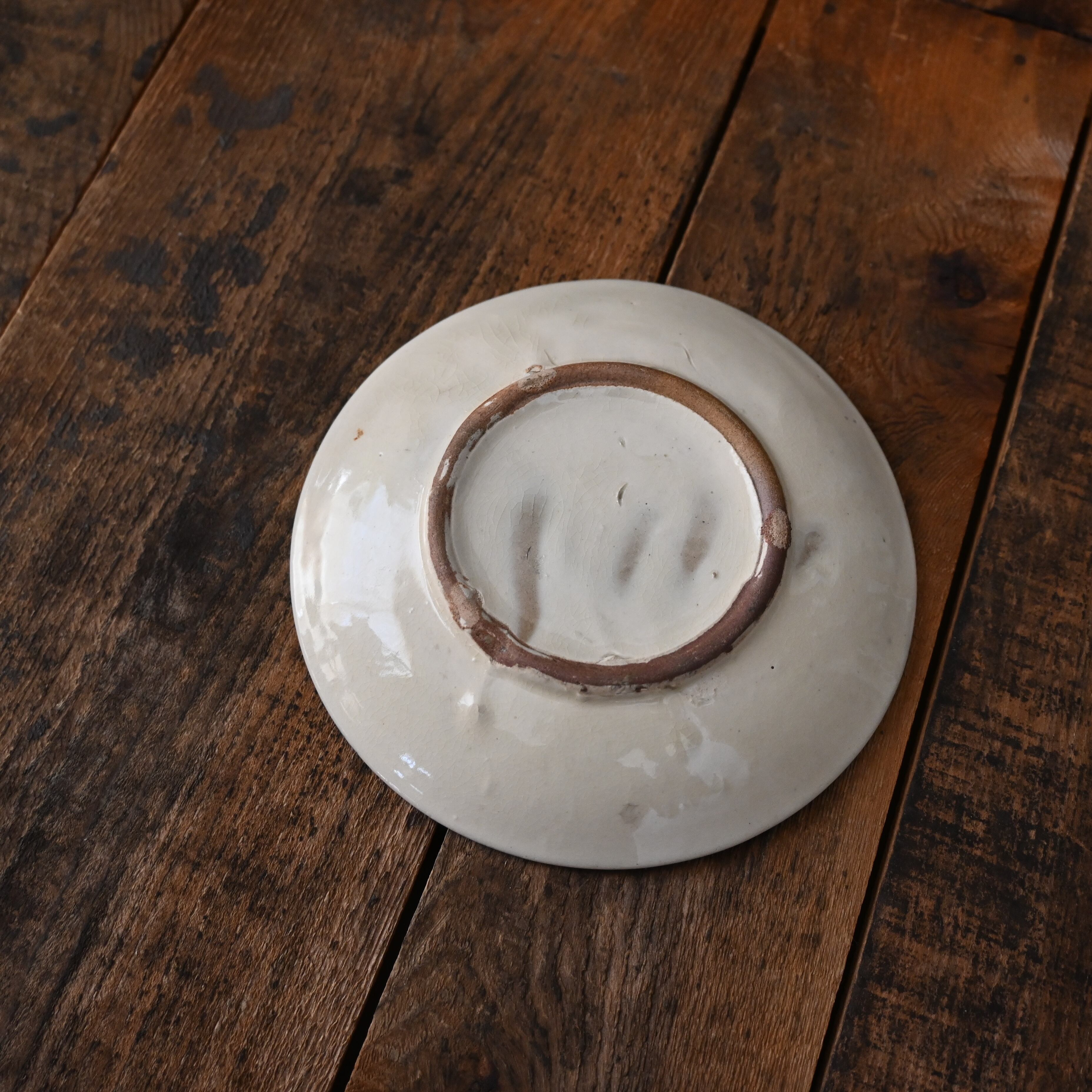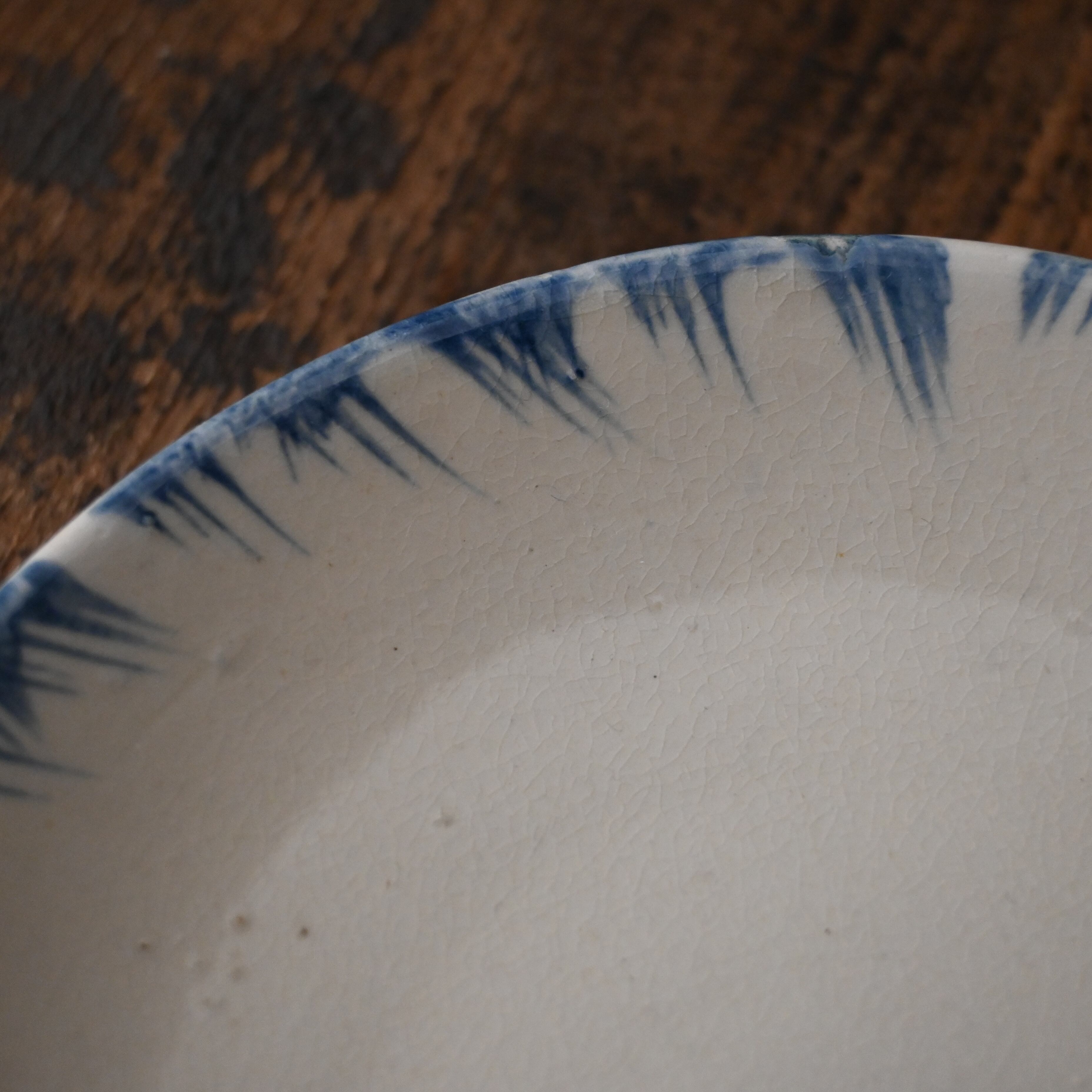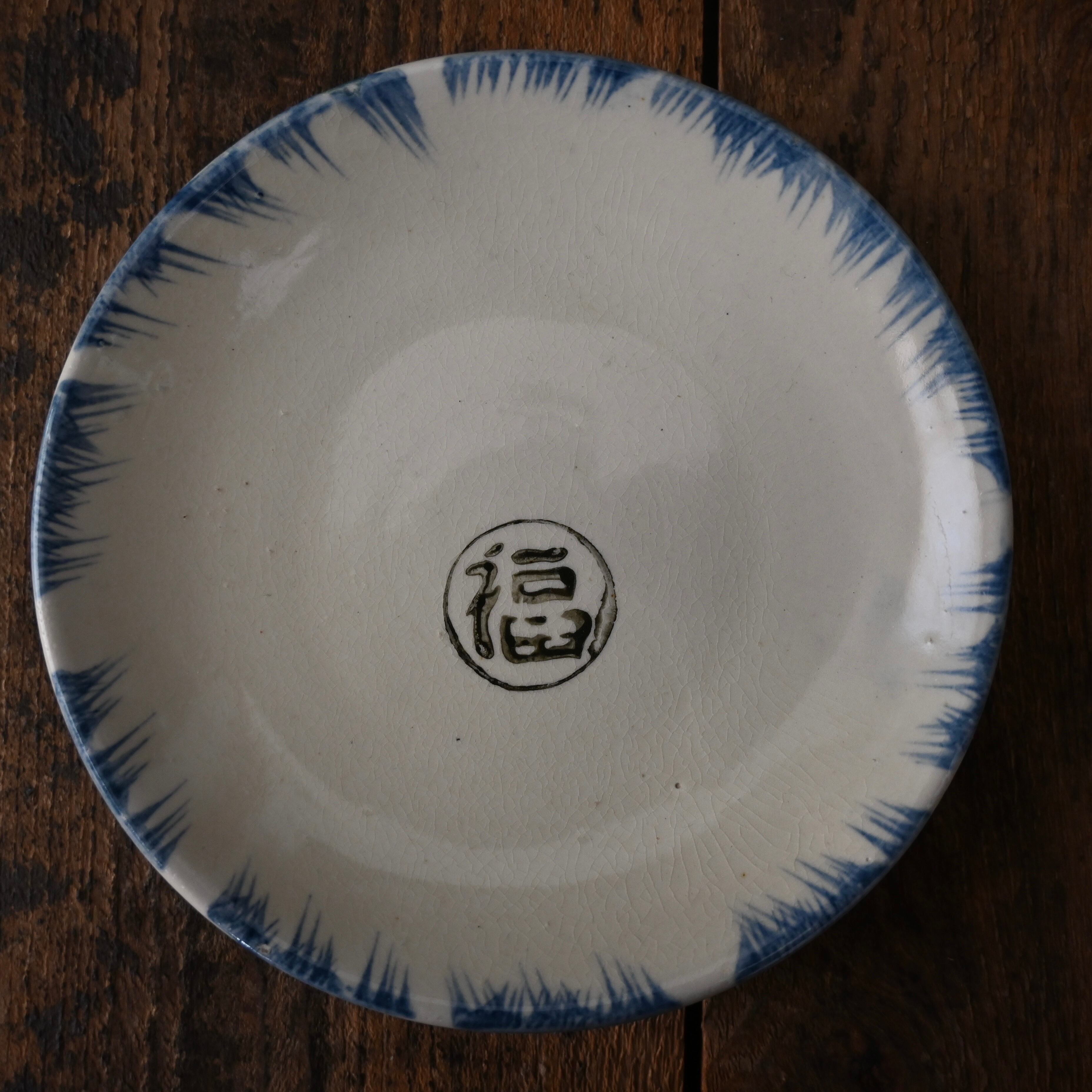 焼成時に器を重ねて焼くため、高台(底の部分)や縁に、小さな突起や釉薬の剥がれた跡が残ることがあります。これは当時の製法ならではの特徴であり、ひとつひとつ異なる個性を持つ証ともいえます。