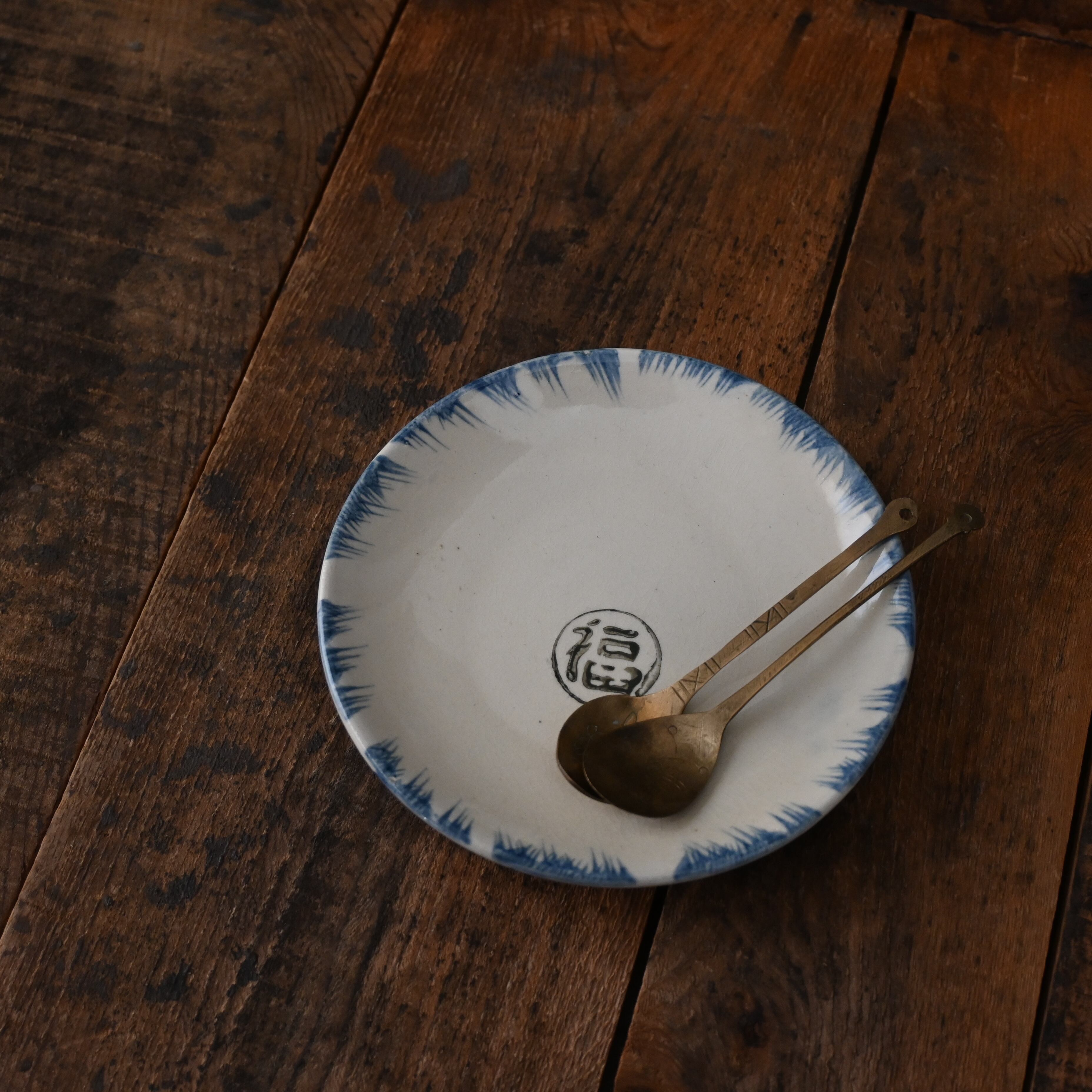 花や鳥、幾何学模様などがシンプルな筆致や印判で描かれ、素朴ながらも味わいのあるデザインになっています。ひとつひとつ異なる表情を持ち、同じ柄でもわずかに違う仕上がりが楽しめます。