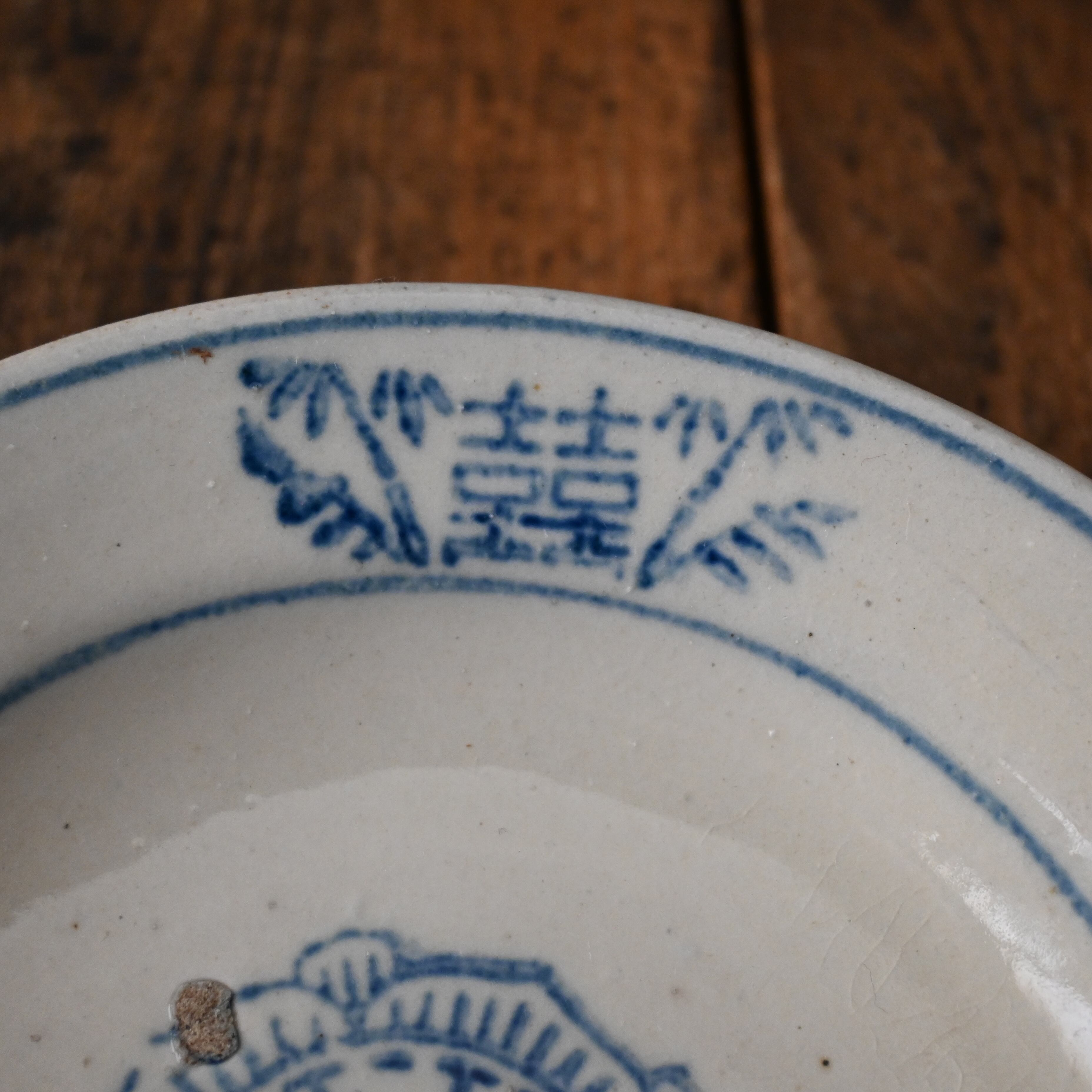 焼成時に器を重ねて焼くため、高台(底の部分)や縁に、小さな突起や釉薬の剥がれた跡が残ることがあります。これは当時の製法ならではの特徴であり、ひとつひとつ異なる個性を持つ証ともいえます。