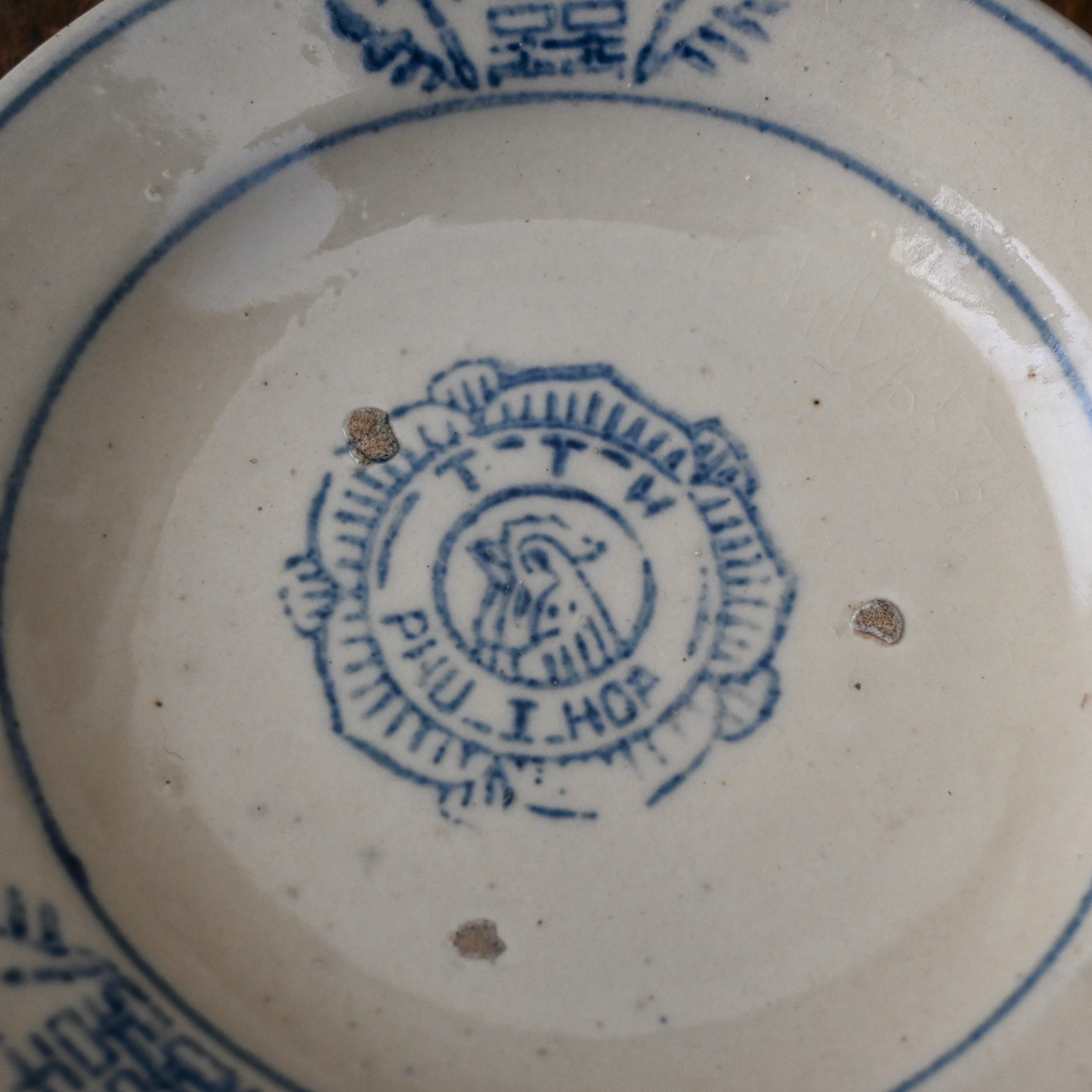 ぽってりとした素朴な質感とクリーム色の釉薬・手描きの絵付けが特徴で、長い間、家庭や食堂の食器として親しまれてきました。その背景には、ベトナムの独自の陶磁文化とともに、中国やフランスの影響を受けた歴史があります。