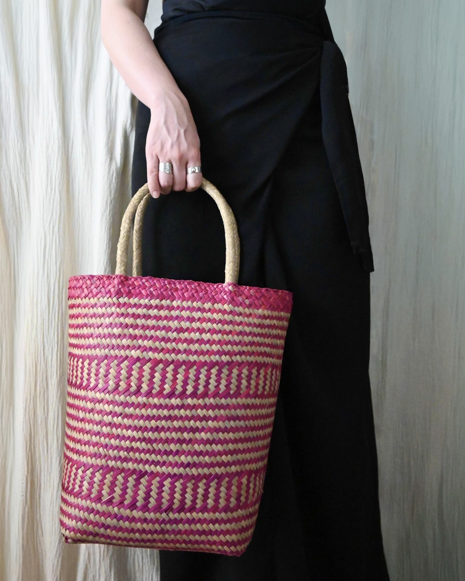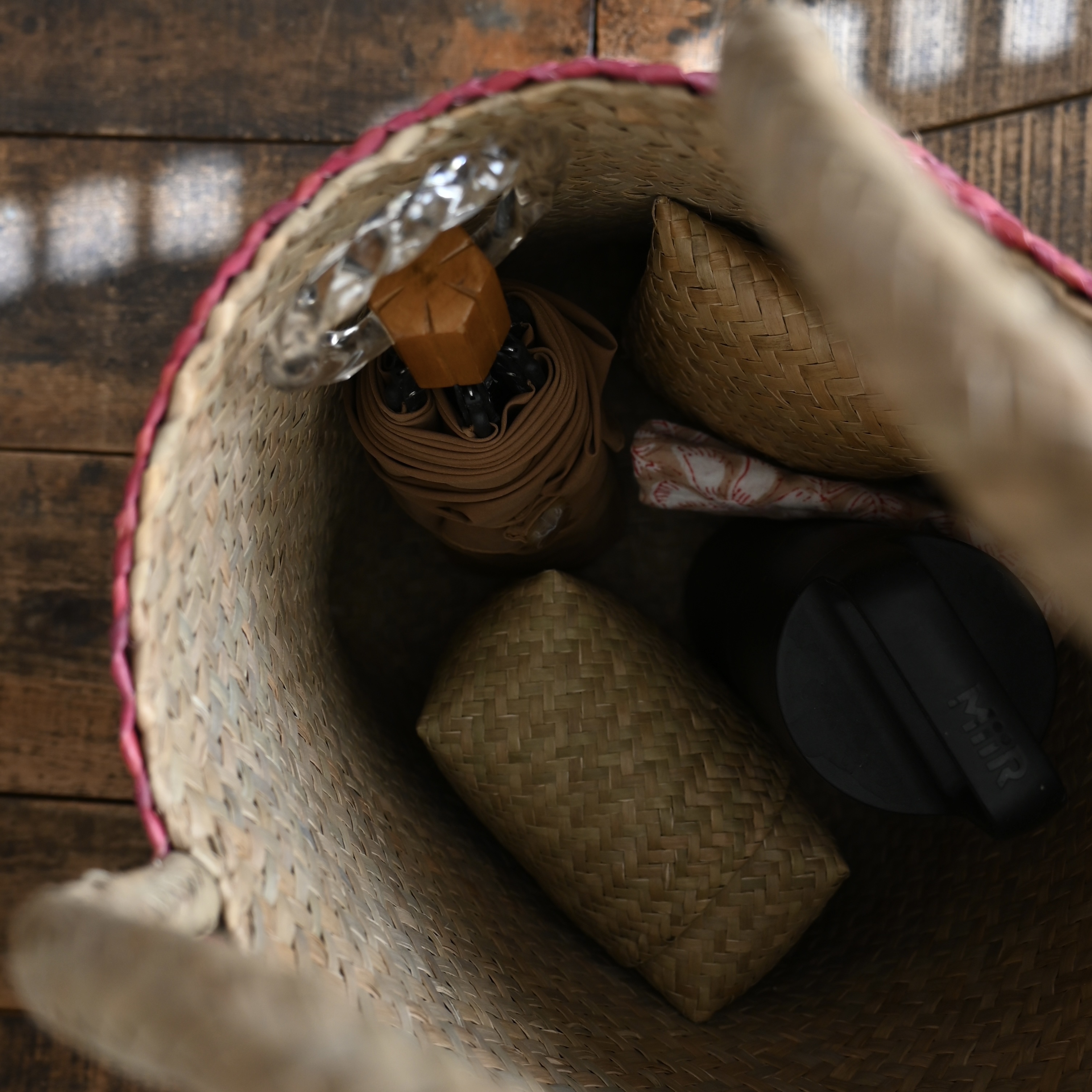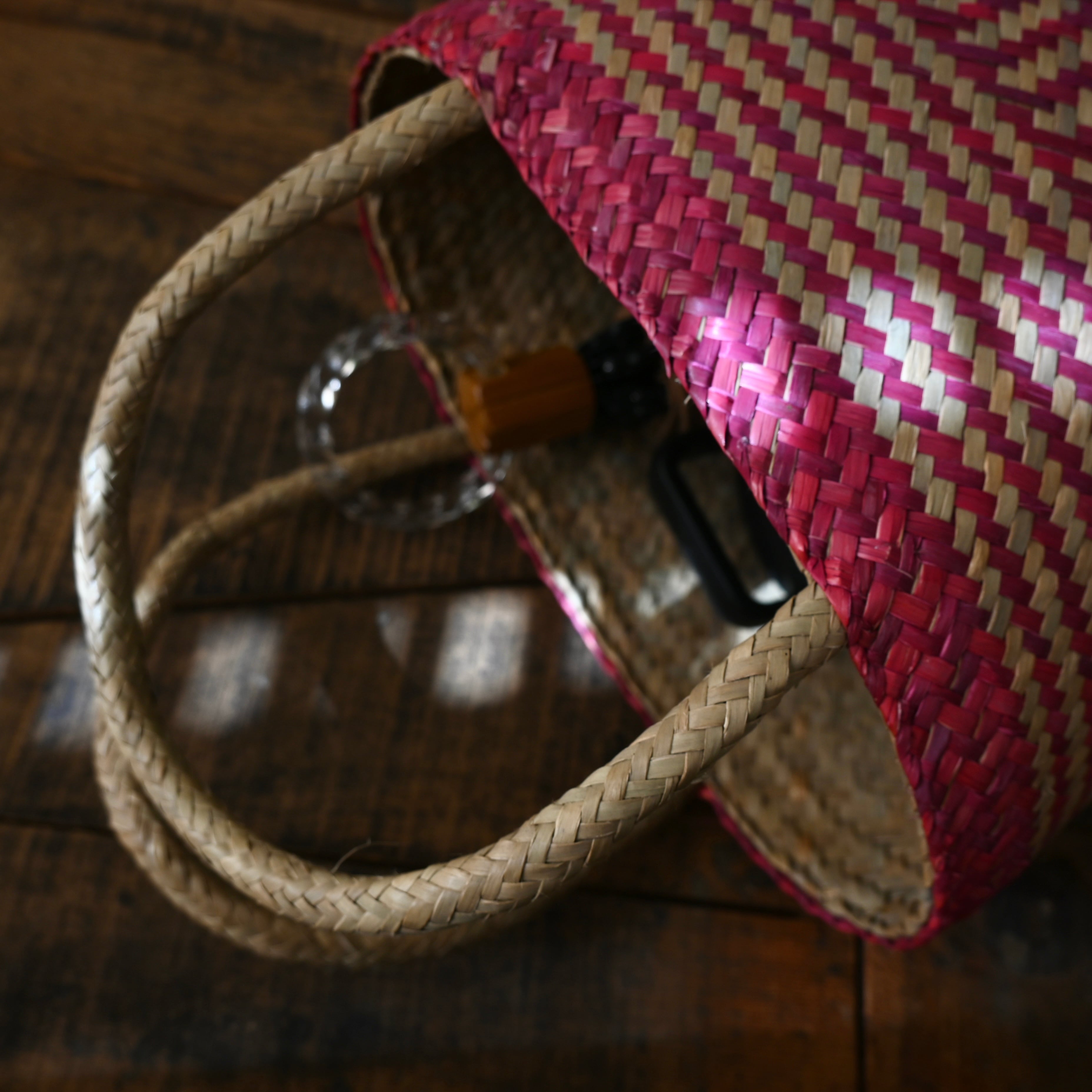 南国タイの豊かな自然が育んだ「カチュー(水草)」を丁寧に編み込んだ、印象的な柄とカラーが目を引くバッグが入荷しました。