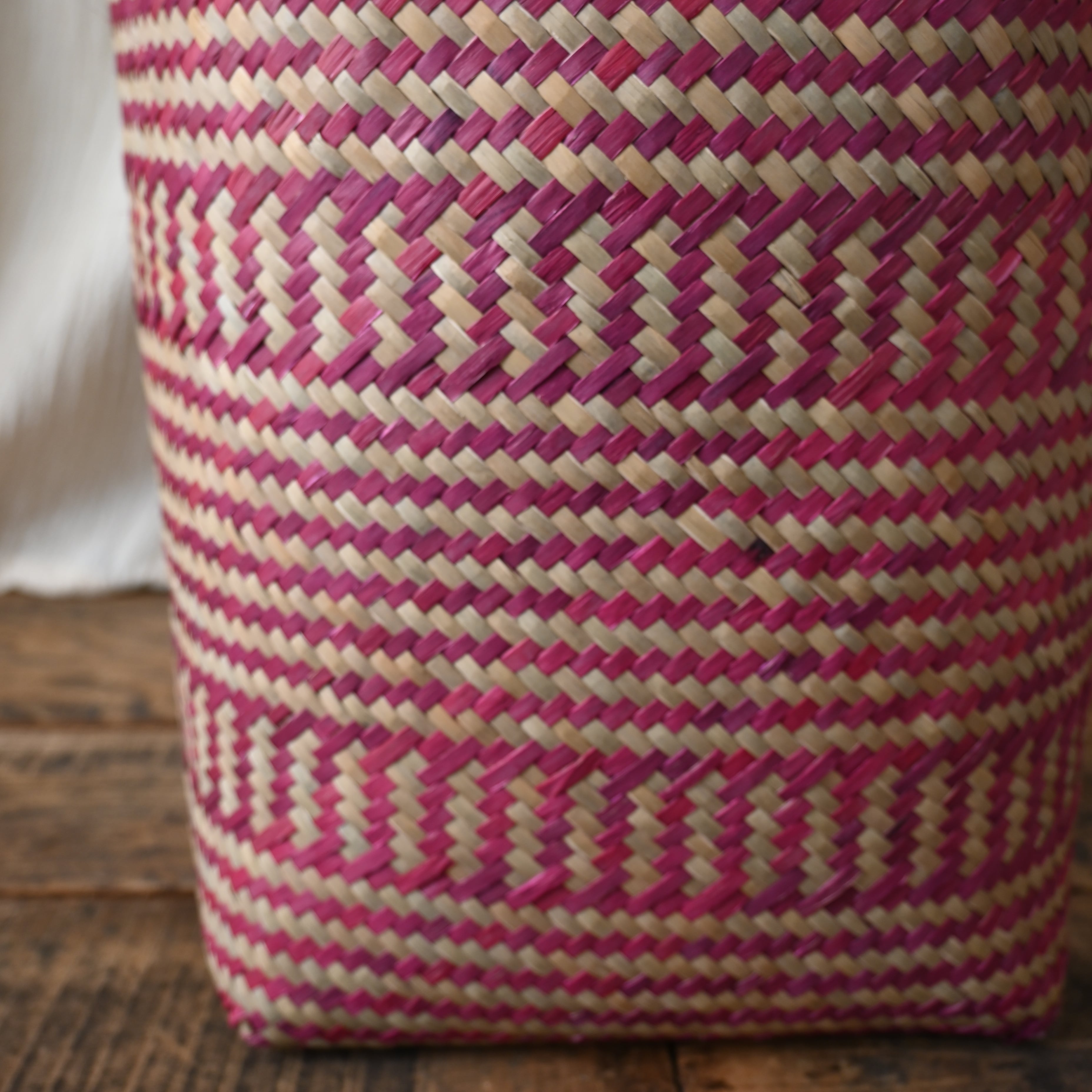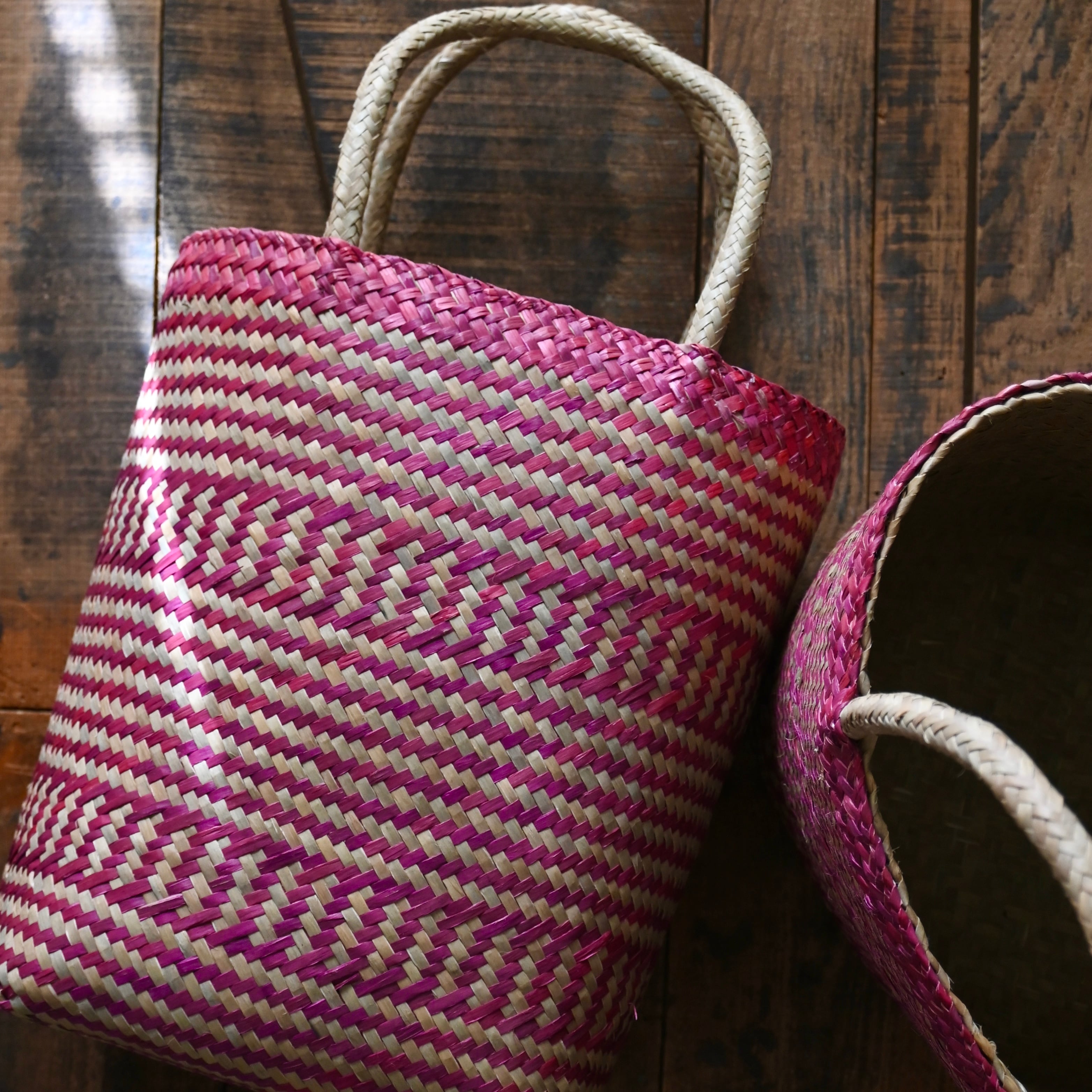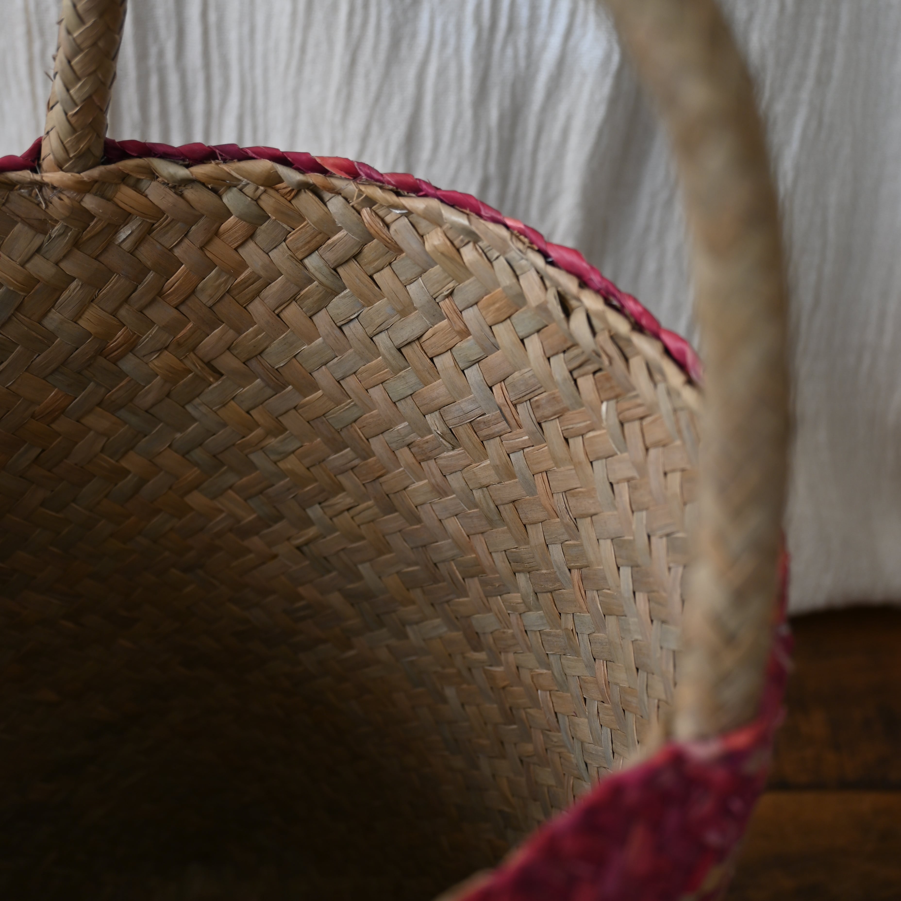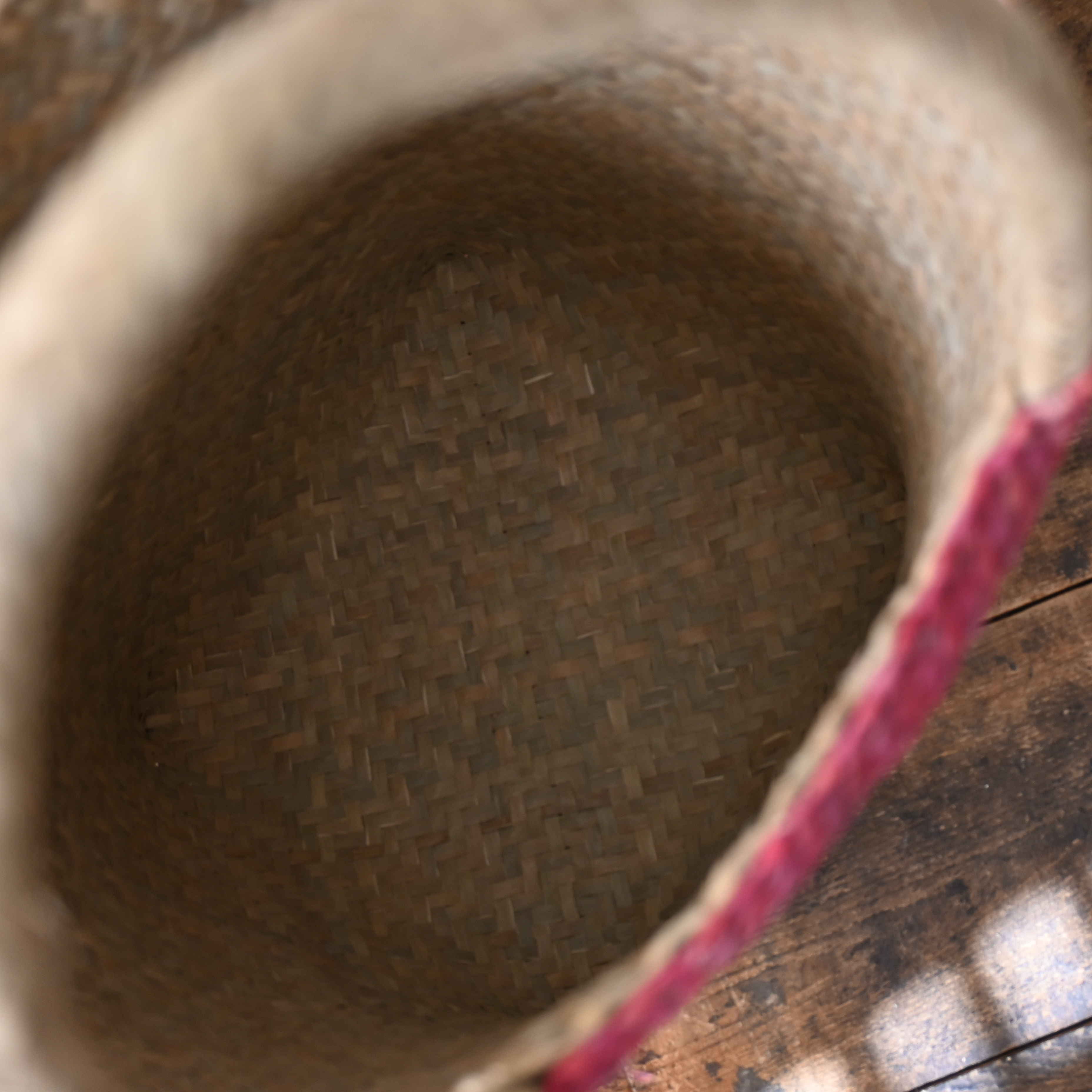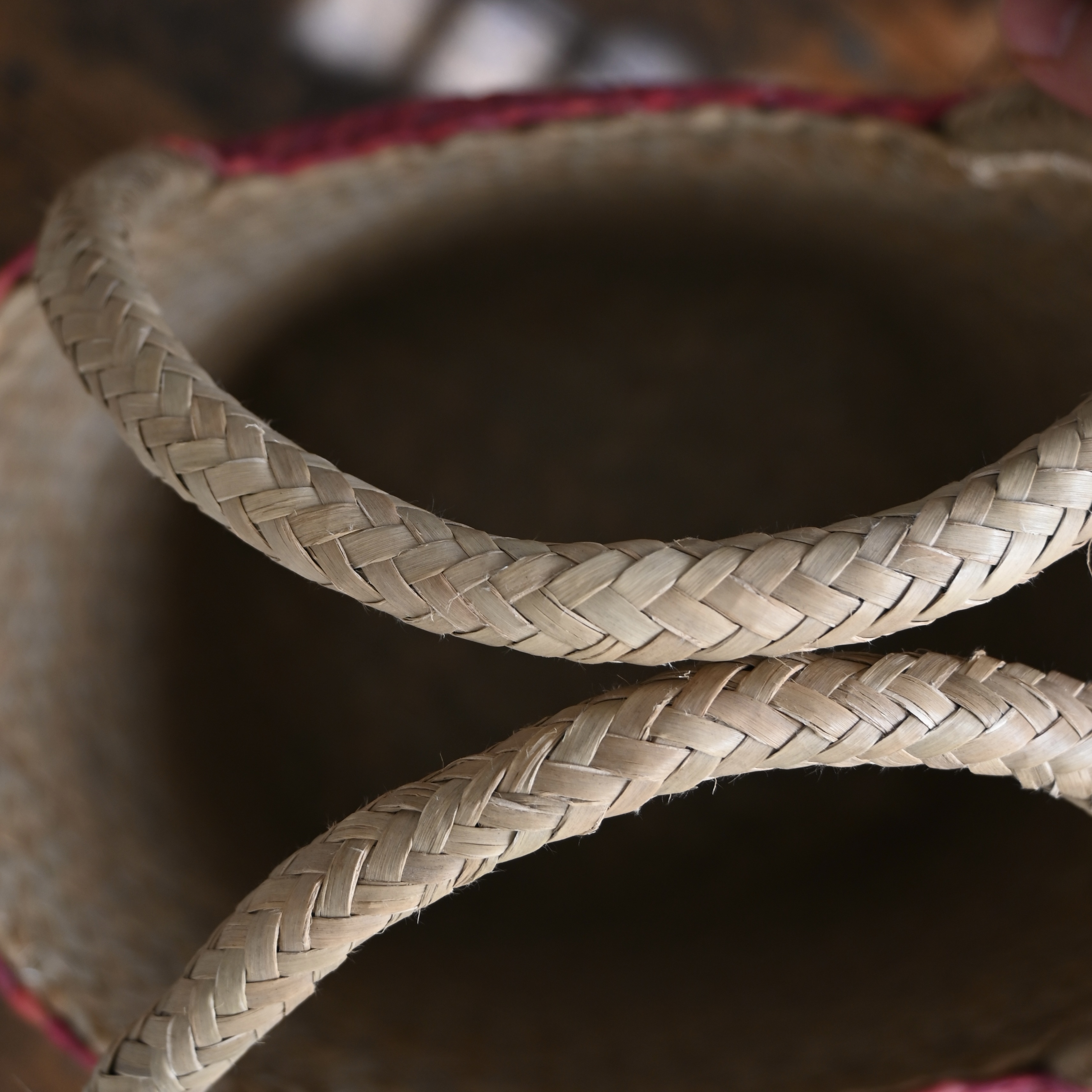 水草で作られるバスケットたちは、作られて間もないものは水分を多く含み、やや緑がかった色合い。そこから使っていくうちに水分が抜けると画像のように色が明るく黄味がかった色に変化し、しなやかさが増します。日々変化する風合いをお楽しみください。