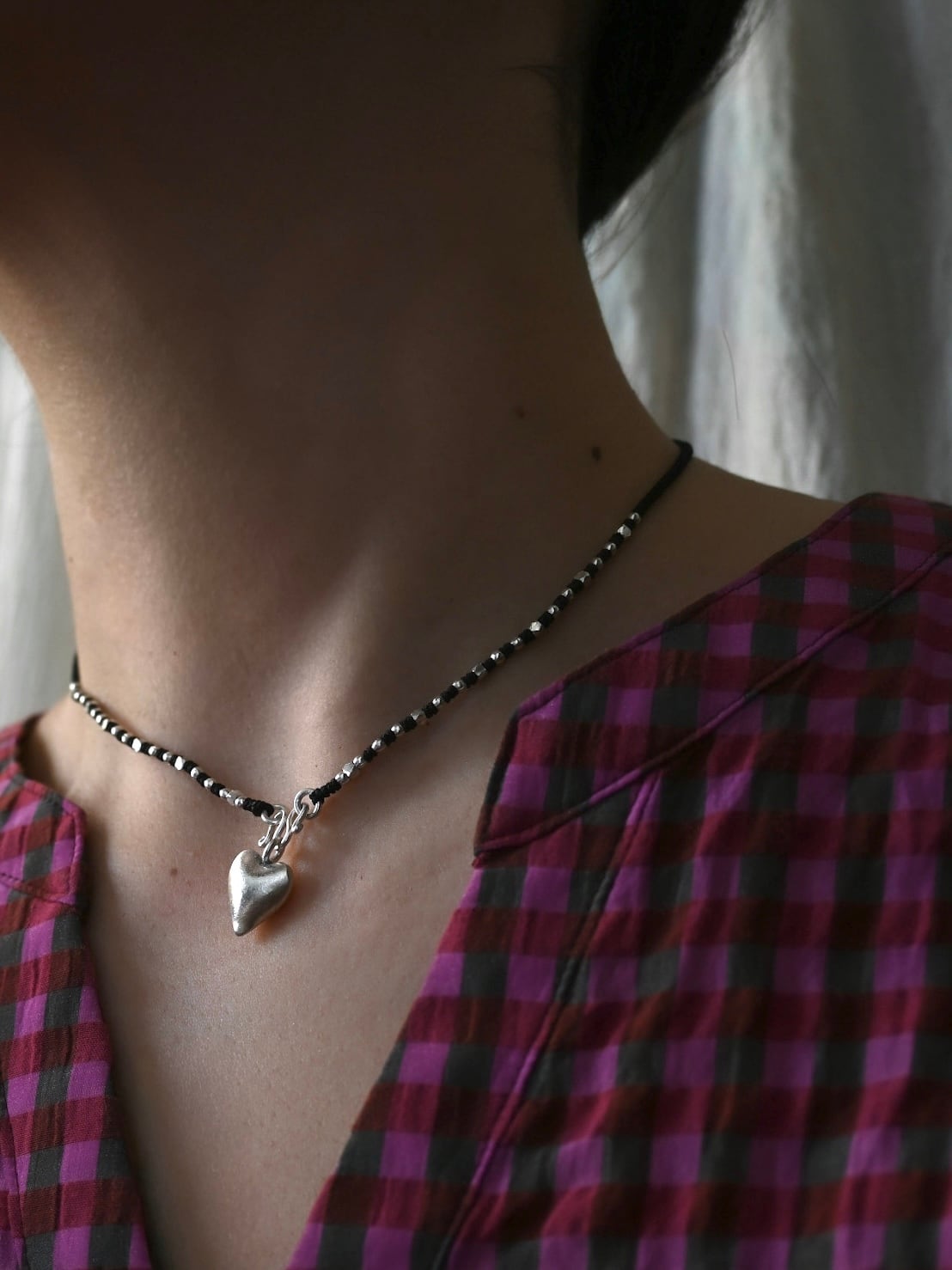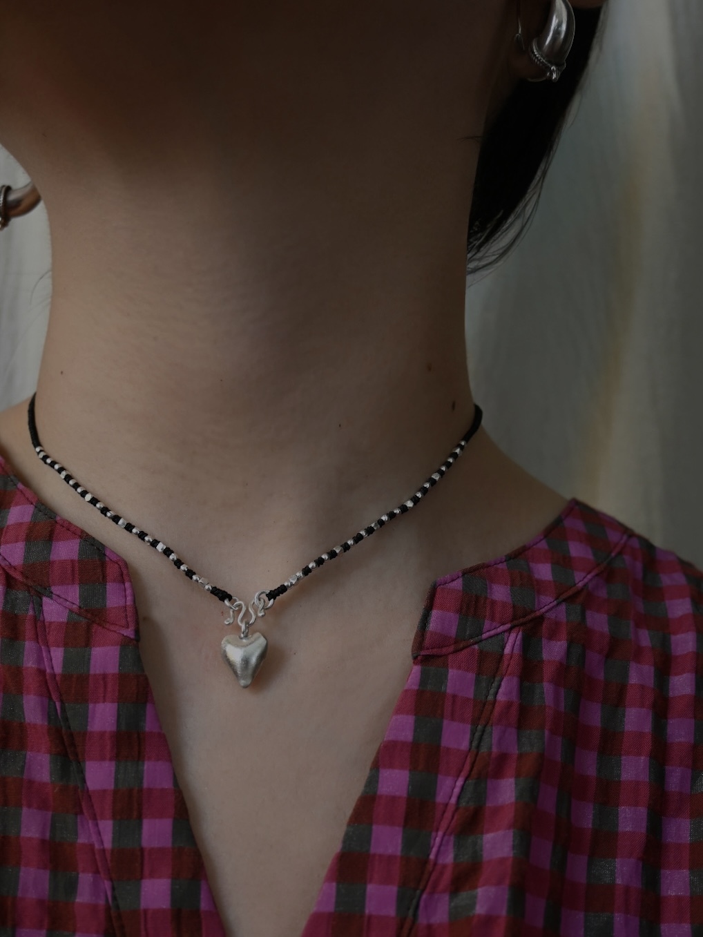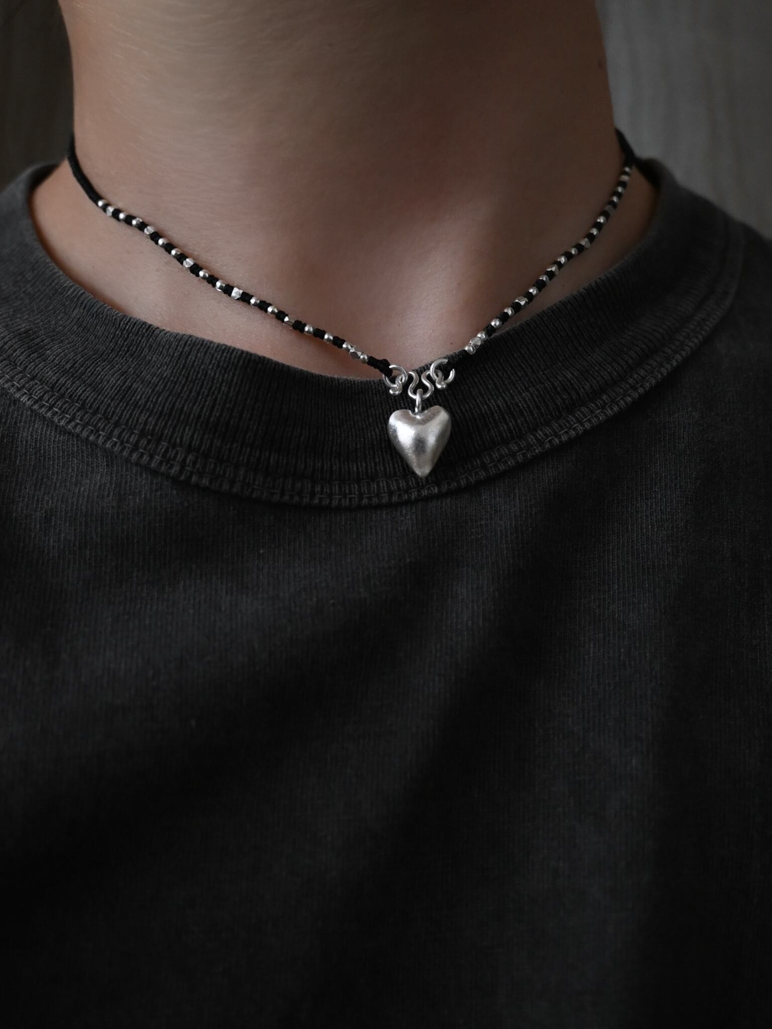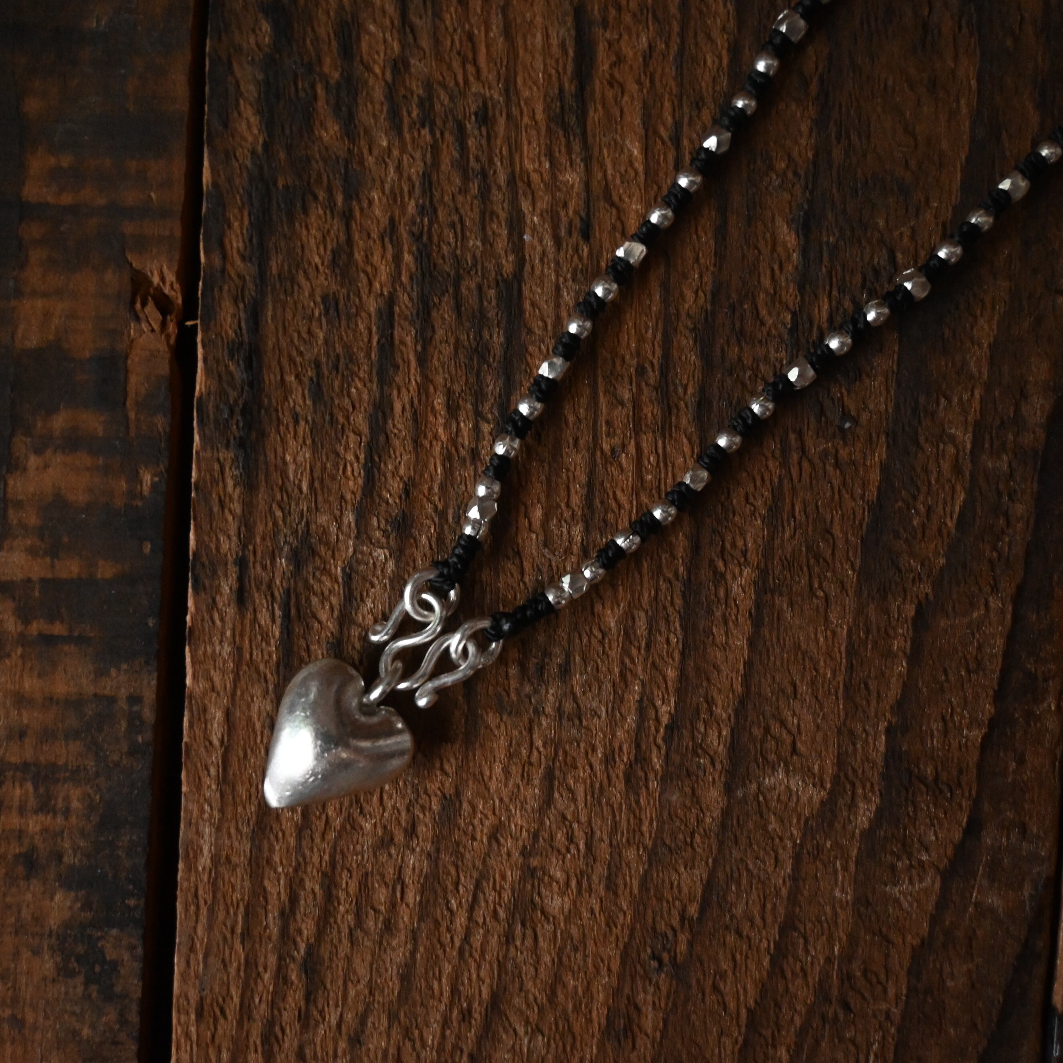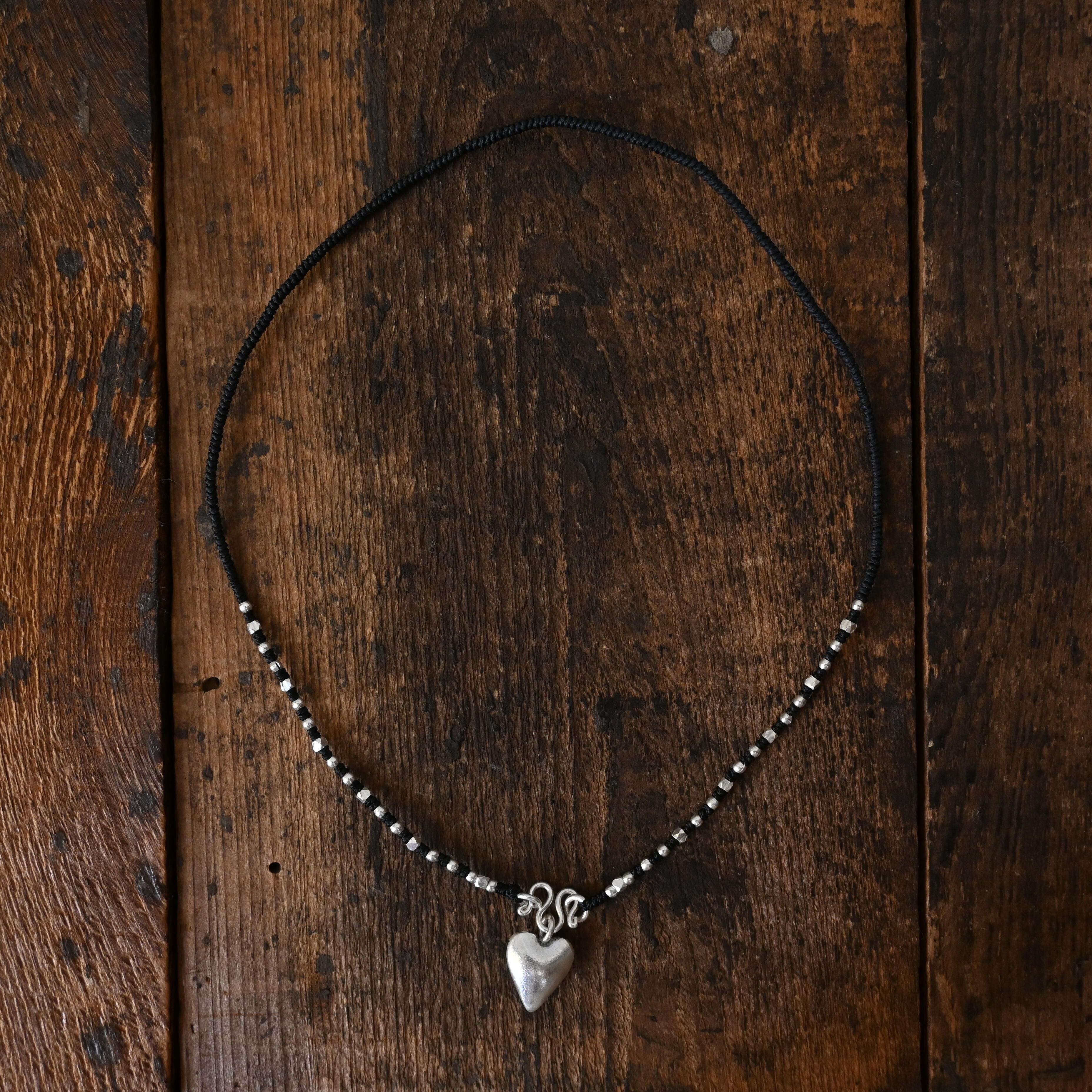 同じ村の工房で作られた、ぷっくりとしたハートのチャームがアクセントに。