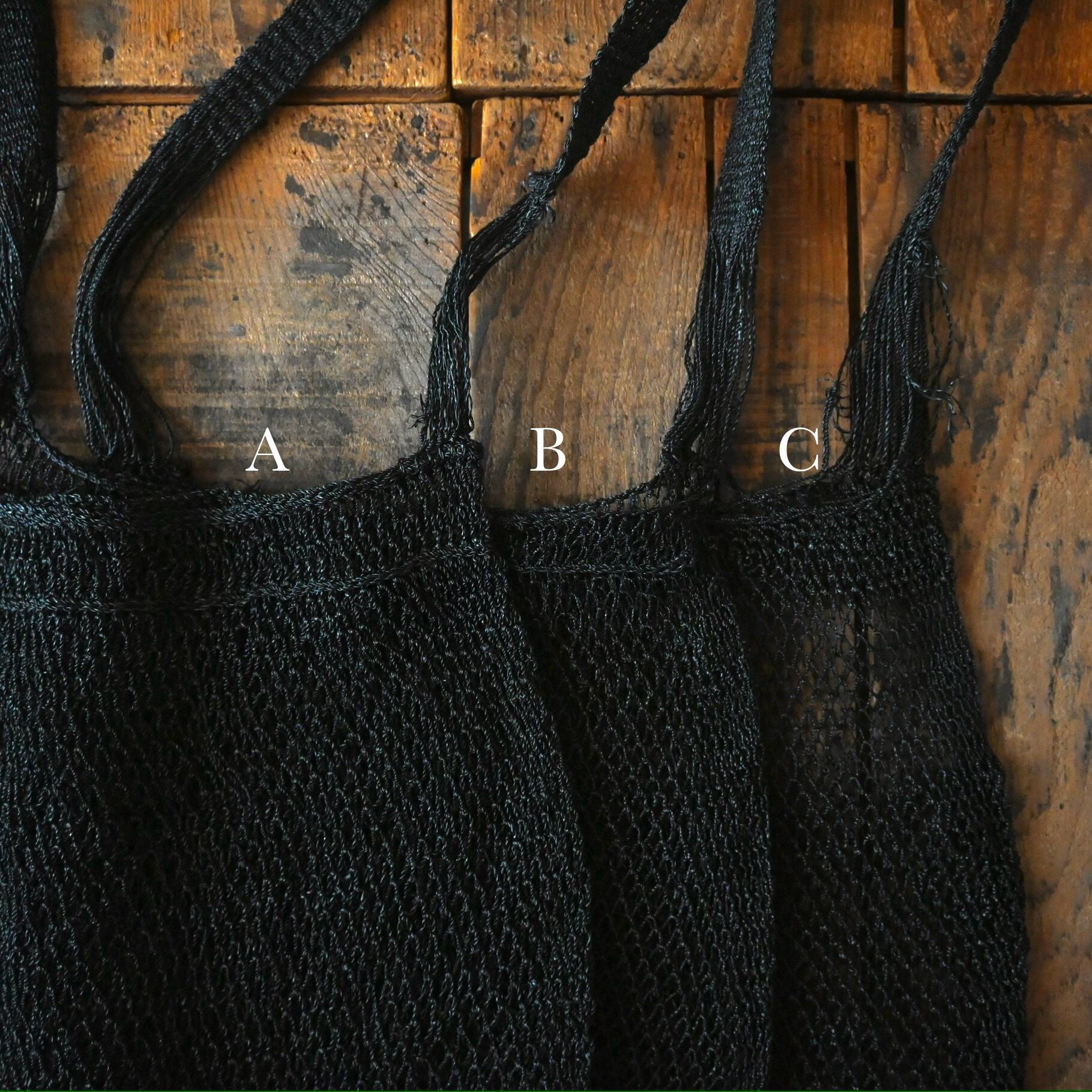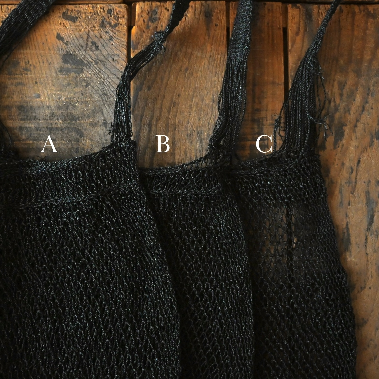 編み目は一目ずつ結ばれていますが、ほつれや切れが気になる場合は、天然繊維の糸で結び直してお使い下さい。