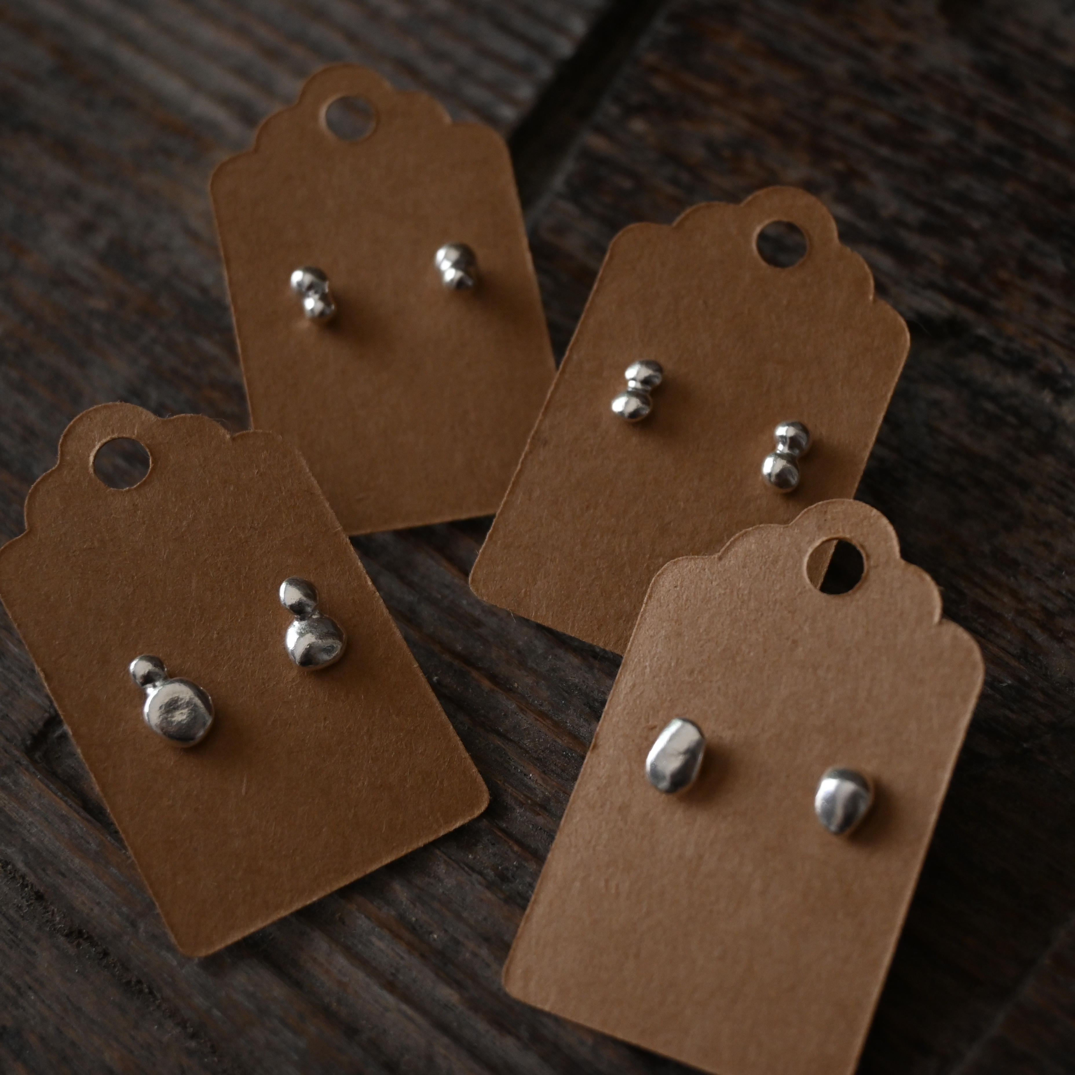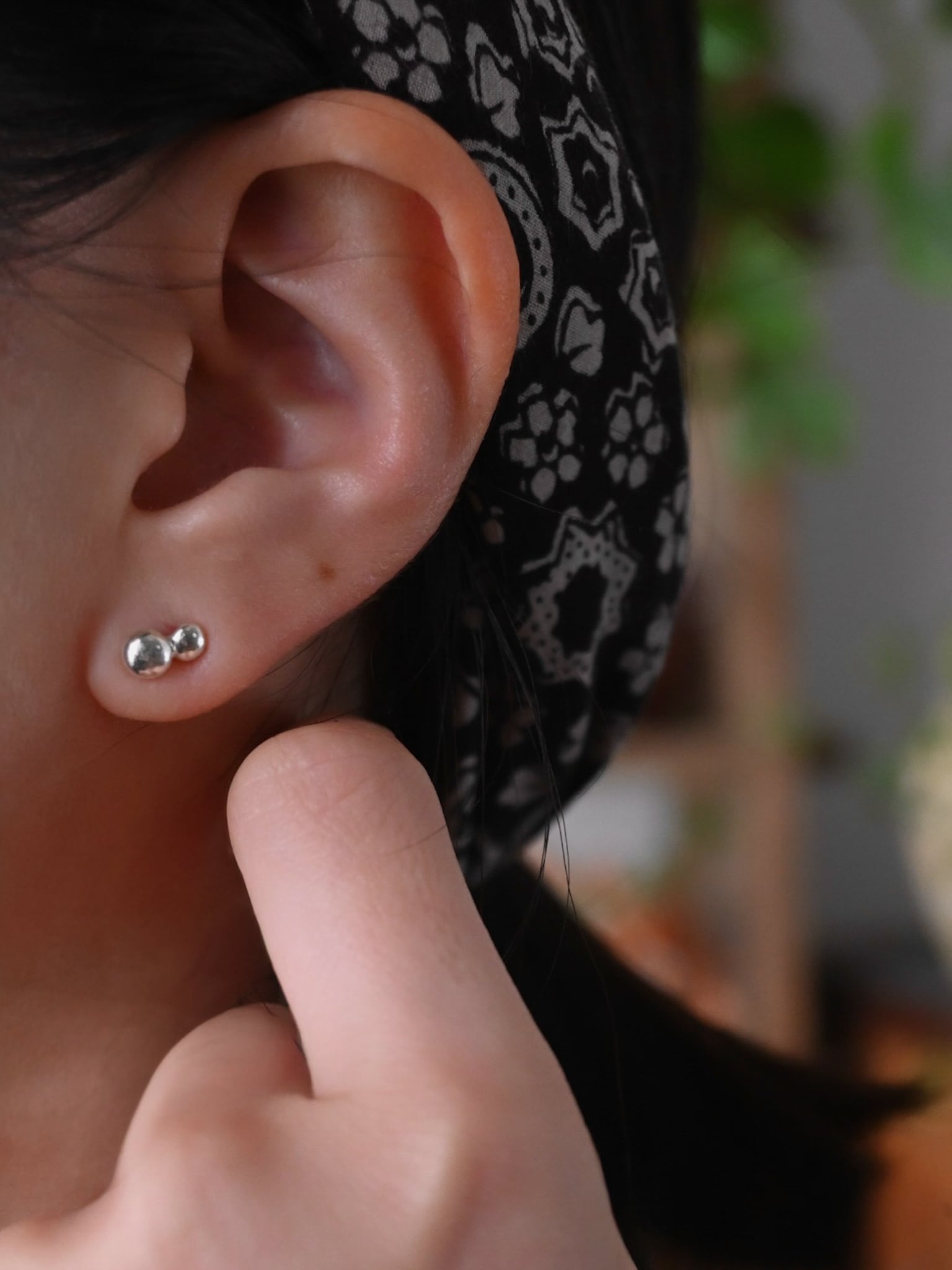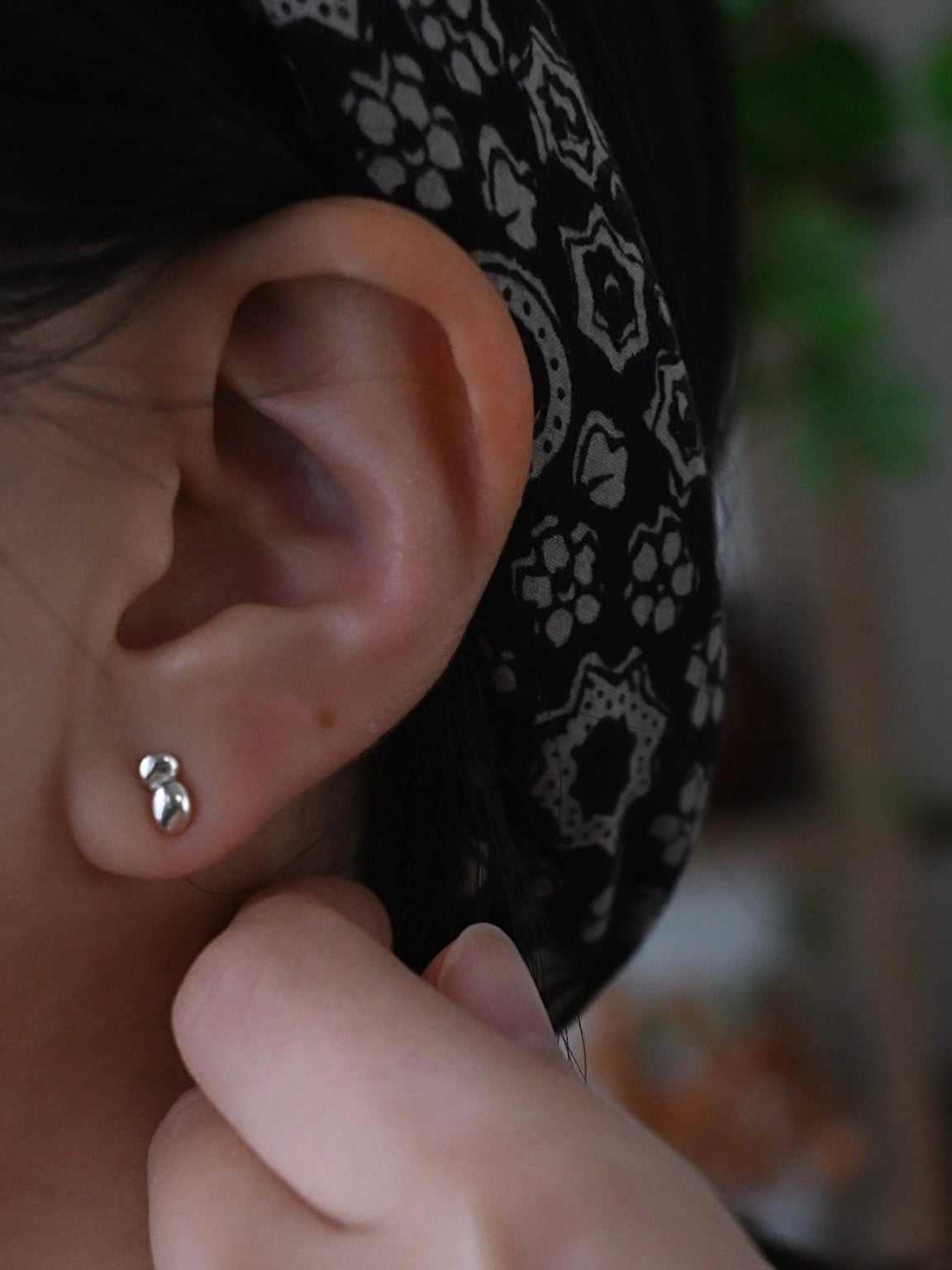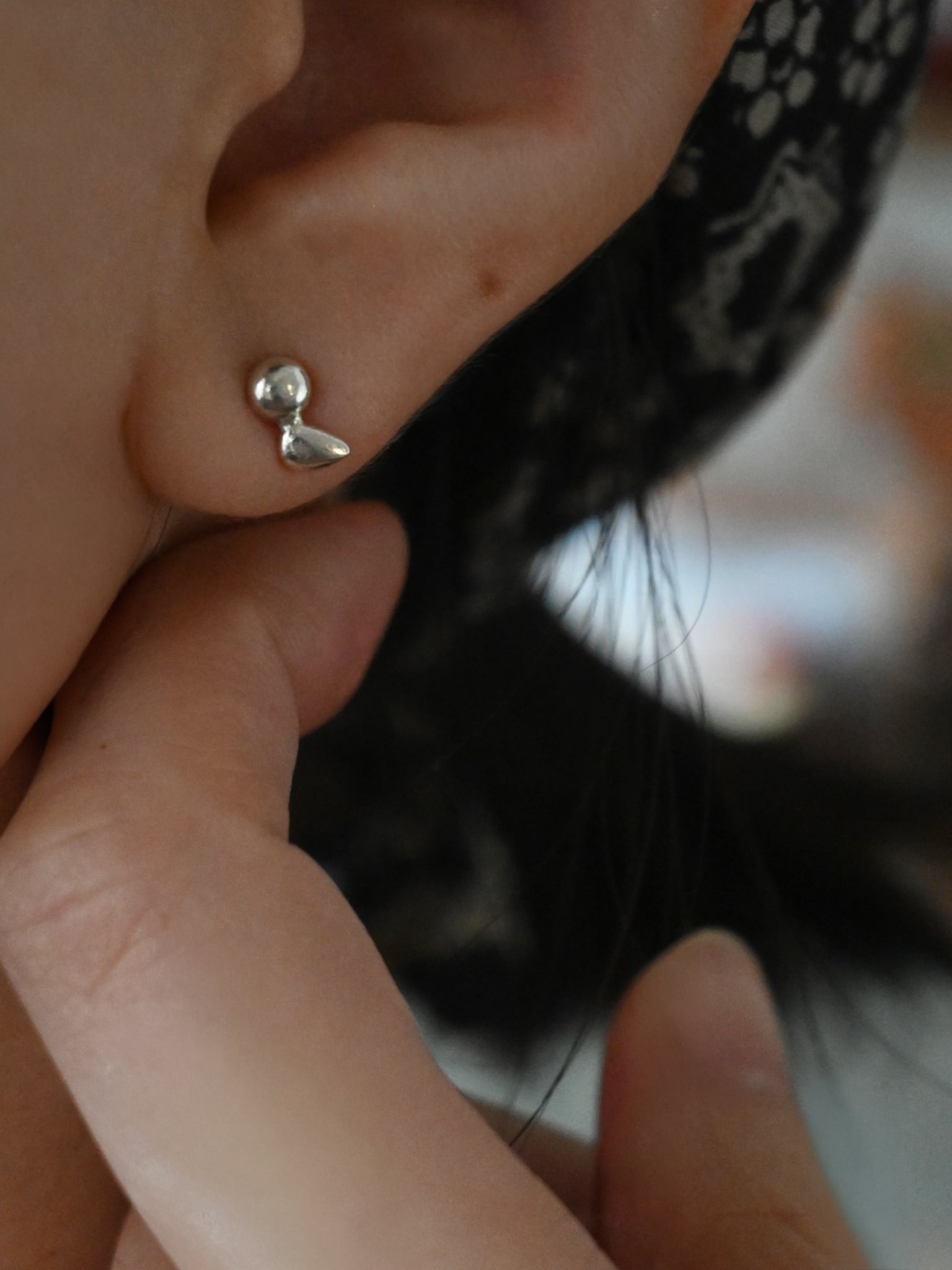 こちらは純度の高いシルバーを溶かし、雫のような丸みを帯びたモチーフのピアス。