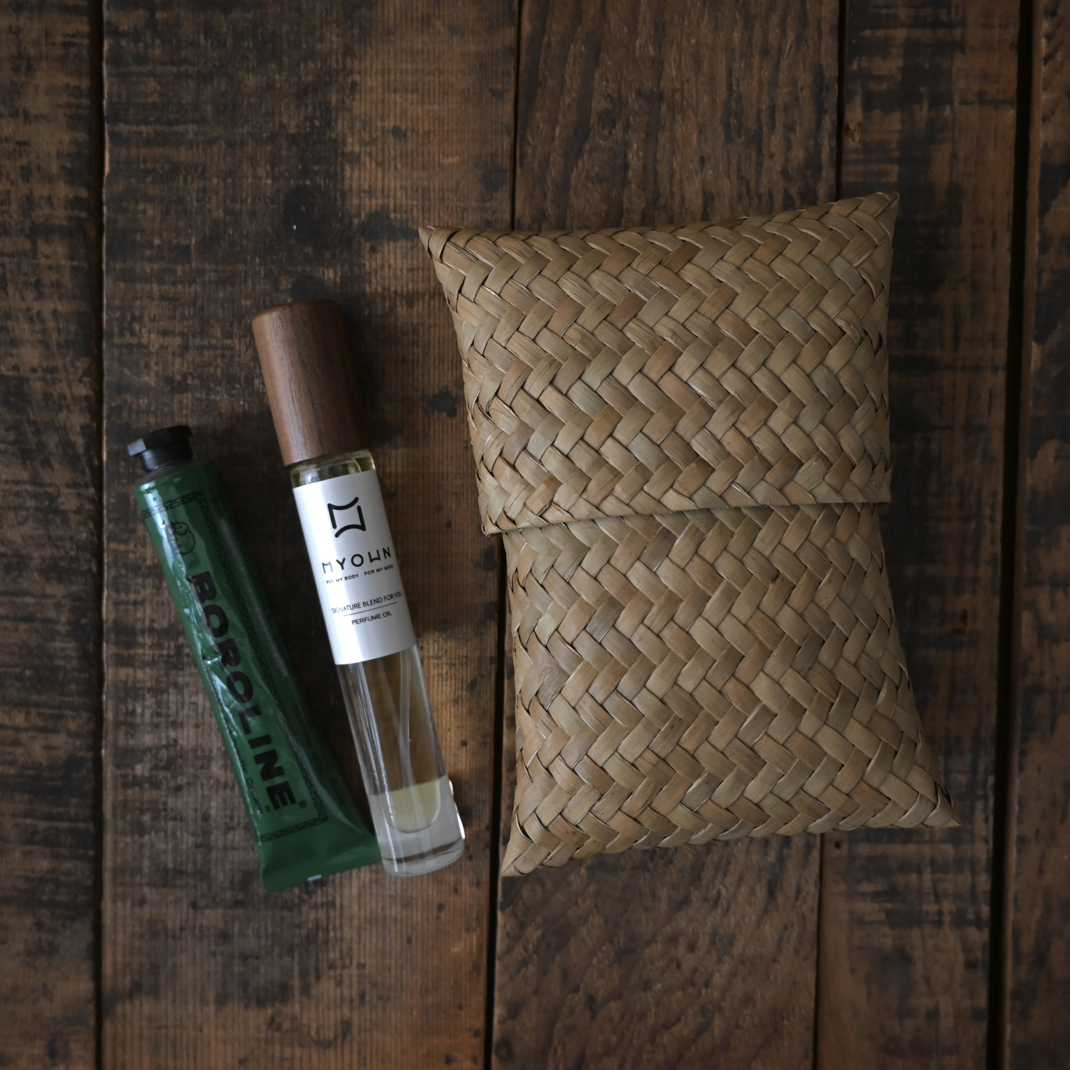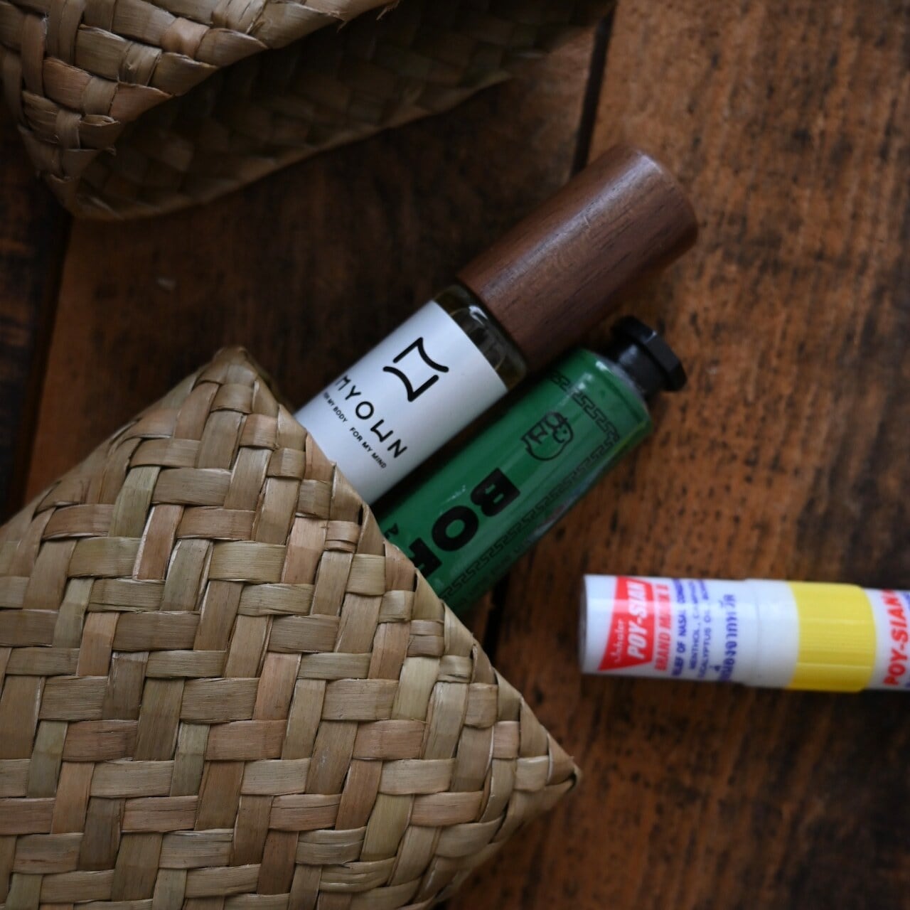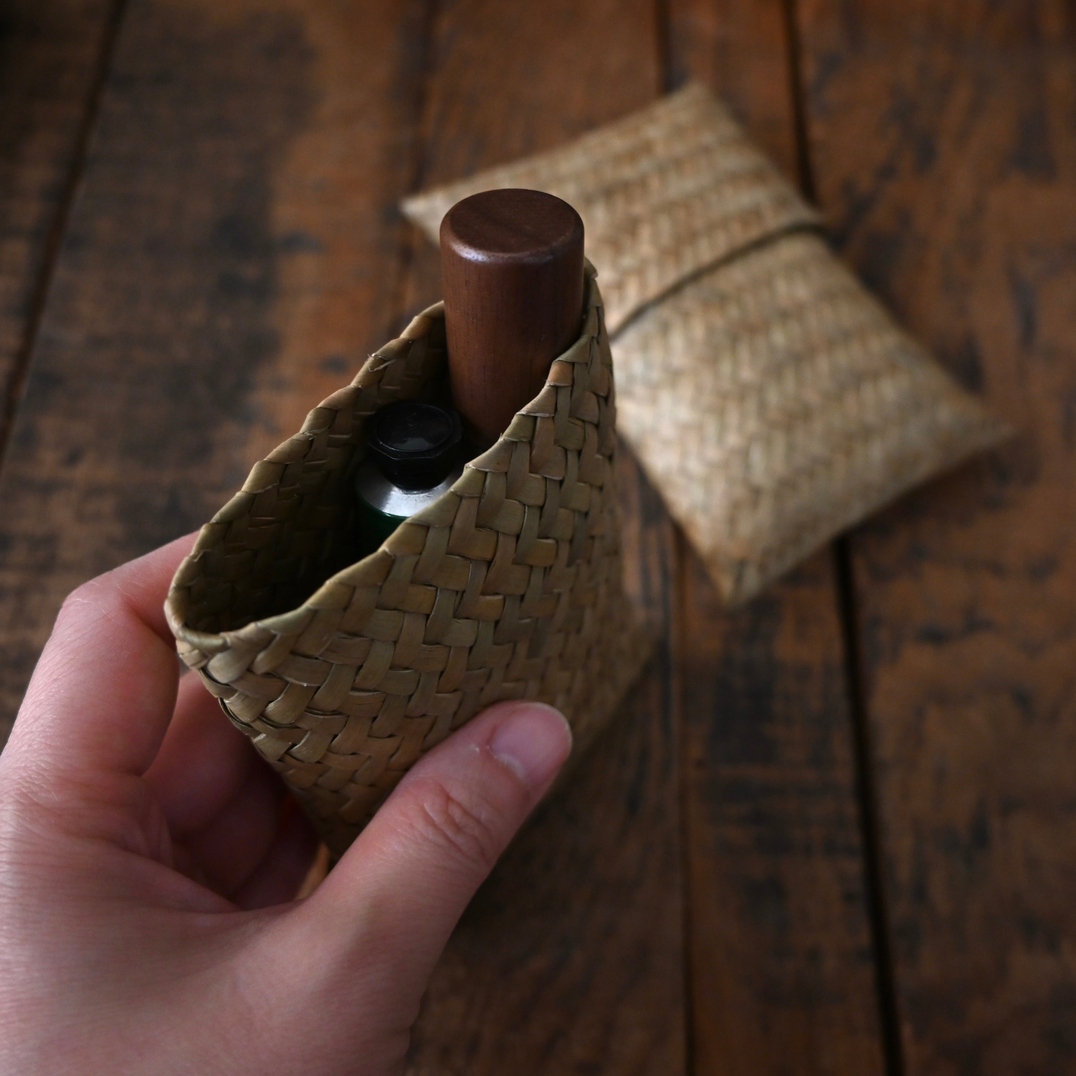 バッグからチラリと覗くとちょっと嬉しくなるような天然素材のポーチは、いつものちょっとしたお出かけのメイク道具入れをはじめメガネケースやピルケースとしてお使いいただけます。