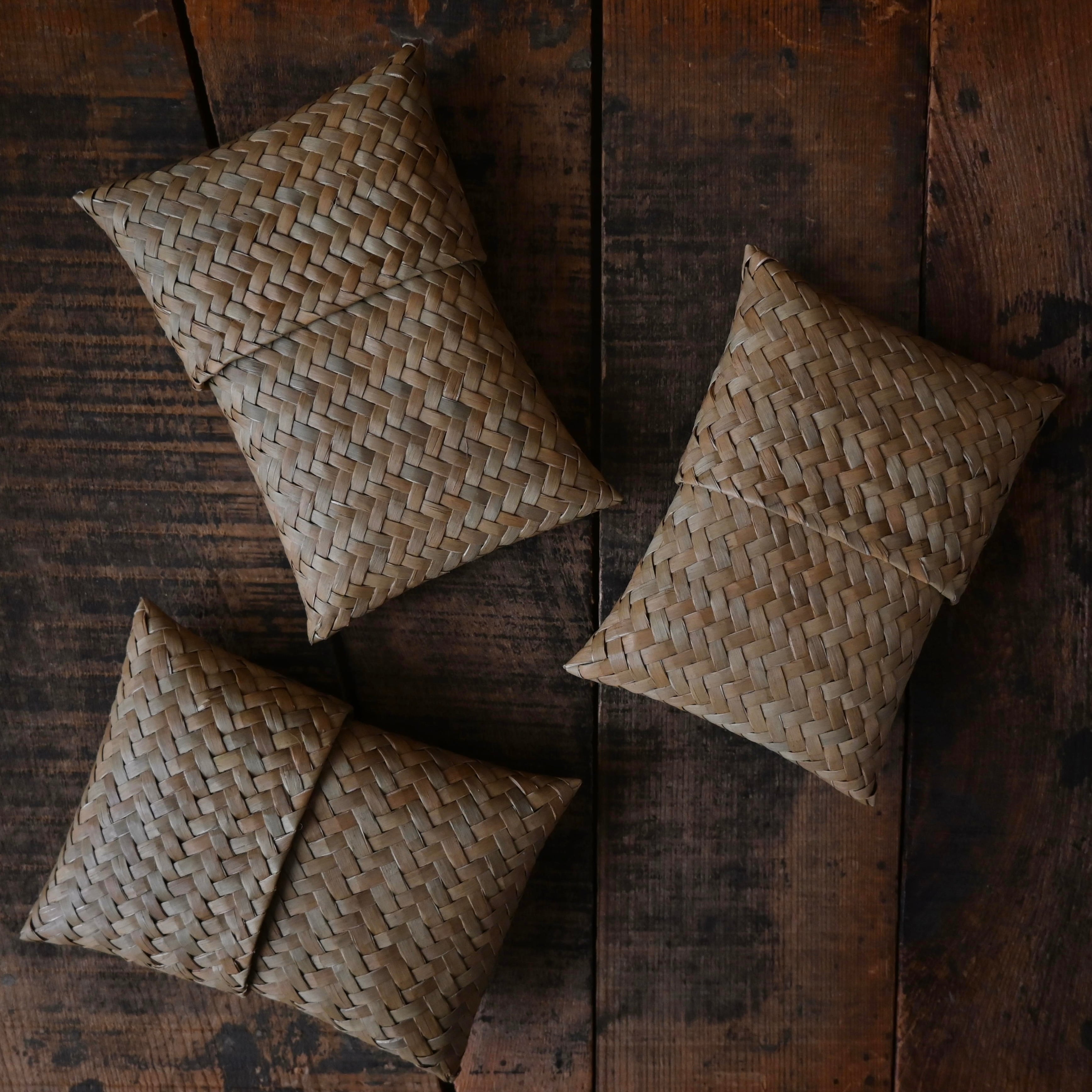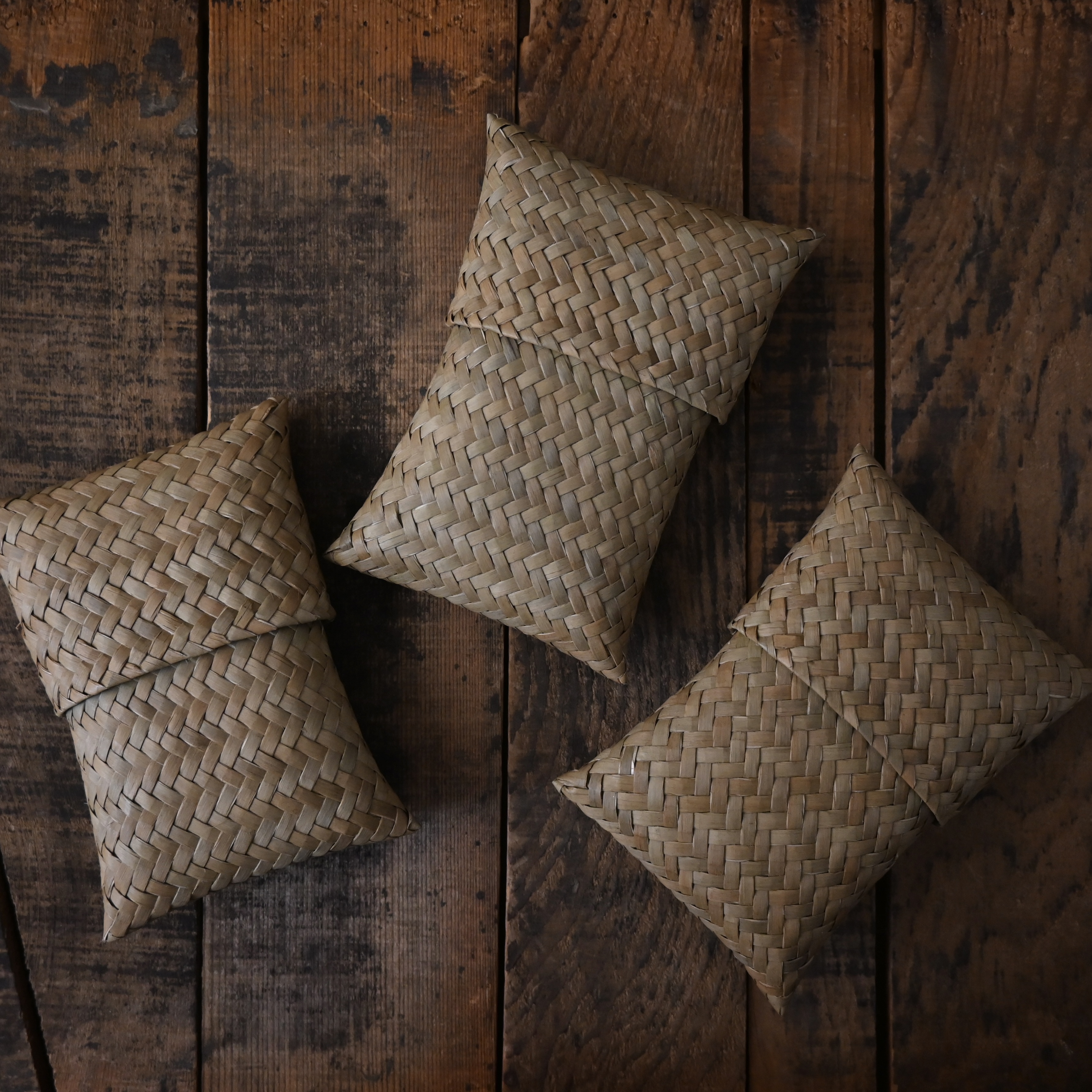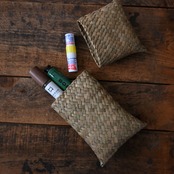 タイの南部に位置するナコーンシータマラート県で職人による手仕事によって作られたカチュー(水草)のポーチ。